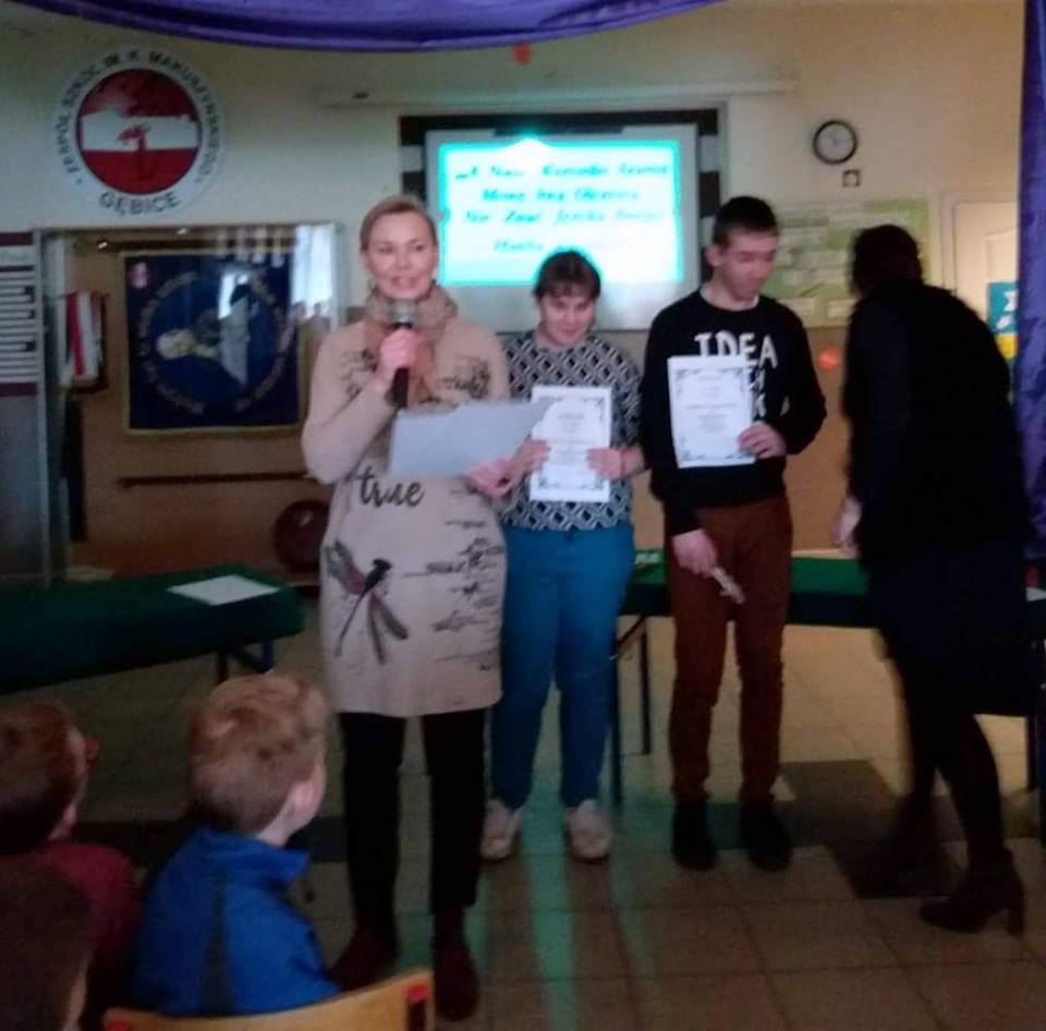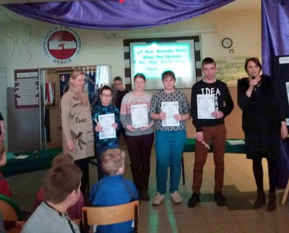 Każdy z nas zatem odpowiada za naukę języka polskiego i powinien zadbać o jego poprawność. Uczyć się nowych słów, ich znaczeń, a także poprawnie je pisać i wymawiać. Bo poprzez język budujemy swoją tożsamość, szukając odpowiedzi na pytanie, kim jesteśmy? Udział uczniów w takich konkurencjach miał przede wszystkim zachęcić wszystkich do obcowania ze słowem pisanym i tradycjami literackimi na co dzień, a rywalizacja miała jedynie skłonić uczniów, biorących w nich udział do podjęcia tego trudu. Wszyscy spisali się na medal.