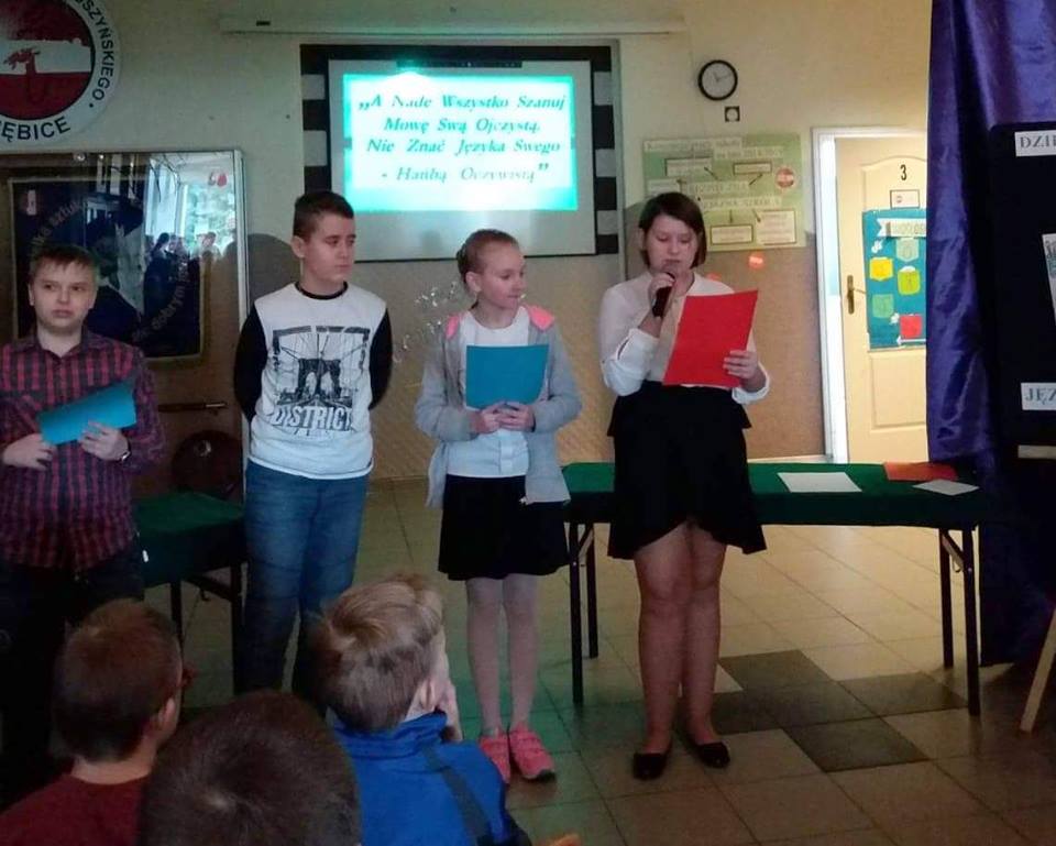 Na początek czworo uczniów zaprezentowało wzorcowe czytanie wiersza Małgorzaty Strzałkowskiej pt.: „Mowa polska" pełnego szalonych rymów, wymagających językowego mistrzostwa, by nie potknąć się w trakcie czytania. Następnie powołano dwie drużyny, przed którymi pojawiły się zadania wymagające nie lada gimnastyki językowej. Były to m. in. konkurencje polegające na zaznaczeniu poprawności w pisowni, łamańce językowe, odgadnięcie wysłuchanej gwary językowej i zagadki. Uczniowie na ten dzień przygotowali również plakaty, które ozdobiły klasowe drzwi i których głównym przesłaniem było hasło W krainie języka polskiego. Na plakatach przedstawiono najczęściej popełniane przez Polaków błędy, zasady ortograficzne wraz z wyjątkami, alfabet, przysłowia polskie, najważniejszych poetów i pisarzy, a także plakaty mówiące „Stop wulgaryzmom!" Podczas dużej przerwy każdy mógł wziąć udział w konkursie przeprowadzonym przez Samorząd Uczniowski Na tropie kropki, odpowiadając na pytanie dotyczące języka polskiego.