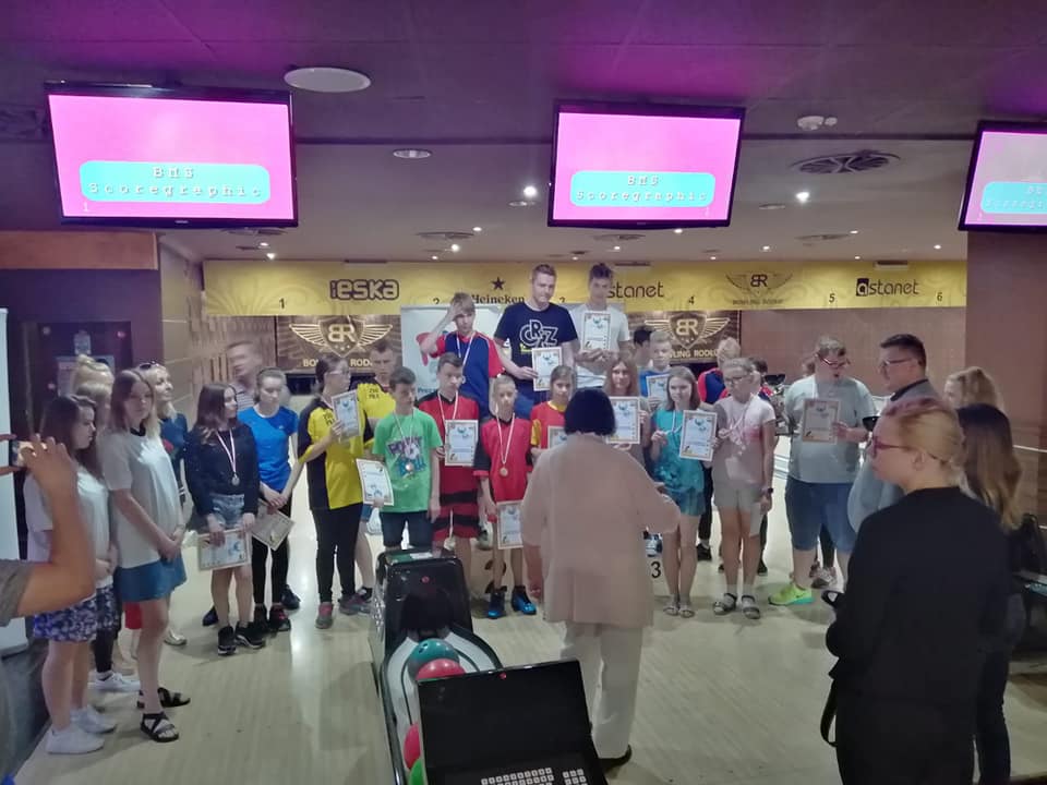 na podium: Sylwia zdobyła złoto w kategorii dziewcząt, a Krzysiek srebro, ale wszyscy bawili się doskonale. Dodatkowymi atutami tego turnieju były z pewnością: okazja do przebywania w kręgielni o wysokich standardach, możliwość doskonalenia swoich sprawności, spotkania z innymi zawodnikami i słodkości z okazji Dnia Dziecka, a także pyszny i elegancko podany obiad.