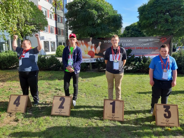 W dniach 17, 18, 19 września br. w Skarżysku Kamiennej koło Kielc, odbył się VI Ogólnopolski Turniej Bowlingowy Olimpiad Specjalnych. Na tę wielką prestiżową imprezę zjechało się aż 80 zawodników z dziesięciu Oddziałów Regionalnych i województw - były to: Beskidzkie, Dolnośląskie, Kujawsko-Pomorskie, Łódzkie, Mazowieckie, Podkarpackie, Śląskie, Świętokrzyskie, Wielkopolskie-Konin i Wielkopolskie-Poznań. Nasz oddział zdobył w sumie 20 medali (w grach pojedynczych i podwójnych), w tym Marek Nawrot z klasy II szkoły przysposabiającej do pracy, dwa - srebrny za grę indywidualną i brązowy za grę deblową. To jak dotąd największy sukces naszego Klubu, jak i samego ucznia, który wrócił do domu w pełni zadowolony i szczęśliwy.