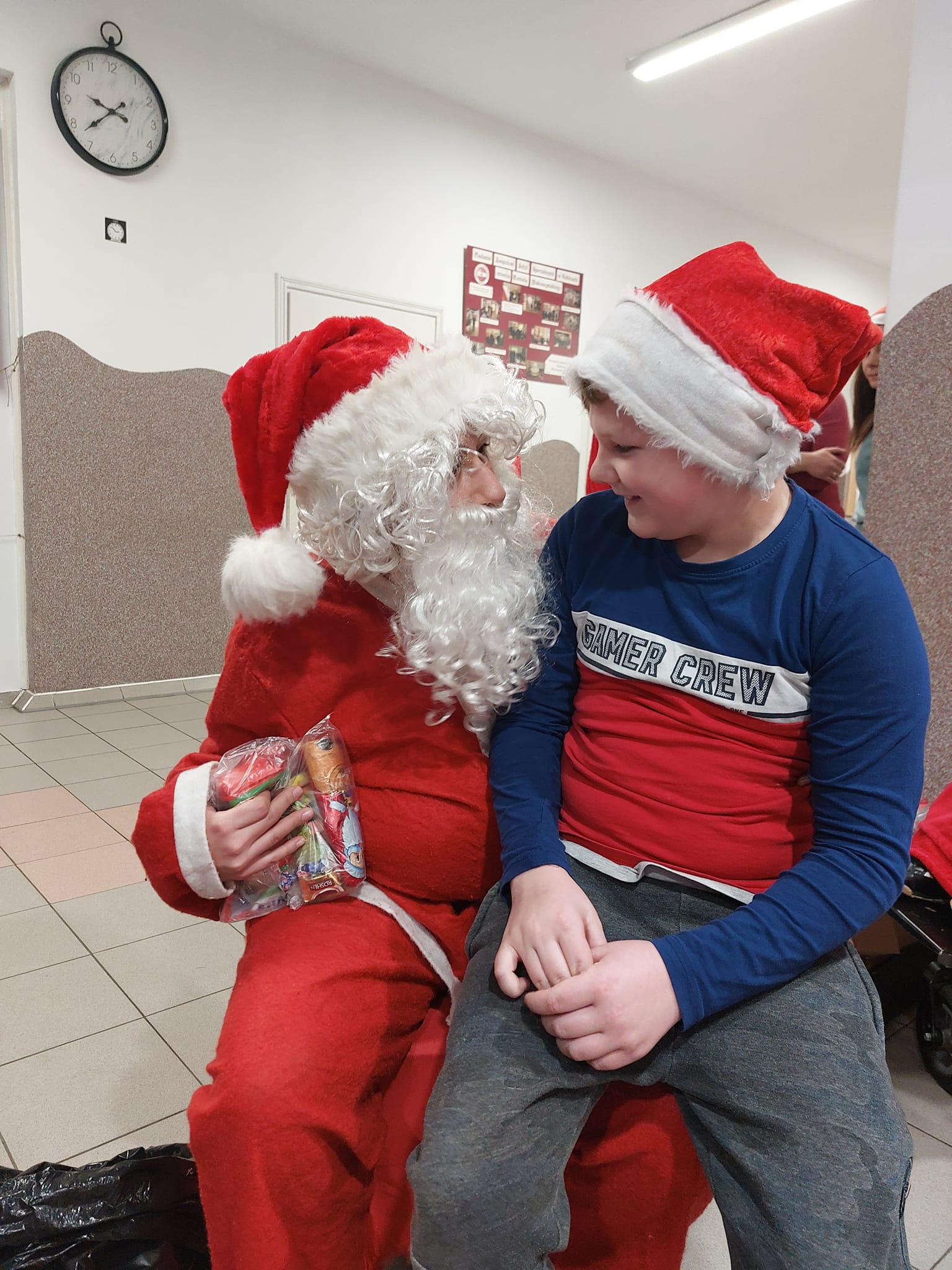 Słynne powitanie HO! HO! HO! Dźwięki dzwoneczków, pukanie do drzwi, budzą ciepłe emocje w sercu, wspomnienia z dzieciństwa, marzenia o prezentach, niespodziankach. W tym roku w oczekiwaniu na Mikołaja odczytaliśmy od Niego elektroniczny list, obejrzeliśmy film i pozdrowienia z mroźnej krainy. Byliśmy bardzo podekscytowani i szczęśliwi, kiedy usłyszeliśmy głośne pukanie w szkolnym korytarzu....