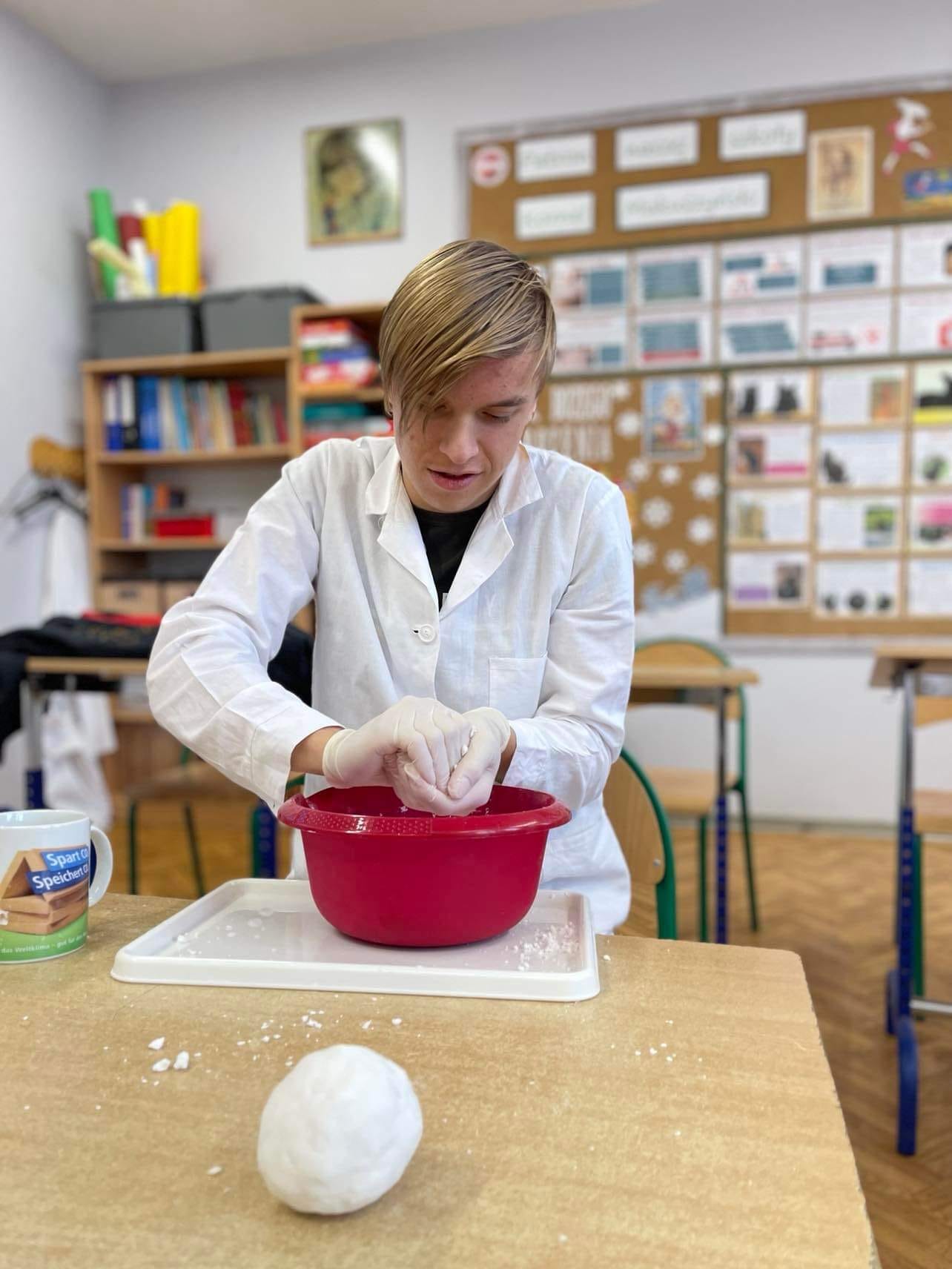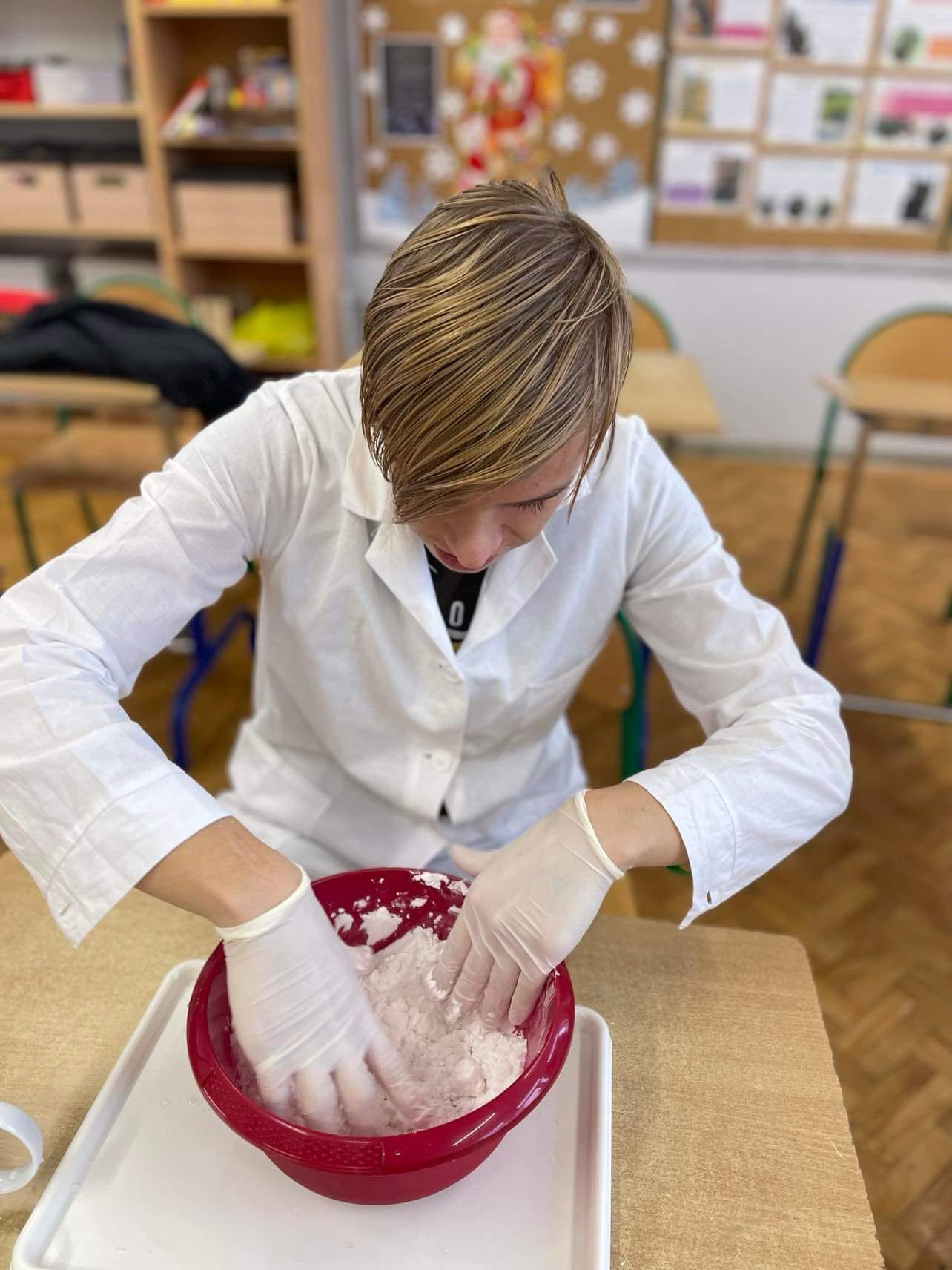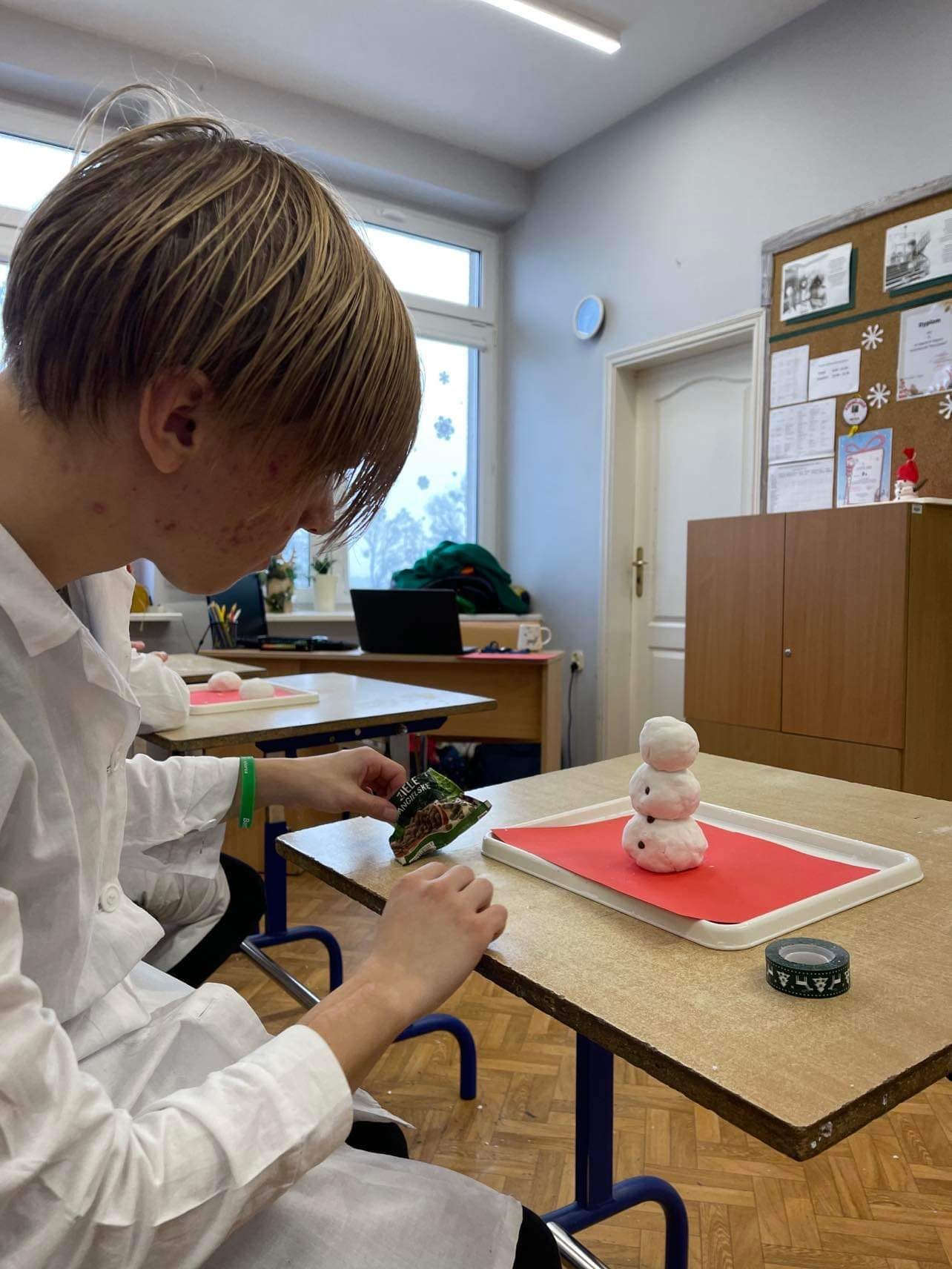 Różne metody tworzenia sztucznego śniegu na lekcji chemii.