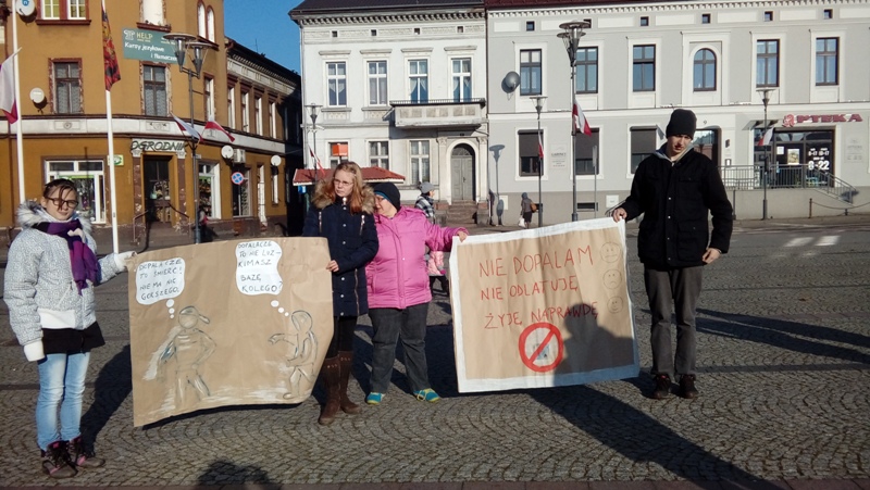 14 listopada br. uczniowie naszej szkoły, wraz z opiekunami p. Danutą Śmiechowską i p. Jackiem Mitutą, udali się do Czarnkowa na Plac Wolności, aby uczestniczyć w Powiatowym Happeningu Profilaktycznym „Nasz głos przeciw dopalaczom”, zorganizowanym w ramach Programu Komendy Wojewódzkiej Policji w Poznaniu „Dopalacze niszczą życie”. Na happening uczniowie zabrali plakaty konkursowe z hasłami podejmującymi tematykę uzależnień od dopalaczy i innych środków psychoaktywnych. Mimo mrozu i zimna atmosfera była bardzo gorąca. Przedstawiciele Kornelówki mieli okazję, wraz z uczniami szkół gimnazjalnych i ponadgimnazjalnych z powiatu czarnkowsko - trzcianeckiego, uczyć się tańca na zajęciach choreograficznych. Na podsumowanie wszyscy wysłuchali ciekawych relacji na temat uzależnień i wspólnie zatańczyli popularny taniec zwany „Belgijką”.