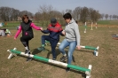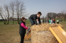 Tor przeszkód o różnym stopniu trudności rozbudowany elementami zadań z zakresu integracji sensorycznej był kolejną niespodzianką, którą przygotowały: pani Wioleta i pani Ania. Były to m. in. wejście po drabince na balot słomy, rzut woreczkami do celu, zjazd ze zjeżdżalni, przypinanie klamerek, przejście pod i nad drążkiem. Uczniowie, pokonując trasę musieli wykazać się zwinnością i odwagą. Zajęcia miały charakter zabawy naukowej, w trakcie której były dostarczane kontrolowane ilości wrażeń dotykowych, a uczniowie mieli dużo frajdy.
