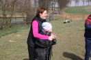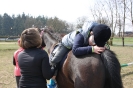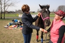 Pani Agnieszka – instruktorka hipoterapii zaprezentowała zestaw ćwiczeń, jakie uczeń wykonuje na koniu podczas jazdy stępem. Koordynacja wzrokowo –ruchowa, utrzymanie równowagi, wykonanie „młynka” to tylko namiastka tego z czym uczestnicy muszą się zmierzyć na grzbiecie przyjaznej klaczy Bambi. Jej miękka, ciepła sierść, krągły brzuch i zad dawały przyjemne wrażenia dotykowe, które wywoływały uśmiech na twarzach, zarówno tych małych, jak i dużych podopiecznych.
