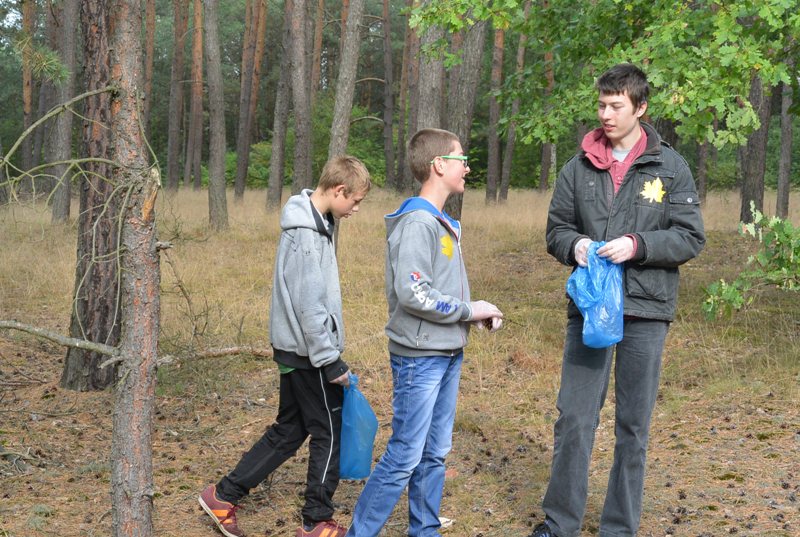 Jesienną, jak co roku, nasi uczniowie brali udział w Ogólnopolskiej Akcji Sprzątania Świata. W tym roku podczas akcji pod hasłem „Wyprawa Poprawa” młodzi ludzie z Zespołu Szkół im. Kornela Makuszyńskiego w Gębicach, z Publicznego Gimnazjum im. Leśników Polskich w Gębicach i z Warsztatów Terapii Zajęciowej w Gębicach mogli zobaczyć, jak złe nawyki prowadzą do degradacji środowiska naturalnego. Mogli również naocznie przekonać się, jak ważna jest ich pomoc w sprzątaniu i segregowaniu śmieci, które znalazły się na łonie przyrody. Podsumowanie tegorocznego Integracyjnego Sprzątania Świata odbyło się na terenie Centrum Integracji Społecznej w Gębiczynie. Tam również uczniowie i uczestnicy WTZ spotkali się z leśnikami Leśnictwa Gębice – panem Marcinem Filodą i pan Grzegorzem Wolniewiczem, którzy kilku minutowej prelekcji podkreślali ważność dla środowiska takich przedsięwzięć jak sprzątanie świata. Potem wszyscy razem udali się do okolicznych lasów, by je po prostu posprzątać. Trzeba przyznać, że każdy wkładał w swoją pracę bardzo dużo energii i serca. Po pracy przyszedł też czas na relaks – czyli przeróżne zadania o tematyce przyrodniczej oraz sportowo rekreacyjnej dla grup Zielonych, Pomarańczowych i Żółtych. Nie liczyło się kto zdobędzie więcej punktów, najważniejsza była wspólna zabawa, czas spędzony razem na świeżym powietrzu. Na koniec wszyscy uczestnicy akcji zasiedli do poczęstunku, który stał się podsumowaniem tej integracyjnej imprezy.