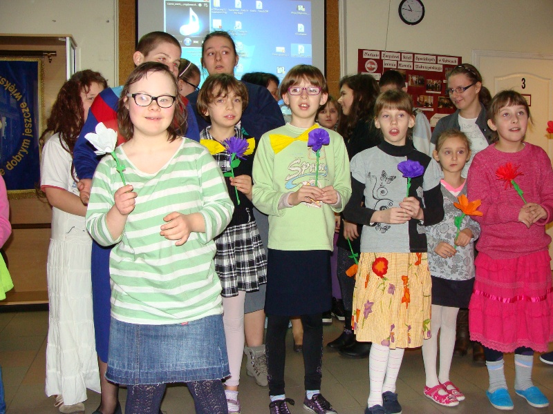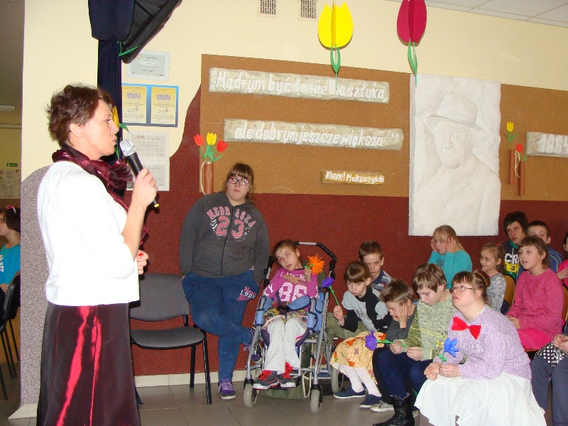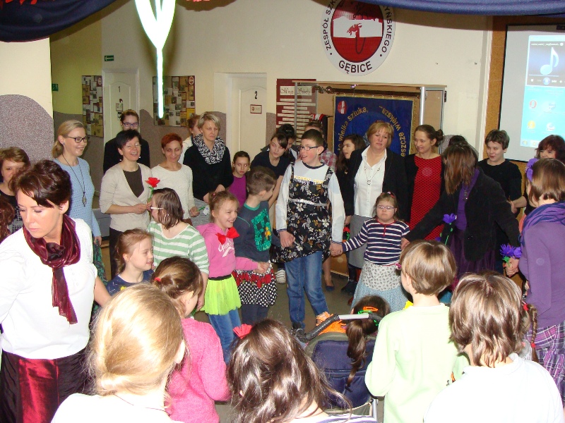 Z tej okazji odbył się także apel, podczas którego uczniowie przedstawili krótką część artystyczną dotyczącą kobiet - tych dużych i tych małych. Recytacja humorystycznych wierszy została ubarwiona tanecznymi występami oraz grą na instrumentach: dzwonkach i pałeczkach. Po złożeniu życzeń wszystkim paniom i dziewczynkom wręczono kolorowe kwiaty z bibuły.