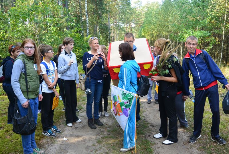 Celem akcji było nie tylko zintegrowanie dzieci i młodzieży ze szkół i placówek na terenie Gębic, ale także wyrobienie odpowiedzialnych postaw za najbliższe środowisko przyrodnicze. Aby wdrożyć powyższe założenia, uczestnicy akcji wyruszyli w trzech grupach, różnymi trasami w kierunku Gębiczyna. Podczas marszu na orientację byli oni zobowiązani do wykonania 12 niełatwych zadań i jednocześnie posprzątania leśnej trasy, którą wyznaczały przygotowane przez organizatorów mapy. Młodzież musiała wykazać się nie lada sprytem, spostrzegawczością i pomysłowością, aby najpierw odszukać ukryte w lesie zadania, a następnie je wykonać. Jednak słoneczna pogoda oraz piękno mijanych terenów pobudzały do myślenia i twórczego działania, wprawiały też wszystkich w doskonałe humory. Każda z grup chciała być najlepsza, dlatego rezultaty wszystkich zadań zachwycały. Uczniowie, mieszkańcy DPS-u i uczestnicy WTZ nie tylko posprzątali leśne trasy, ale zaskoczyli zebranych w CIS-ie gości poziomem wykonania wszystkich zadań. Każda z grup „wjechała” do Gębiczyna wykonanym z kartonu ekologicznym samochodem i zaprezentowała scenkę, wykorzystując wszystkie rozwiązania zadań odnalezionych na trasie podchodów. Podczas prezentacji okazało się, że tego dnia nikt się nie ścigał, nie rywalizował, a zwycięzcami byli wszyscy! Wygrał każdy, kto podjął trud wspólnego wędrowania, wspólnego sprzątania i dbania o środowisko!