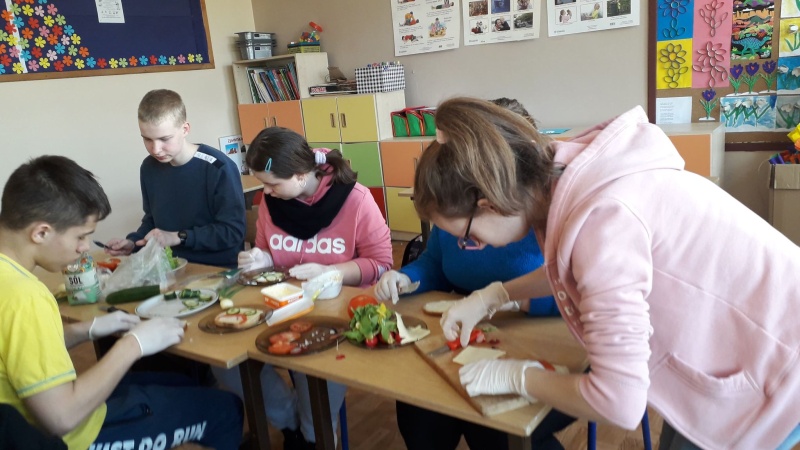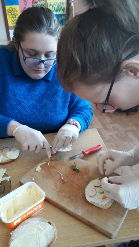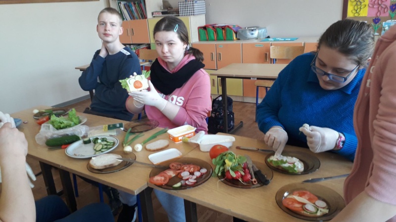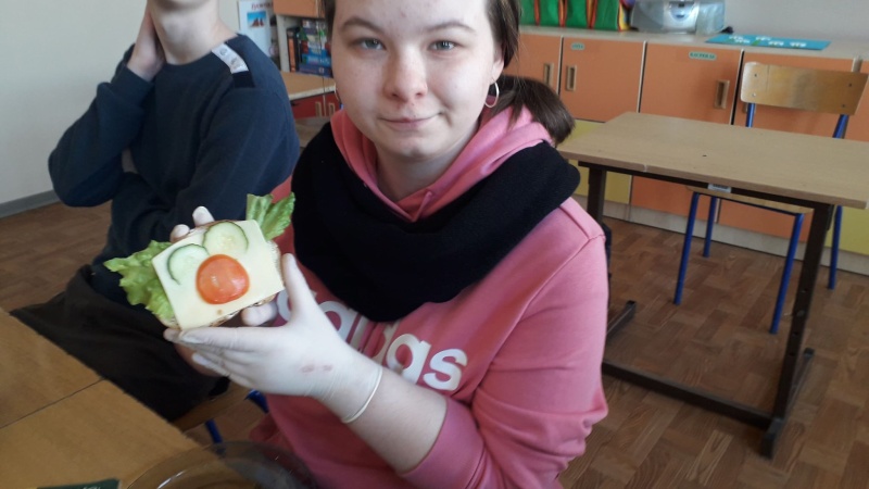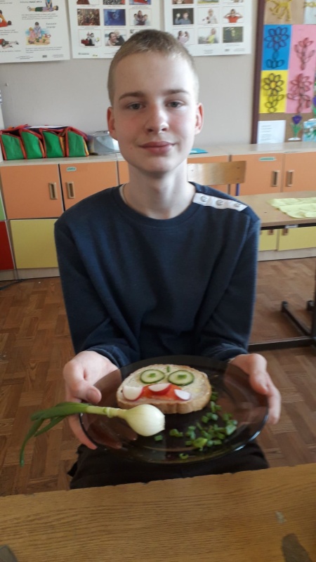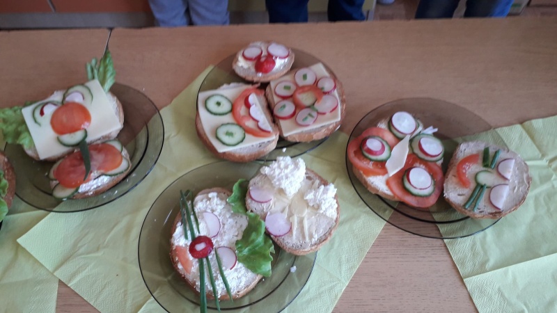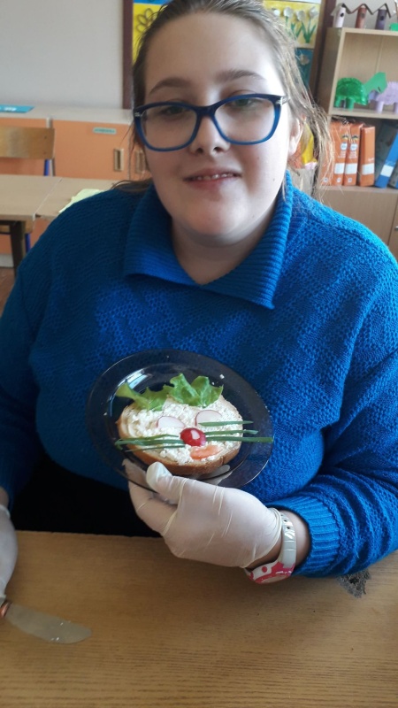 Wiosna to trudny czas dla organizmu .Wraz z upływem zimy zmniejsza się ilość zapasów witamin i minerałów w organizmie a ich niedobór niekorzystnie wpływa na nasze samopoczucie oraz wygląd . Aby temu zapobiec warto uzupełniać dietę w witaminy: A, C, D, E , cynk, kwas foliowy. W sklepach pojawiają się pierwsze, młode warzywa tzw. nowalijki : sałata, rzodkiewka, szczypior , rzeżucha, ogórki. Powinniśmy często po nie sięgać i wprowadzać je do odświeżonego wiosennego menu. W wielu klasach uczniowie, własnoręcznie wykonywali kolorowe wiosenne kanapki, które przybierały postać kwiatków, motyli, kotków a ich przygotowanie sprawiało wszystkim wielką frajdę. Każdy chciał zaprezentować kanapkę własnego pomysłu.