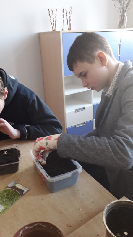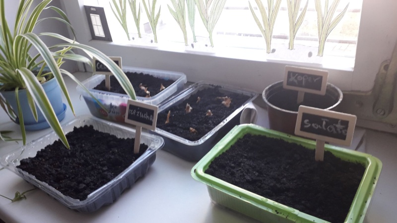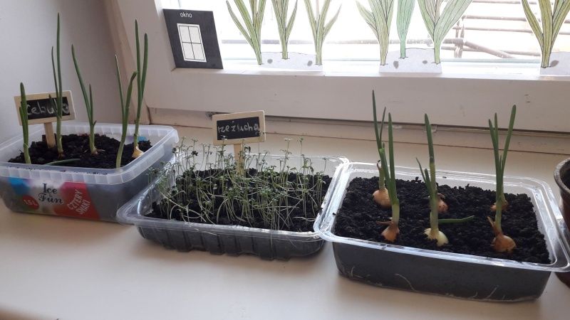 Marzec to czas siewu nasion i pierwszych nasadzeń młodych roślin. Aby wykorzystać je potem jako bogate źródło witamin i dodatek do potraw czy kanapek. To właśnie wiele niepozornych roślin nadaje prawdziwy smak potrawie. Uczniowie w klasach, przystąpili do siewu rzeżuchy, koperku, sadzenia cebulek na szczypior . Obserwują ich wzrost, sprawdzają wilgotność, podlewają a dane zapisują w kartach obserwacji roślin. Rozpoznają siewki i odczytują nazwy gatunków z etykiet. Z wielką ciekawością i radością zaglądają codziennie do swoich doniczek i cieszą się wrastającymi nowalijkami.
