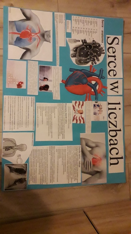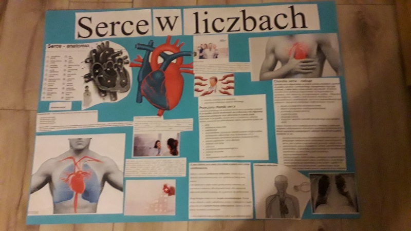 W ramach działań promujących zdrowie, uczniowie klas VI – VIII s na lekcjach biologicznych, pracowali nad projektem edukacyjnym pt. „Serce w liczbach”. Pogłębiali wiedzę o sercu, chorobach oraz profilaktyce. Efektem końcowym był wspólny odbiornik zbierający wiadomości, które uczniowie samodzielnie pozyskiwali z różnych źródeł.