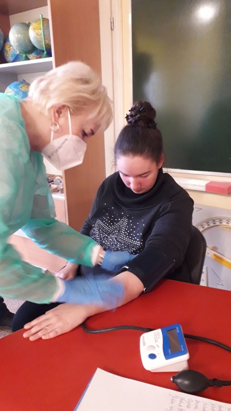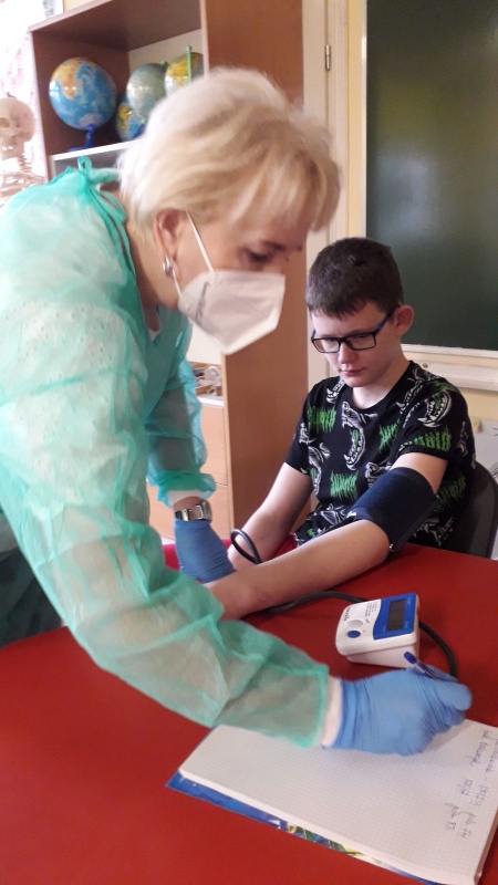 W zakresie tego zadania, należy się również szkolna akcja miernika ciśnienia tętniczego u uczniów naszych szkół, która obejmuje pani higienistkę. W przypadku wykrycia wyników, dokonano wystosowania informacji do rodziców.