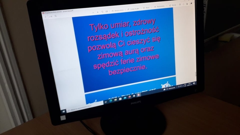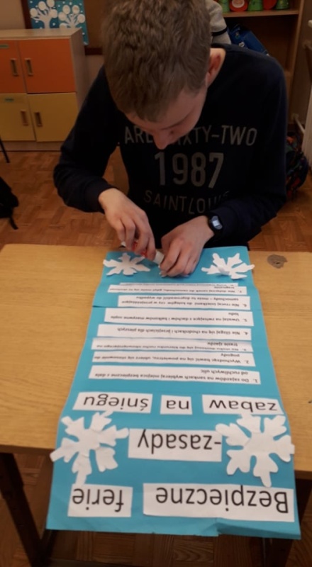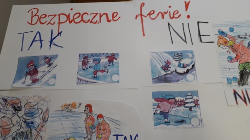 Przed feriami zimowymi uczniami Poszczególne klasy przypominają sobie zasady bezpiecznych zabaw na śniegu i lodzie. Szczegółowe informacje dotyczące wpływu, które mają znaczenie dla aktywnego wypoczynku i ruchu na świeżym powietrzu dla naszego zdrowia. Obejrzeliśmy także prezentację multimedialną pt. ” Bezpieczeństwo podczas ferii zimowych.” Omówiono zasady dotyczące jazdy na lodowiskach czy stoku narciarskim oraz kiedy iw jakich warunkach można organizować kulig.