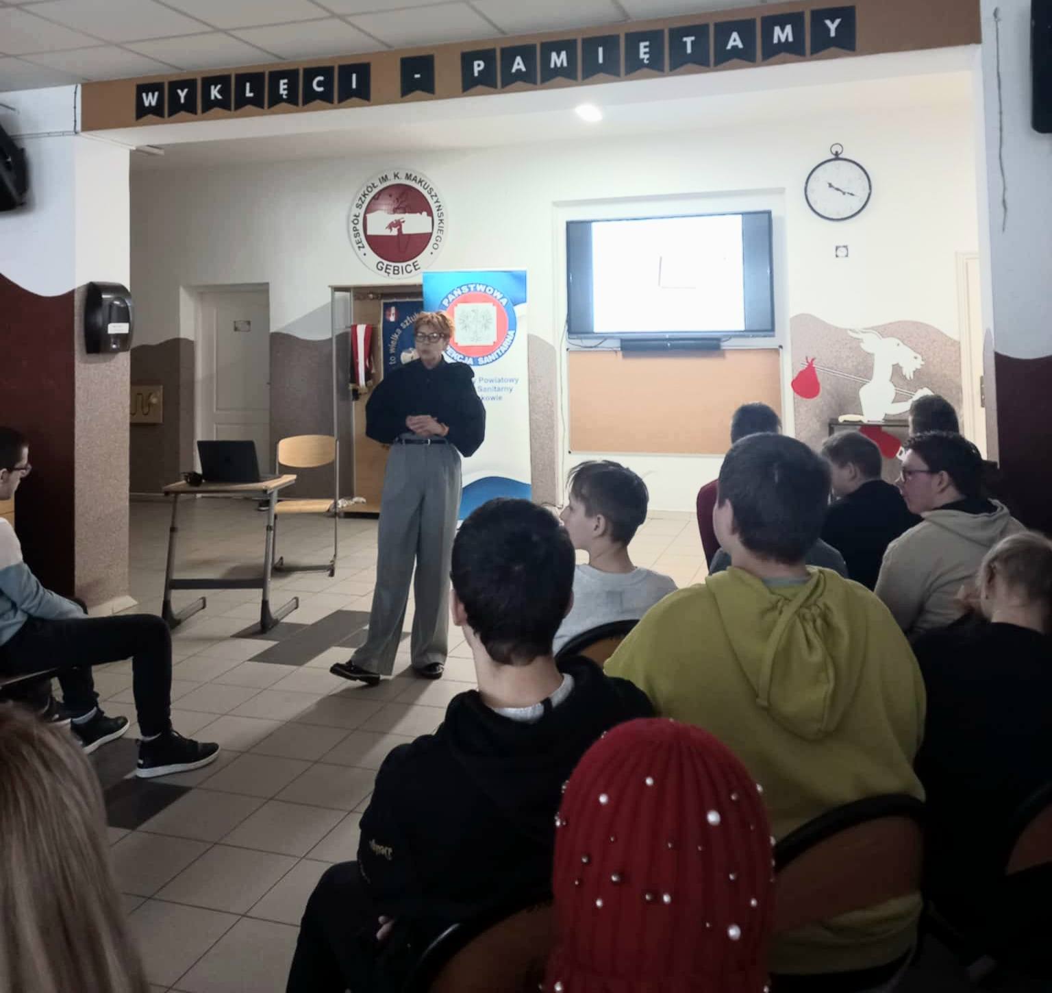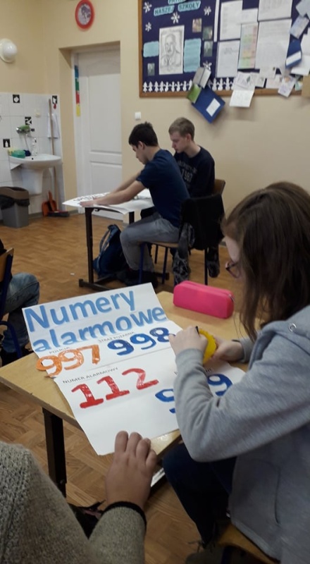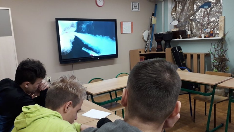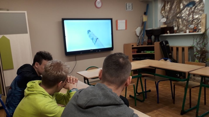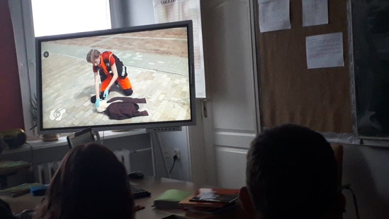 Na lekcjach biologicznych w ramach pogadanki o ryzyku, klasy VI – VIII s, uruchamiając film instruktażowy pt.” Pierwsza pomoc”. O zasadach stosowania pomocy w przypadku wystąpienia zdarzenia.