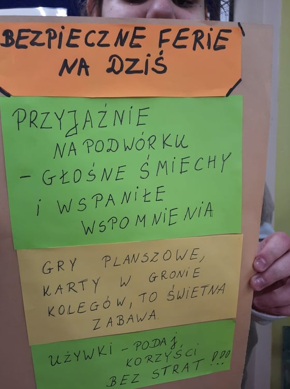 przestrzegaliśmy z panią pielęgniarką o dbaniu o zdrowie fizyczne i psychiczne, a także podczas ferii, aby nasz hart ducha i ciało było przez cały czas silny. Jest to obecnie ważne, ponieważ epidemia wirusa Covid – 19 nadal trwa i jest groźna. Zapoznaliśmy się z prezentacjami informacyjnymi, prowadziliśmy pogadanki oraz rozwiązywaliśmy quizy internetowe. Poruszyliśmy takie zagadnienia jak: