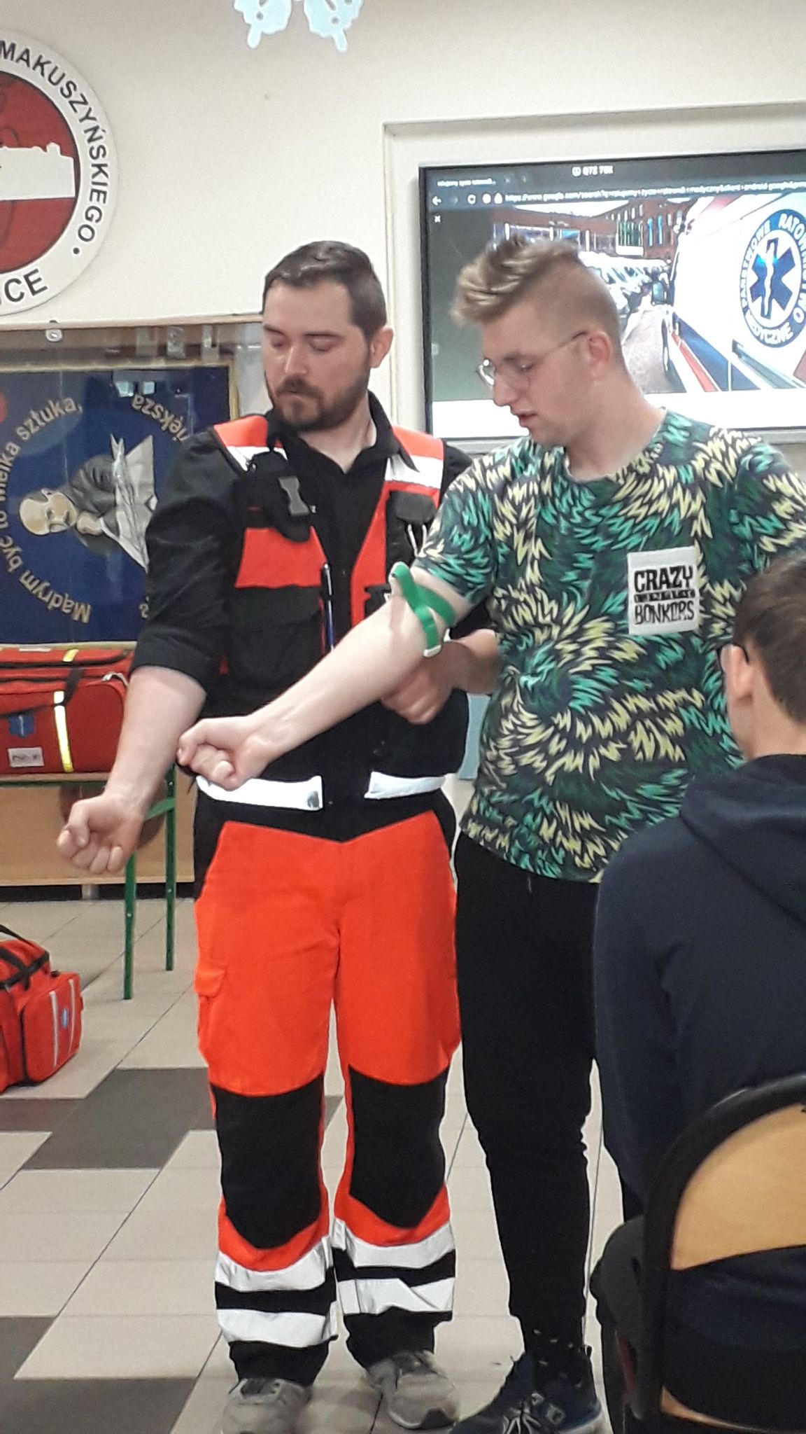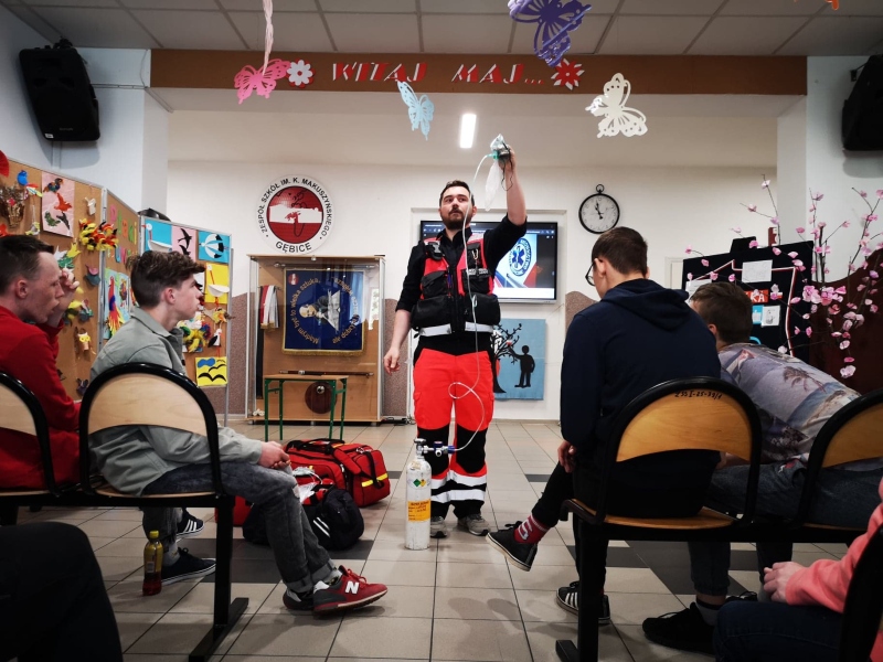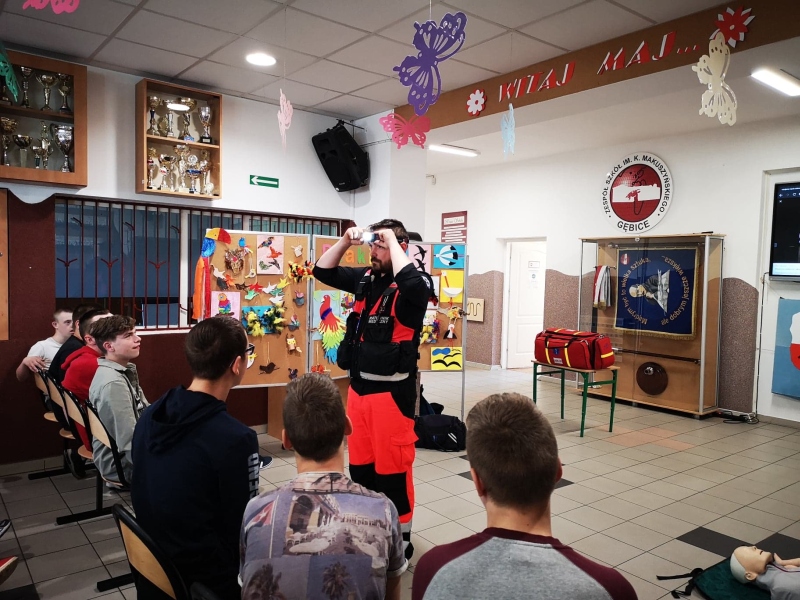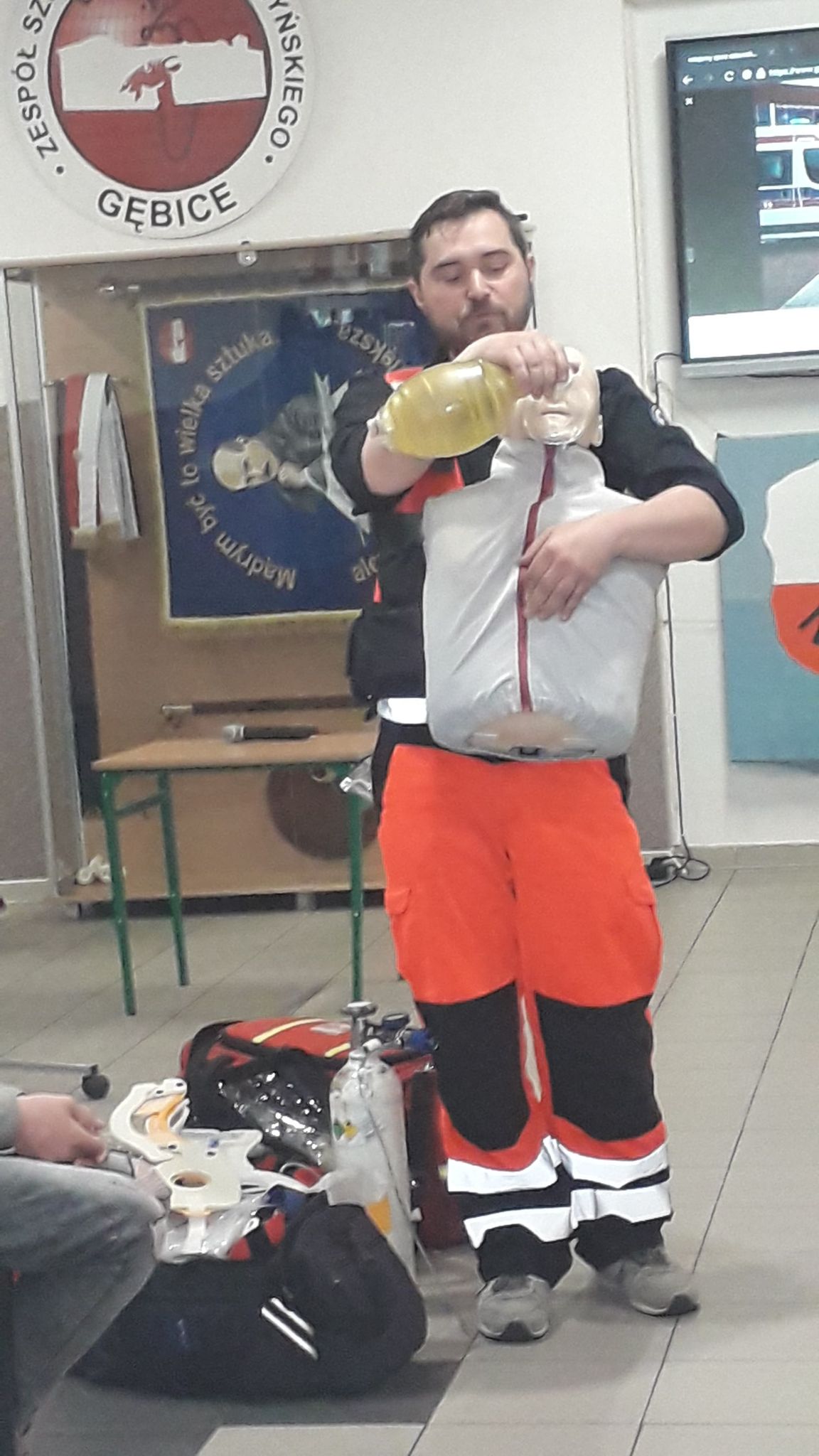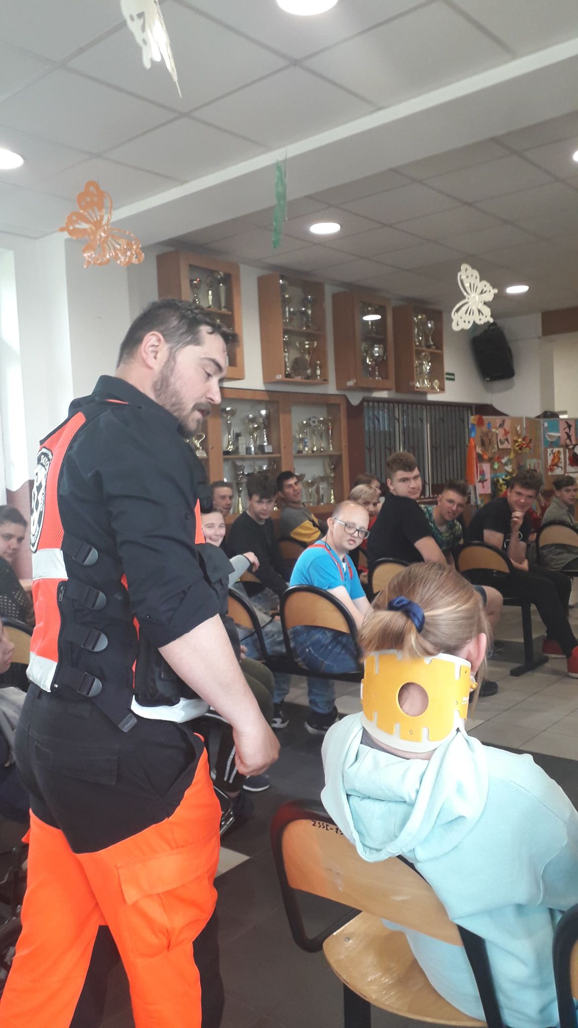 13 maja2022r odbyło się w naszej szkole, spotkanie z ratownikiem medycznym panem Stanisławem, który gościł u nas kolejny już raz. Uczniowie dokładnie poznali rodzaj i zastosowanie sprzętu medycznego używanego na co dzień do ratowania życia podczas akcji udzielania I pomocy. Dowiedzieli się jak sprawdzać parametry życiowe, oraz wykonać pierwsze badanie oceniające stan poszkodowanego. Szczególnie cenna było możliwość samodzielnego przećwiczenia udzielnie I pomocy od okiem doskonałego fachowca z bardzo dokładnym instruktażem. Uczniowie przypomnieli sobie również numery alarmowe oraz instytucje zajmujące się ratownictwem. A także konsekwencje i odpowiedzialność karną za nie uzasadnione wezwanie służb ratunkowych. Spotkanie to nie tylko pogłębiło ale też zaktualizowało naszą wiedzę w zakresie udzielania I pomocy przedmedycznej.