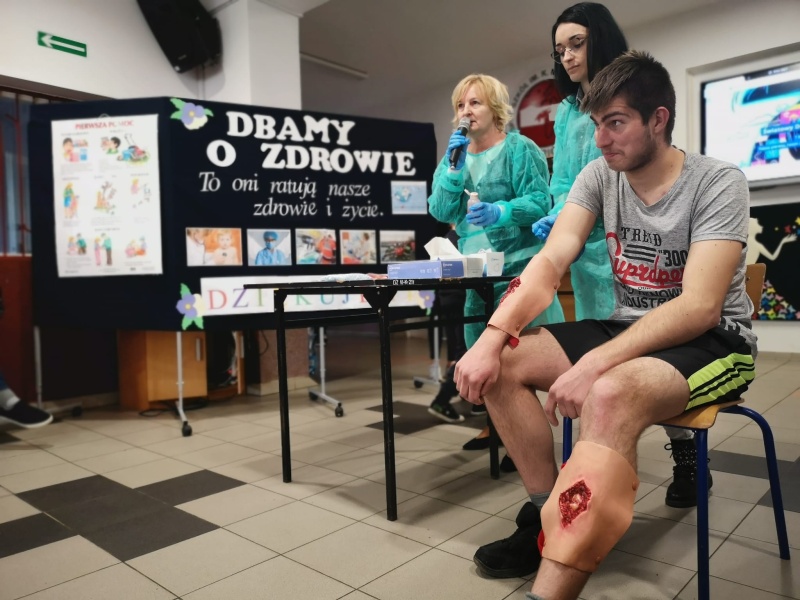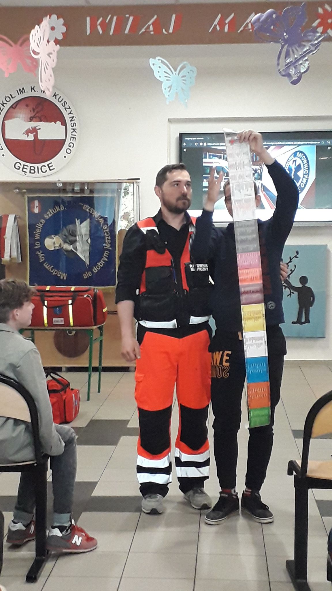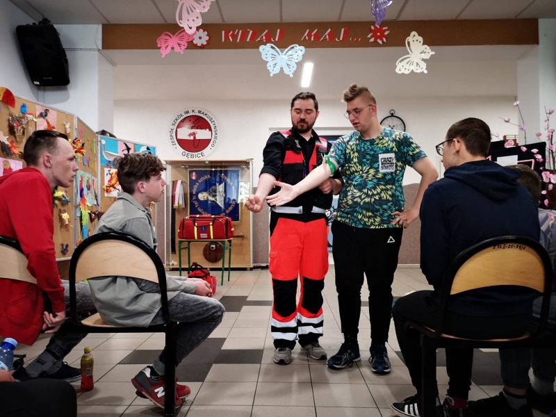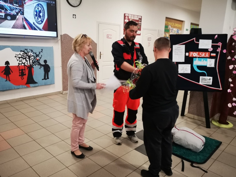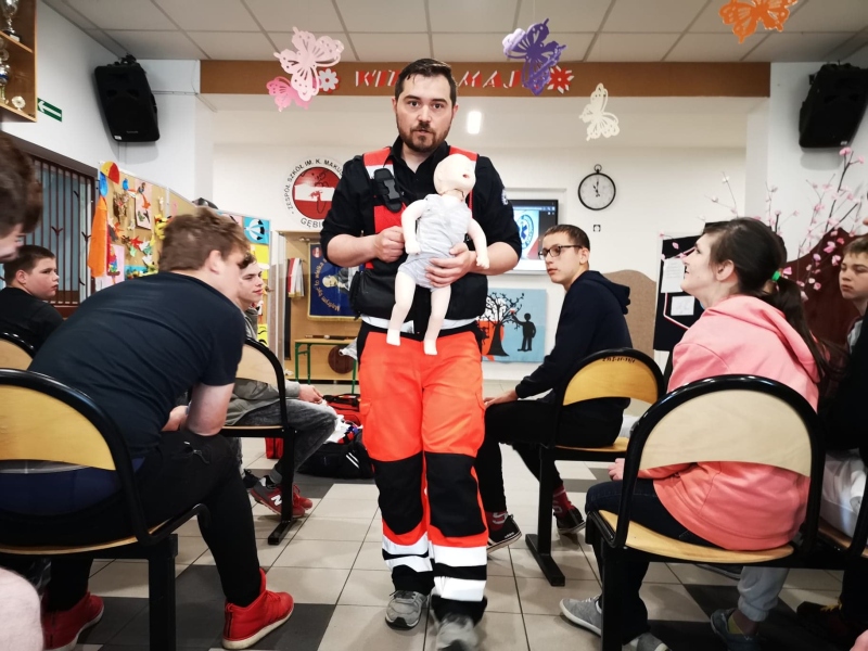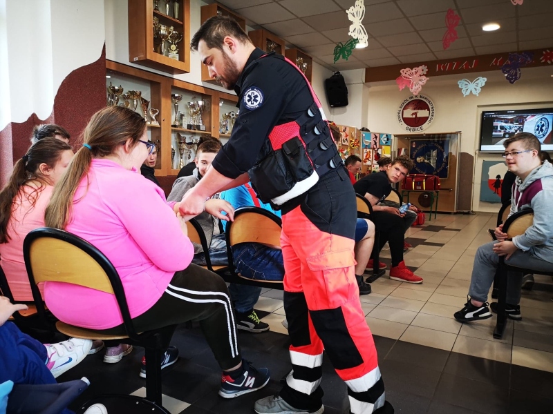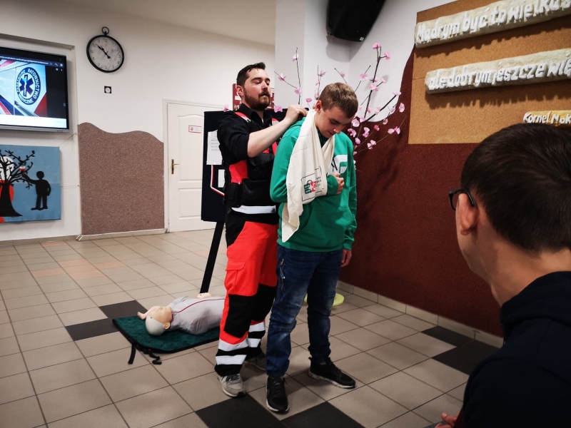 13 maja2022r odbyło się w naszej szkole, spotkanie z ratownikiem medycznym panem Stanisławem, który gościł u nas kolejny już raz. Uczniowie dokładnie poznali rodzaj i zastosowanie sprzętu medycznego używanego na co dzień do ratowania życia podczas akcji udzielania I pomocy. Dowiedzieli się jak sprawdzać parametry życiowe, oraz wykonać pierwsze badanie oceniające stan poszkodowanego. Szczególnie cenna było możliwość samodzielnego przećwiczenia udzielnie I pomocy od okiem doskonałego fachowca z bardzo dokładnym instruktażem. Uczniowie przypomnieli sobie również numery alarmowe oraz instytucje zajmujące się ratownictwem. A także konsekwencje i odpowiedzialność karną za nie uzasadnione wezwanie służb ratunkowych. Spotkanie to nie tylko pogłębiło ale też zaktualizowało naszą wiedzę w zakresie udzielania I pomocy przedmedycznej.