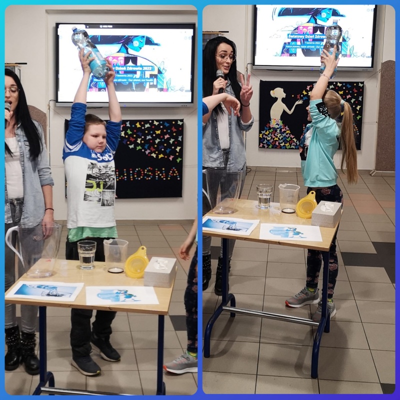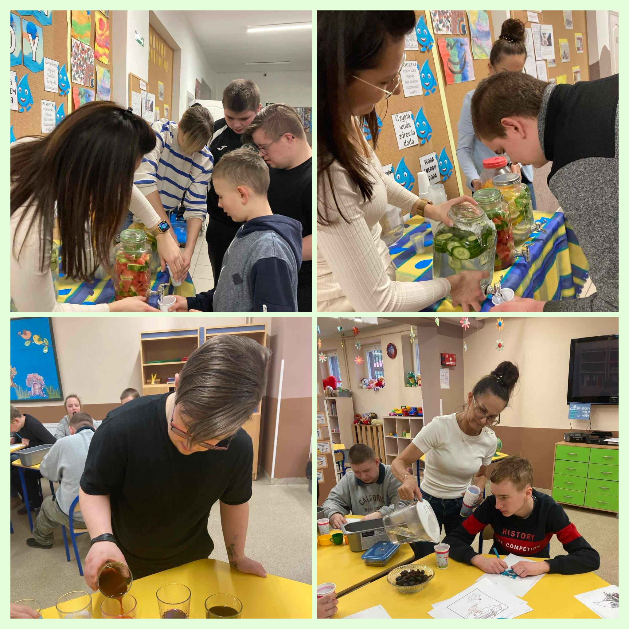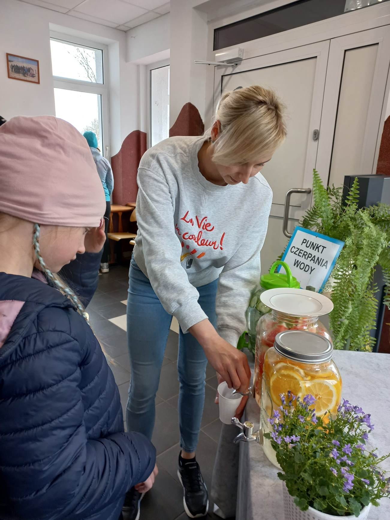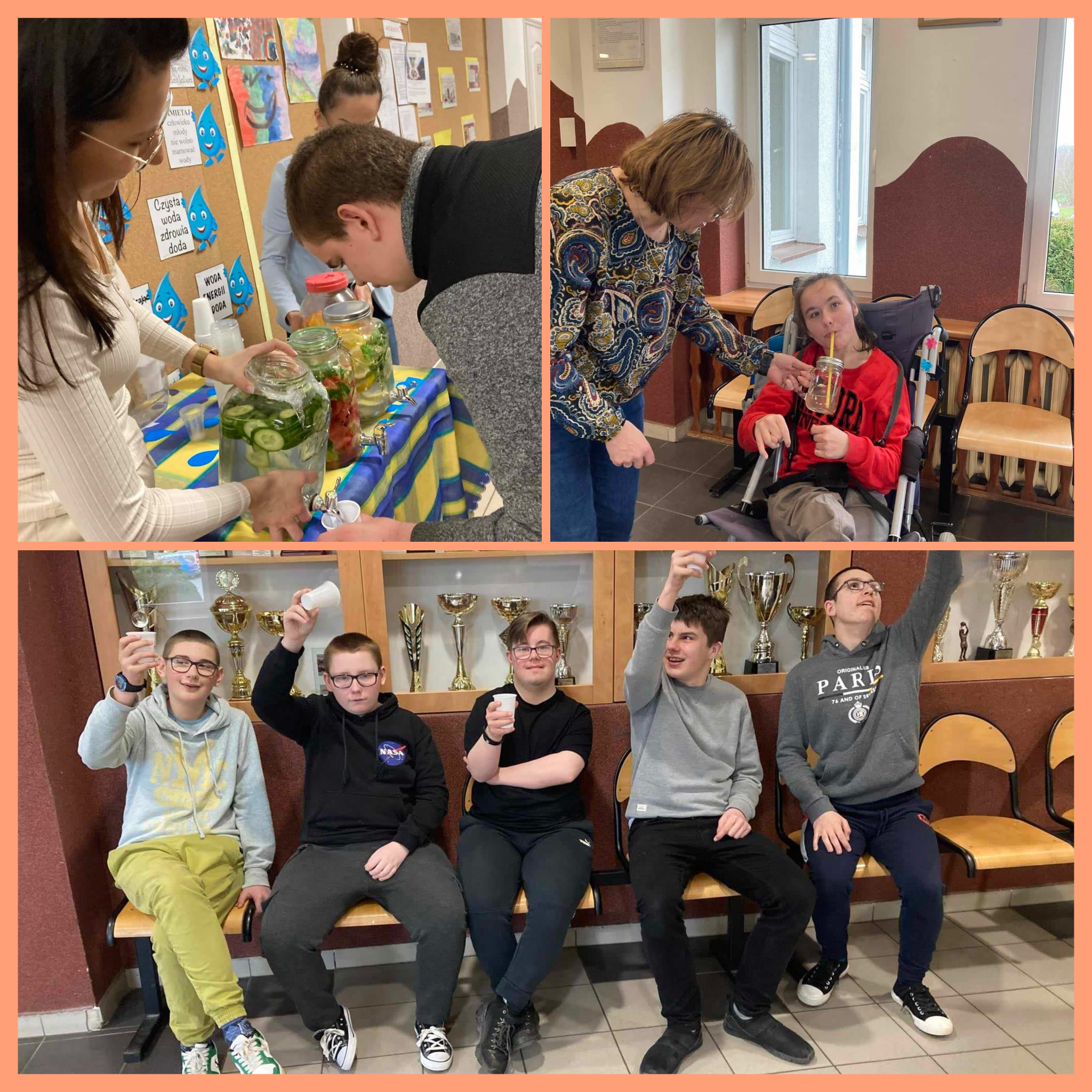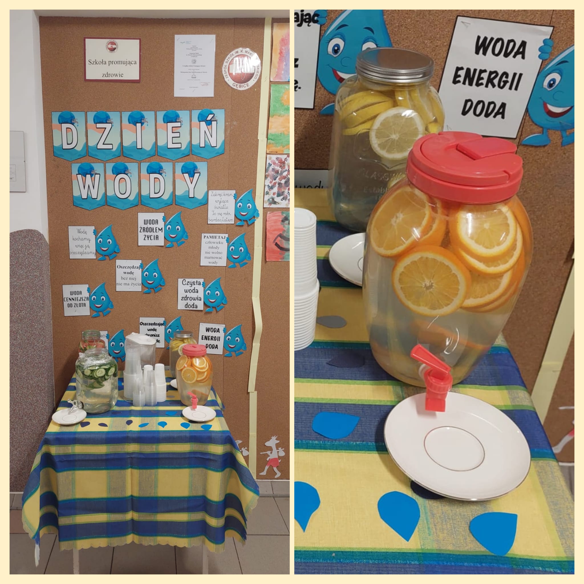22 marca obchodziliśmy Światowy Dzień Wody. Z tej okazji w świetlicy szkolnej pani Ania prowadziła lekcję tematyczną, a na holu szkoły każdy może skosztować wody smakowej przygotowanej przez zespół ds. promocja zdrowia