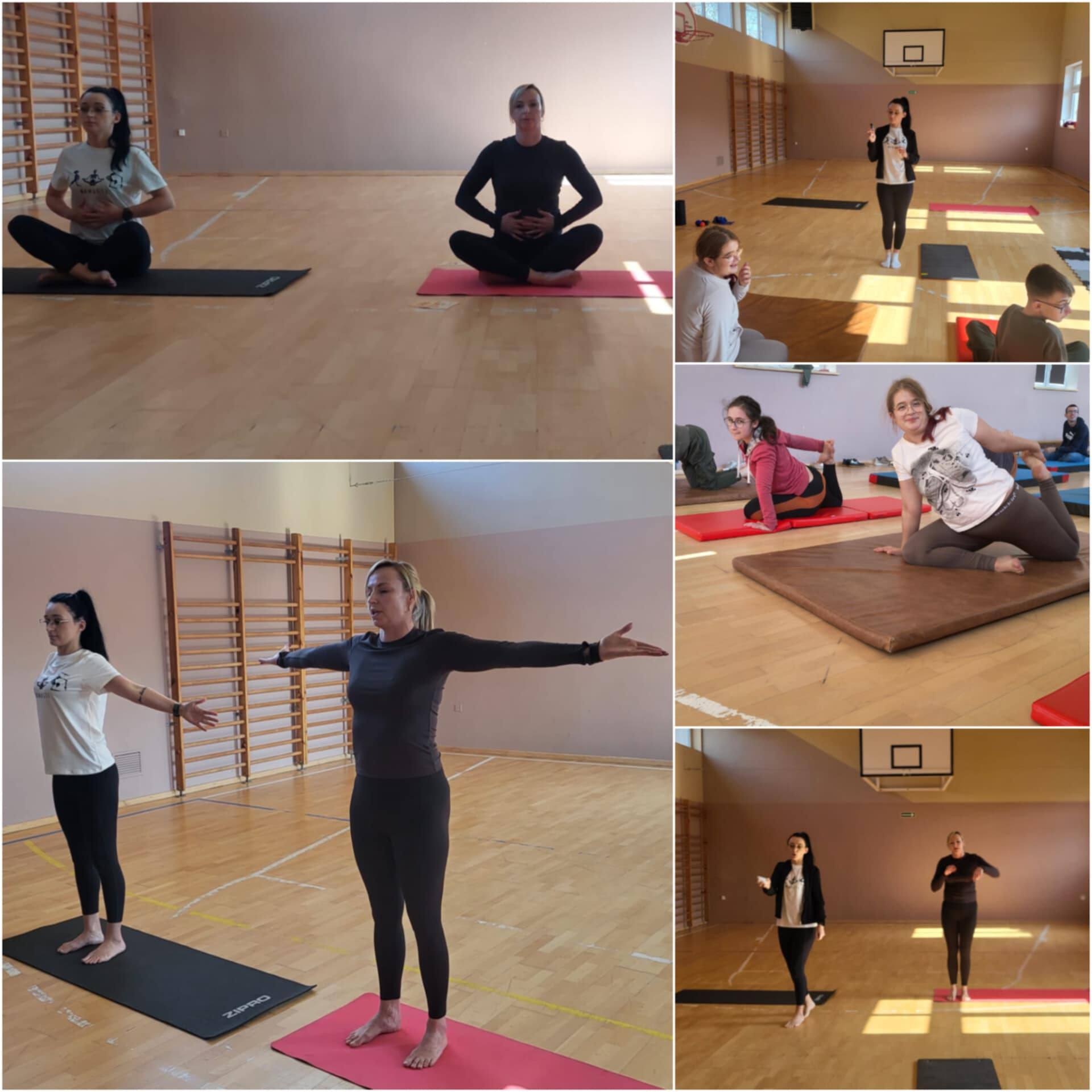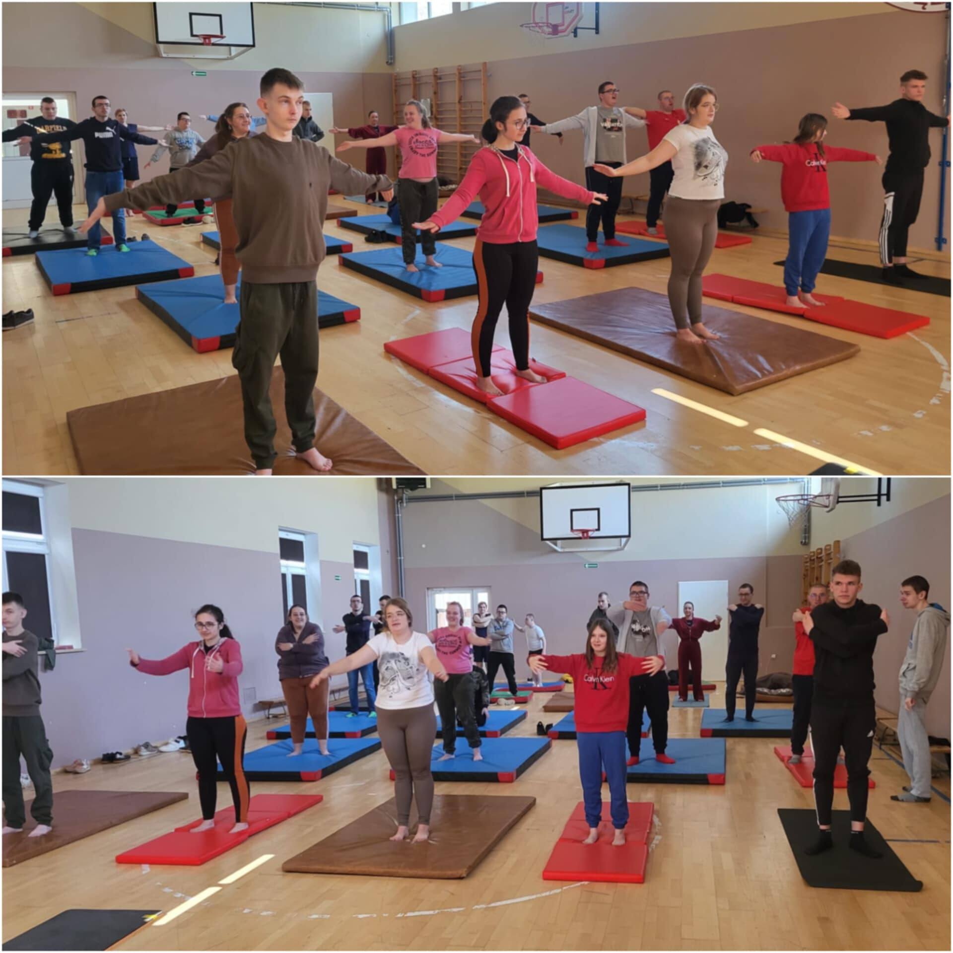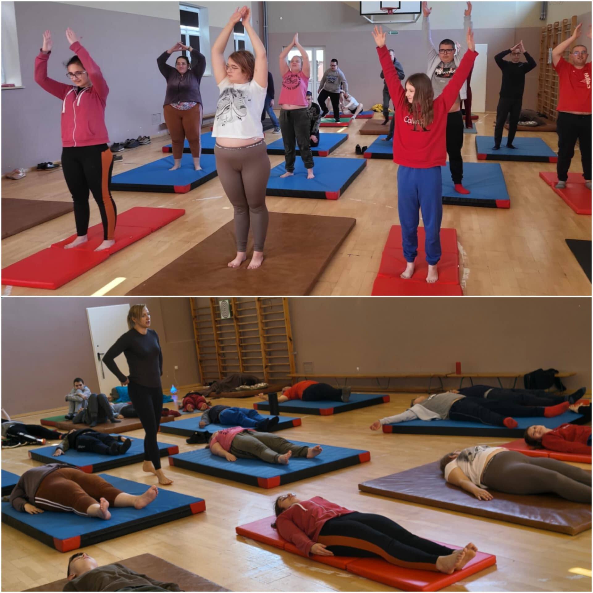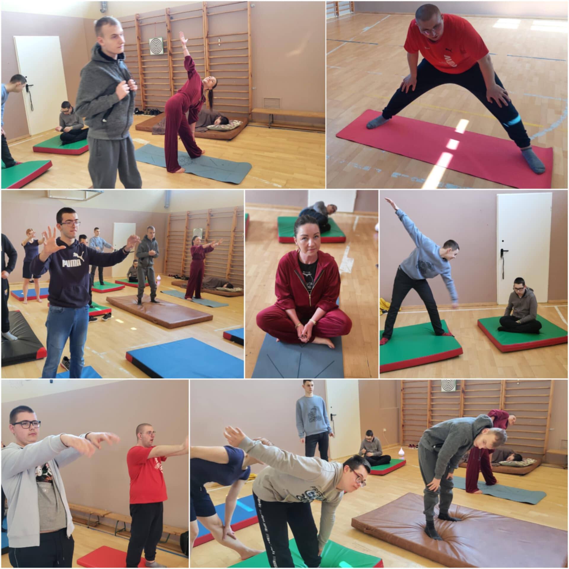 W ramach innowacji pedagogicznej „Jemy smacznie, żyjemy zdrowo” w naszej szkole odbyły się zajęcia z jogi dla uczniów klas przysposabiających do pracy. Spotkanie rozpoczęło się od aromaterapii i odgadywania zapachu z dyfuzora. Następnie uczniowie wzięli udział w rozgrzewce oraz ćwiczeniach jogi, a także prezentowali własne figury inspirowane kartami.