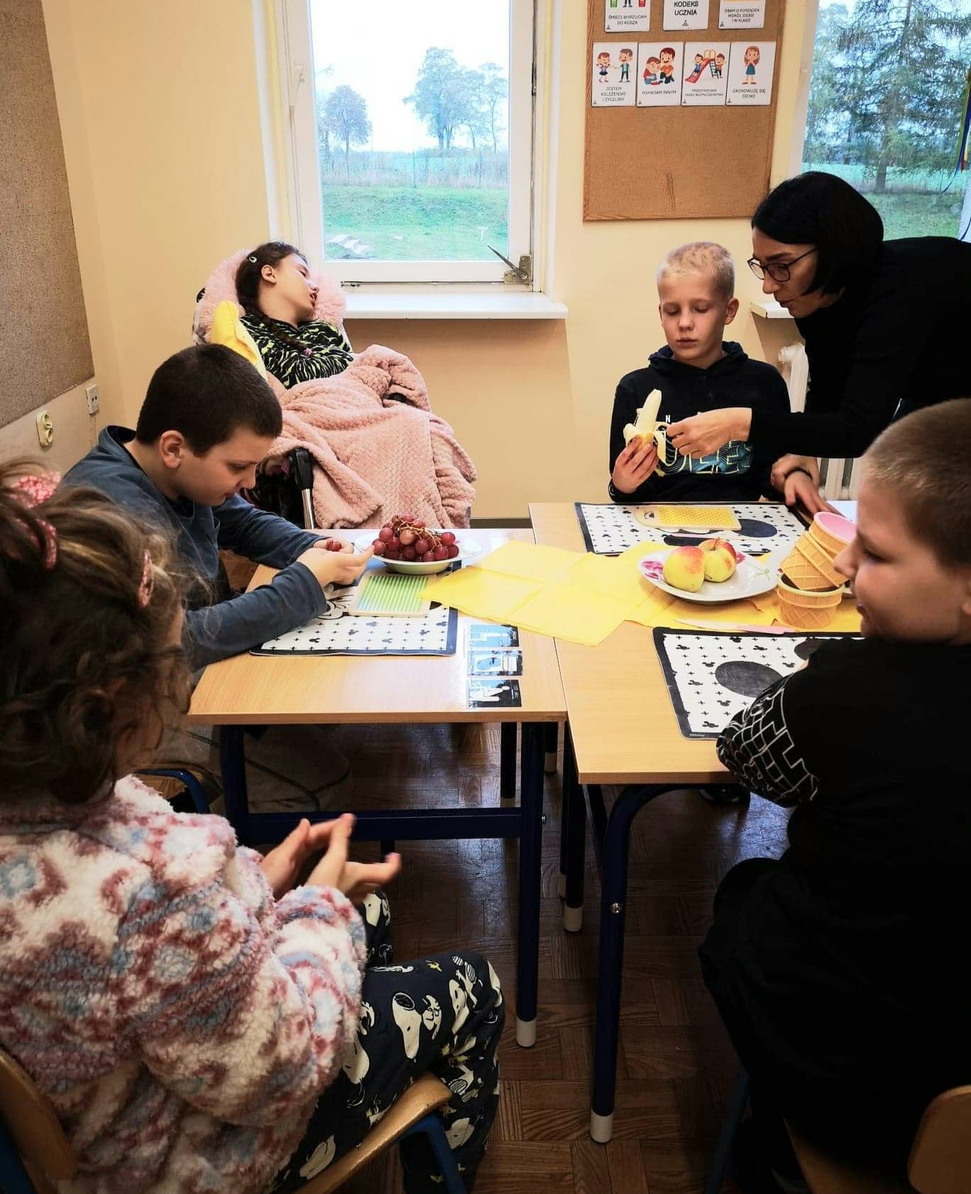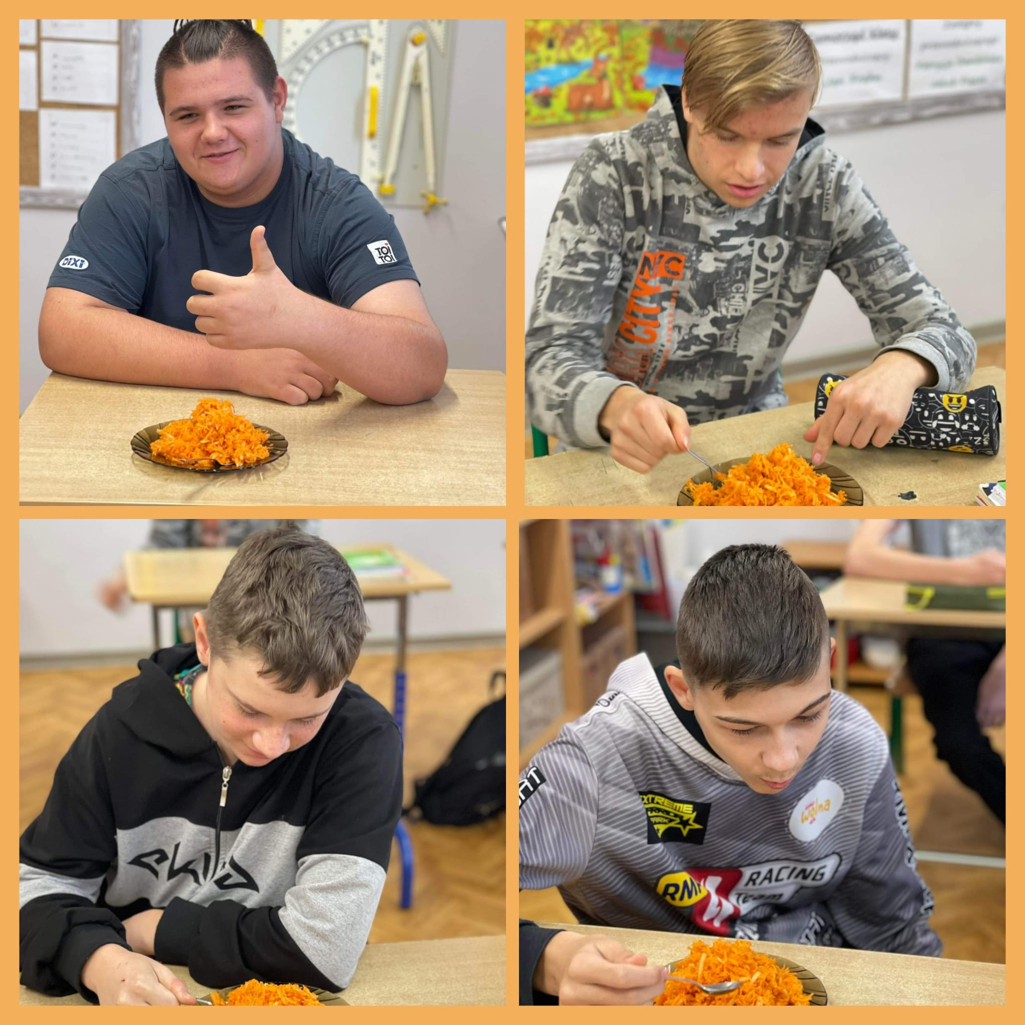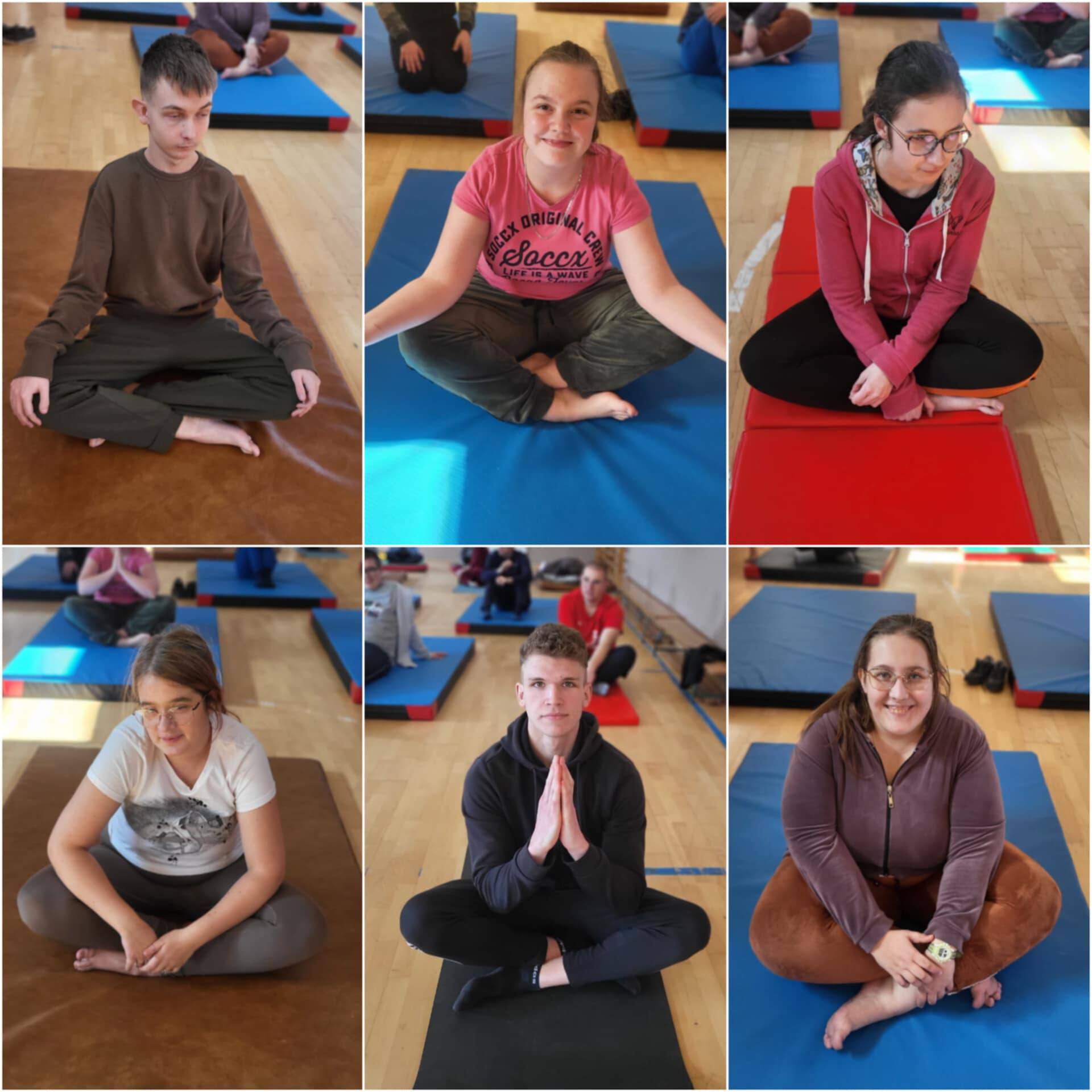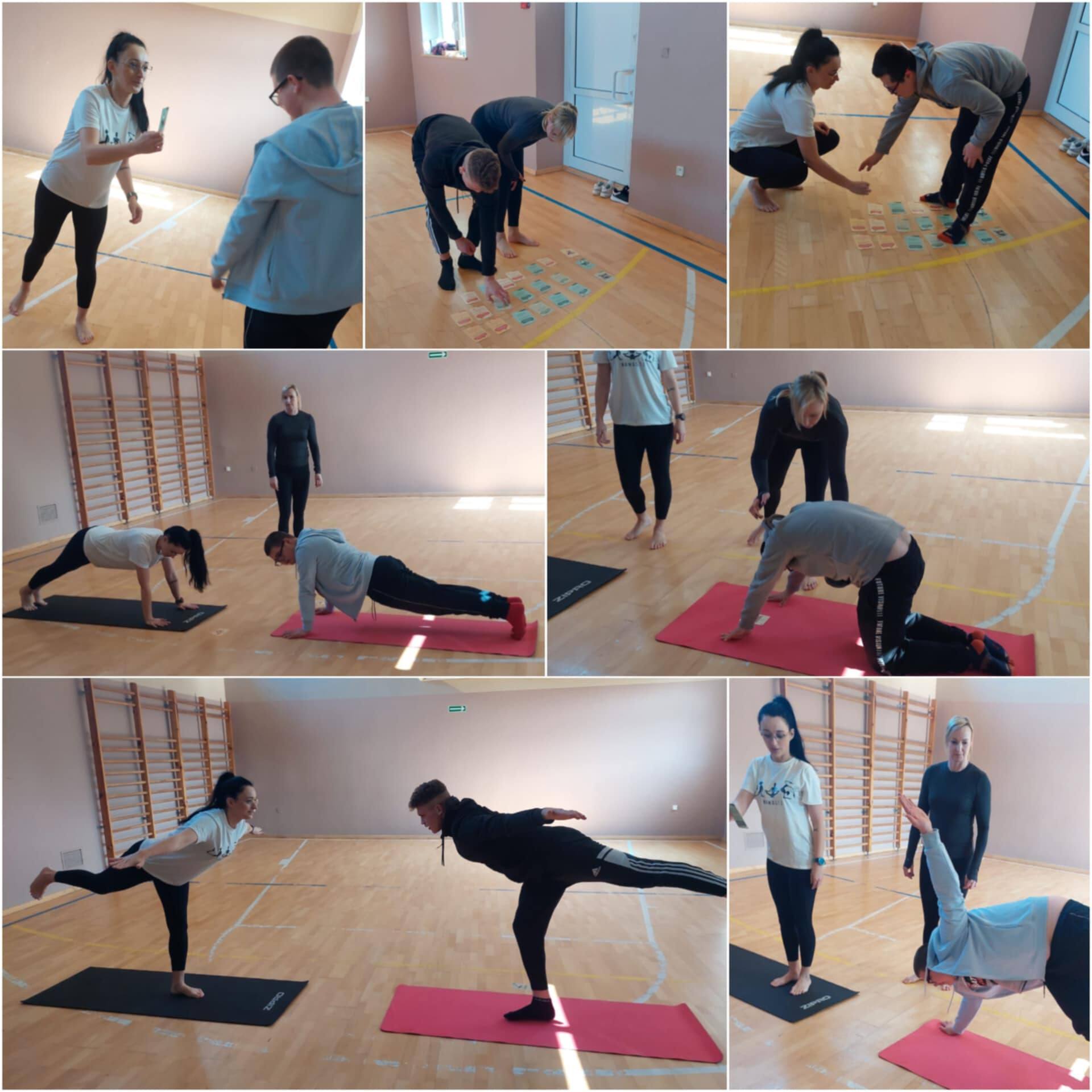 W ramach innowacji pedagogicznej „Jemy smacznie, żyjemy zdrowo” w naszej szkole odbyły się zajęcia z jogi dla uczniów klas przysposabiających do pracy. Spotkanie rozpoczęło się od aromaterapii i odgadywania zapachu z dyfuzora. Następnie uczniowie wzięli udział w rozgrzewce oraz ćwiczeniach jogi, a także prezentowali własne figury inspirowane kartami.