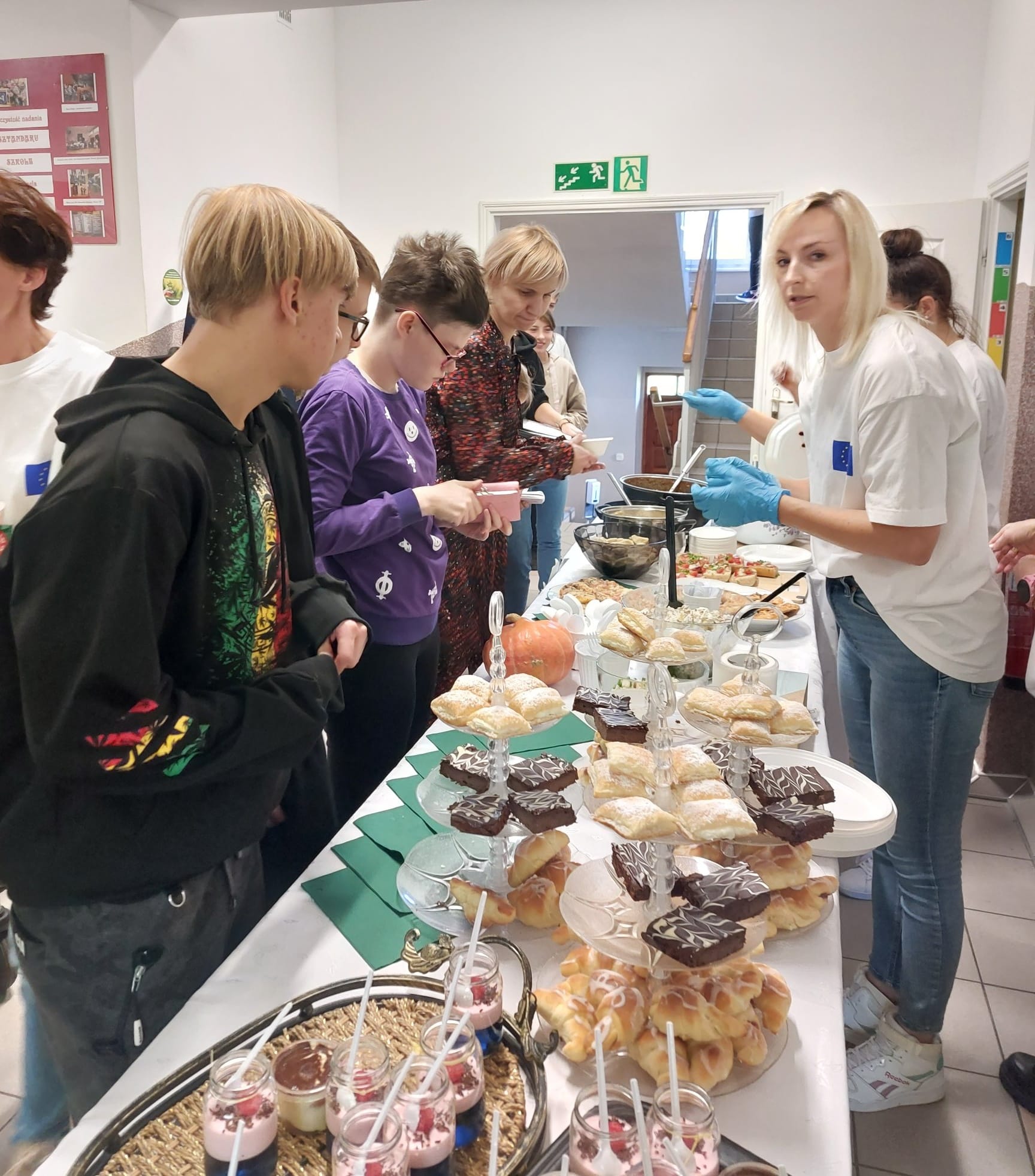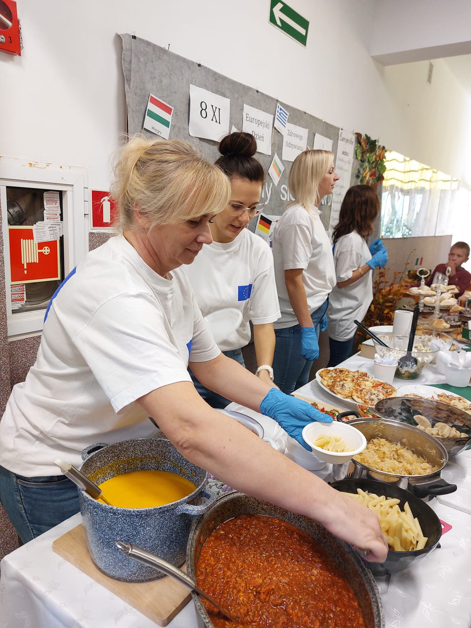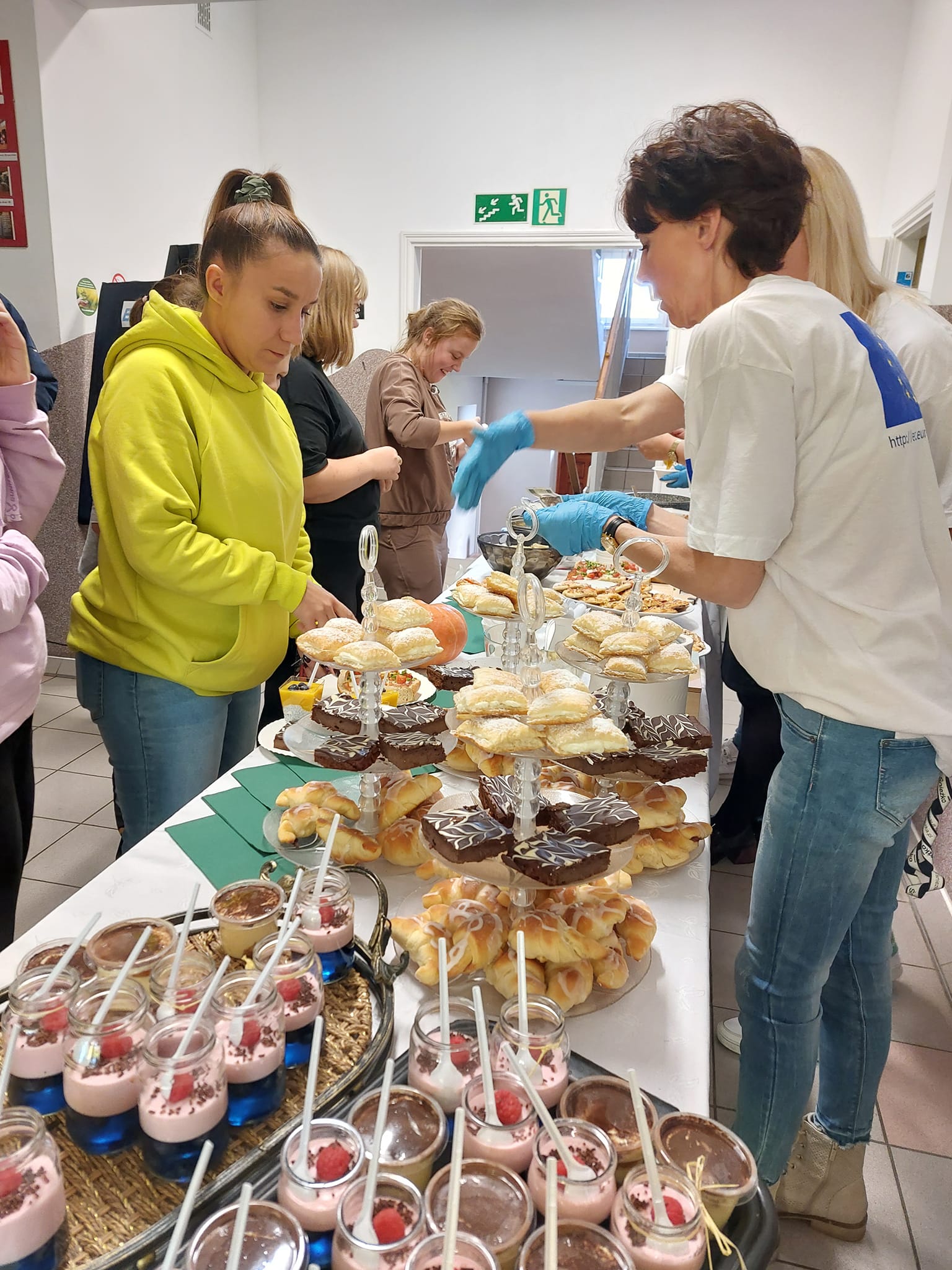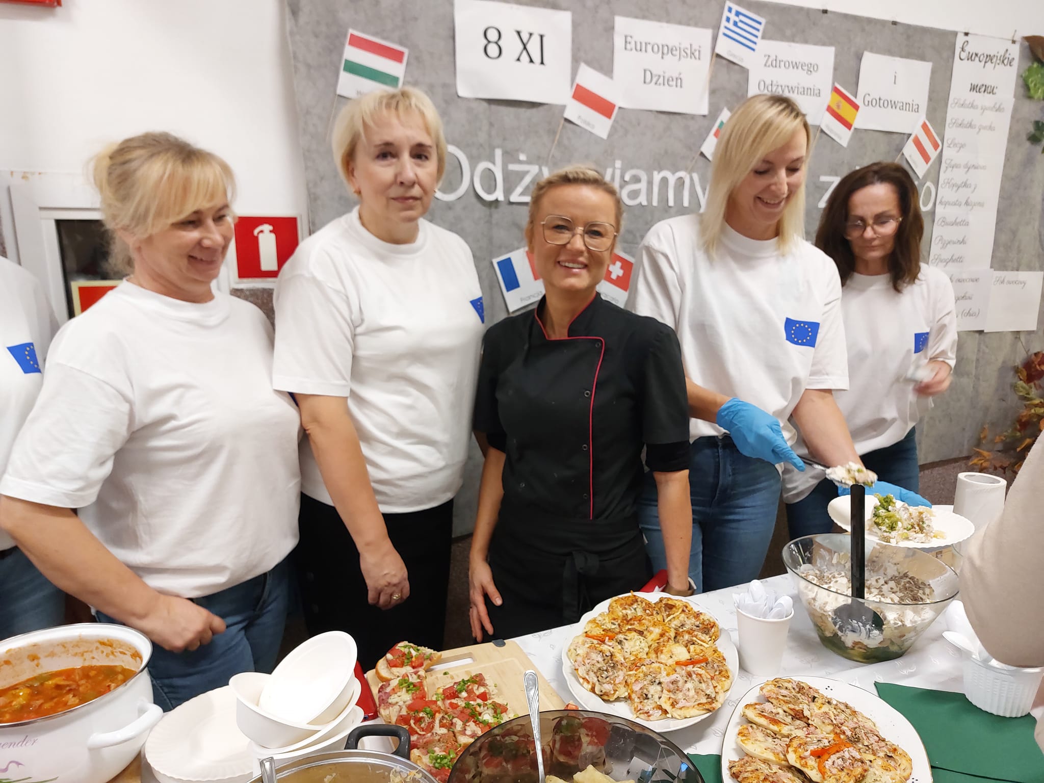 To był smakowity dzień, podczas którego obchodziliśmy Europejski Dzień Zdrowego Gotowania i Odżywiania. Warsztaty kulinarne kuchni pasjonatka gotowania Pani Sylwia Humeniuk . W naszej szkolnej kuchni "Na Pięterku" wraz z uczniami wykonanya pizzerinki, sos bolognese z makaronem i charakterystycznym deser tiramisu. Do śniadania uczniowie mogli skosztować owocowy sok. Inaczej na holu w naszej szkolej kawiarence zespół ds. Promocja Zdrowia przygotowała różne dania dla całej społeczności szkolnej.