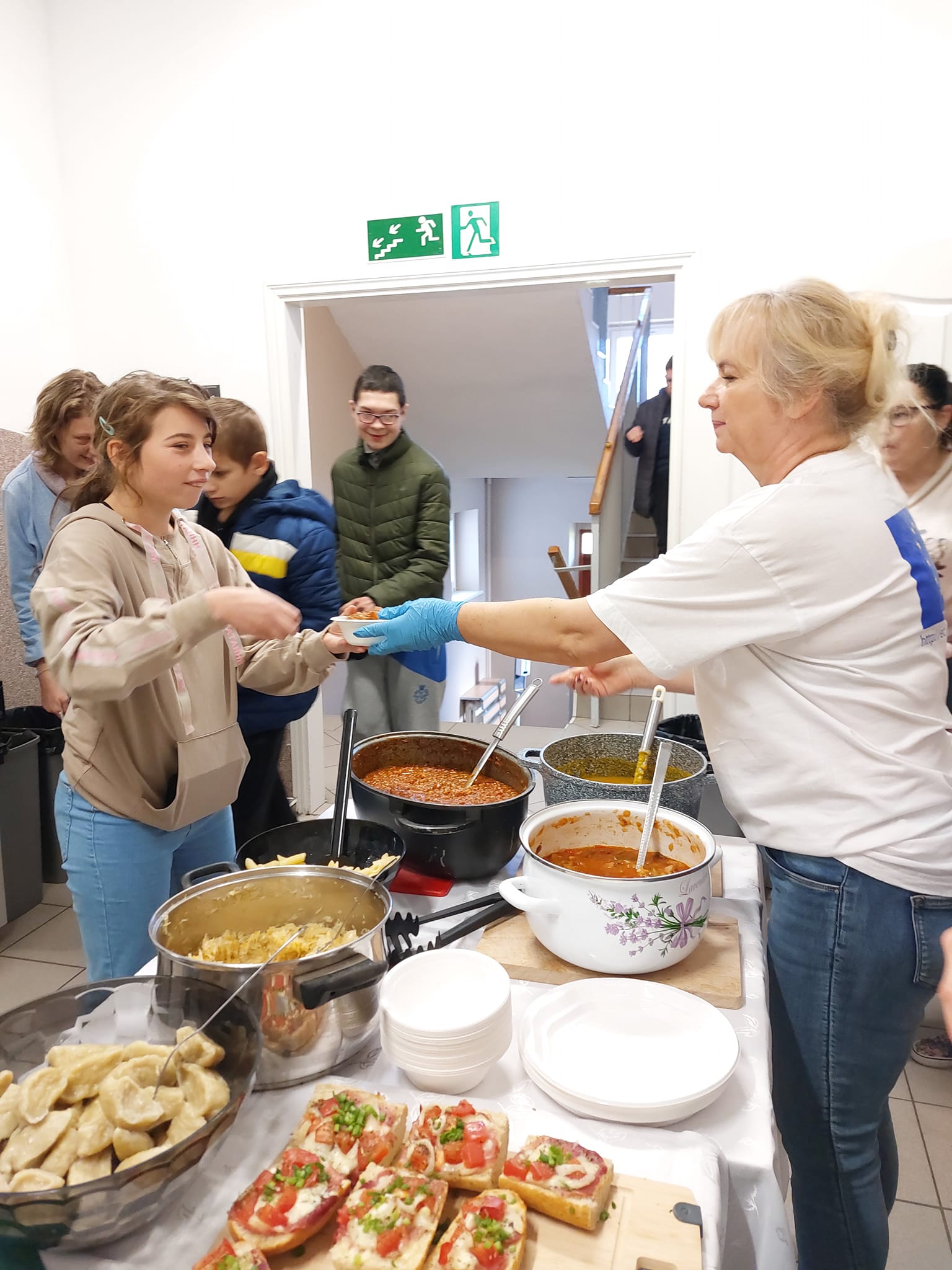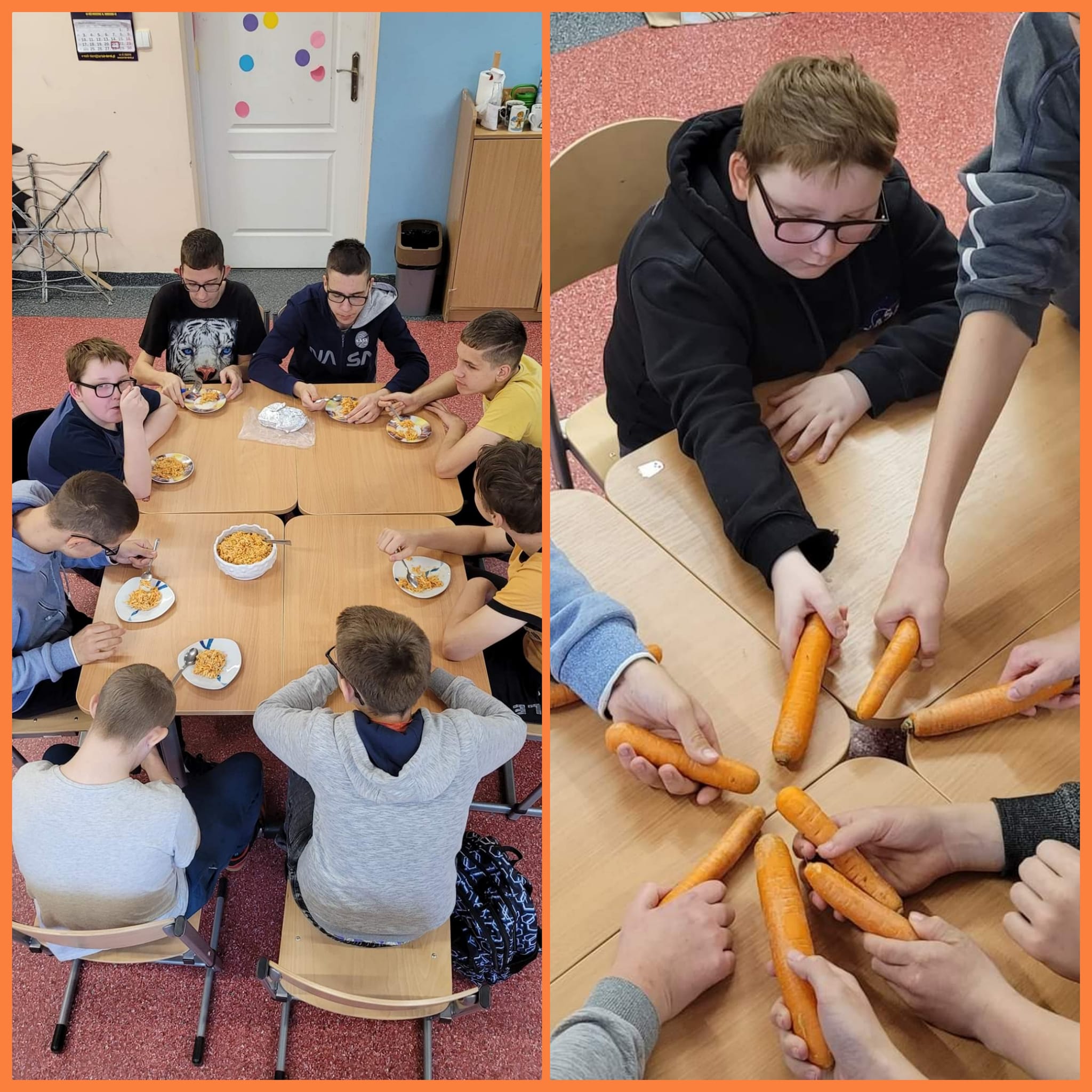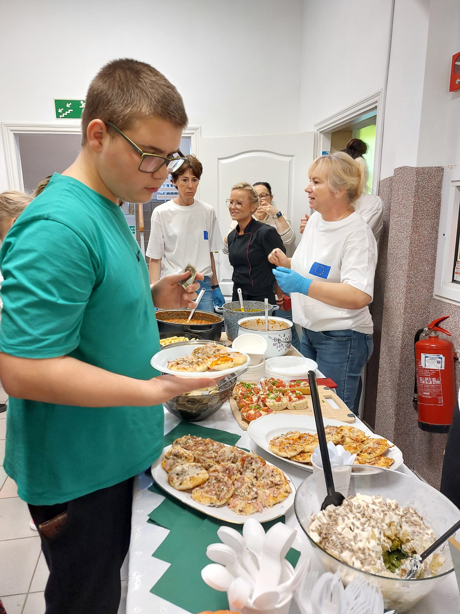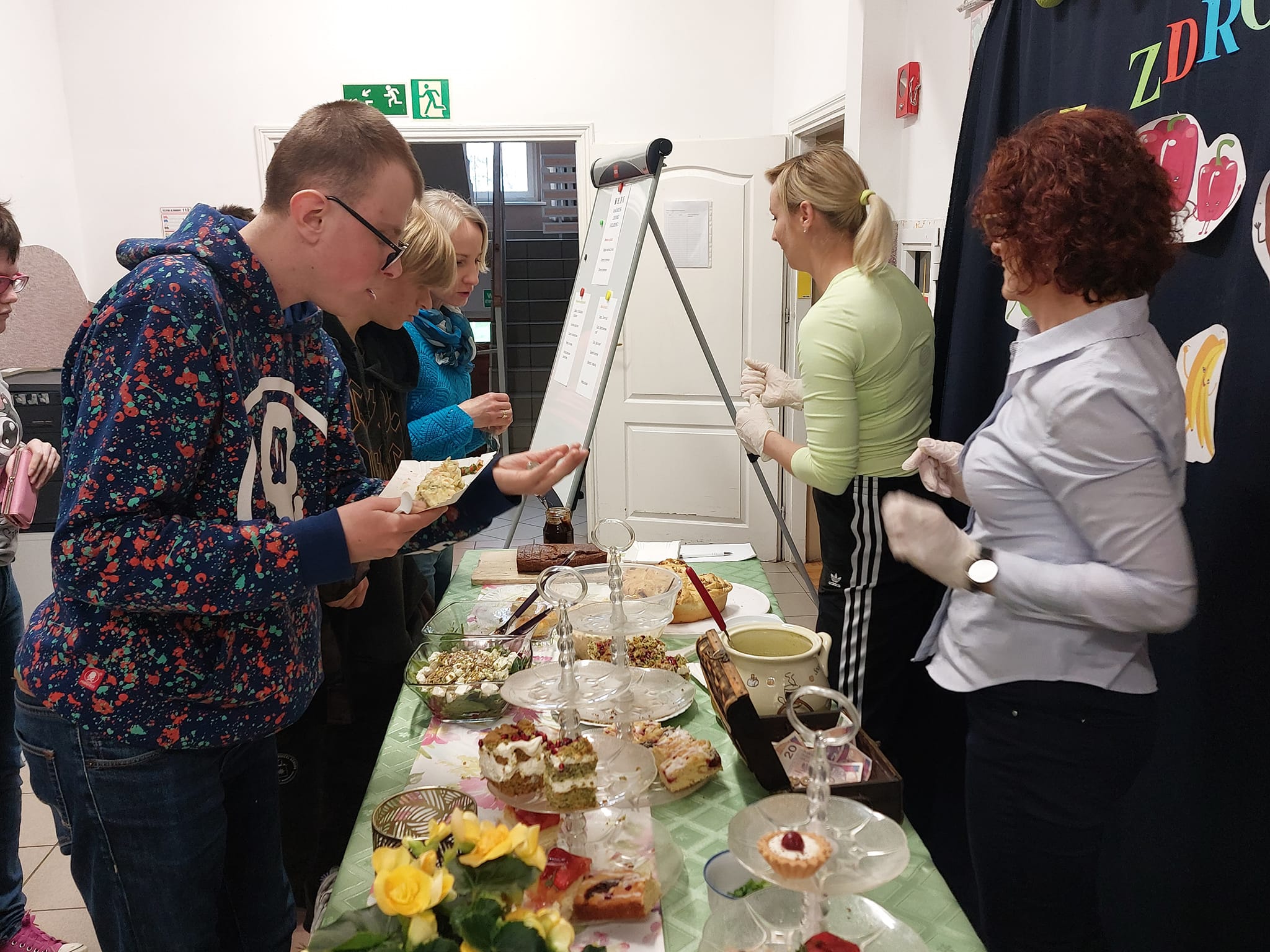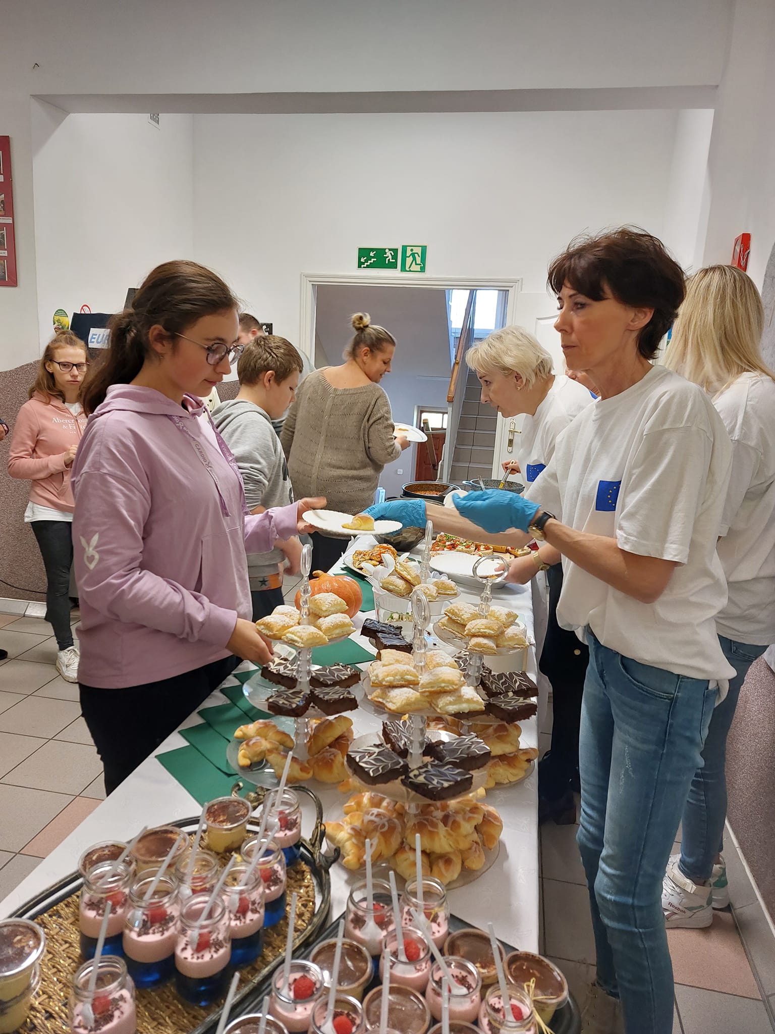 To był smakowity dzień, podczas którego obchodziliśmy Europejski Dzień Zdrowego Gotowania i Odżywiania. Warsztaty kulinarne kuchni pasjonatka gotowania Pani Sylwia Humeniuk . W naszej szkolnej kuchni "Na Pięterku" wraz z uczniami wykonanya pizzerinki, sos bolognese z makaronem i charakterystycznym deser tiramisu. Do śniadania uczniowie mogli skosztować owocowy sok. Inaczej na holu w naszej szkolej kawiarence zespół ds. Promocja Zdrowia przygotowała różne dania dla całej społeczności szkolnej.