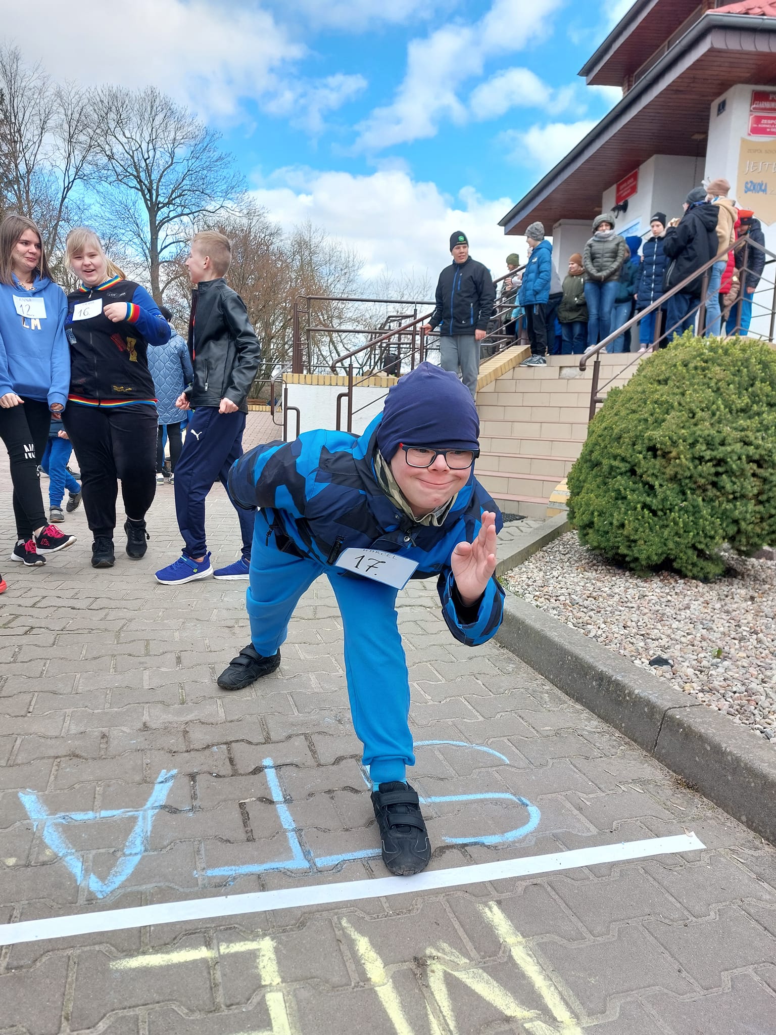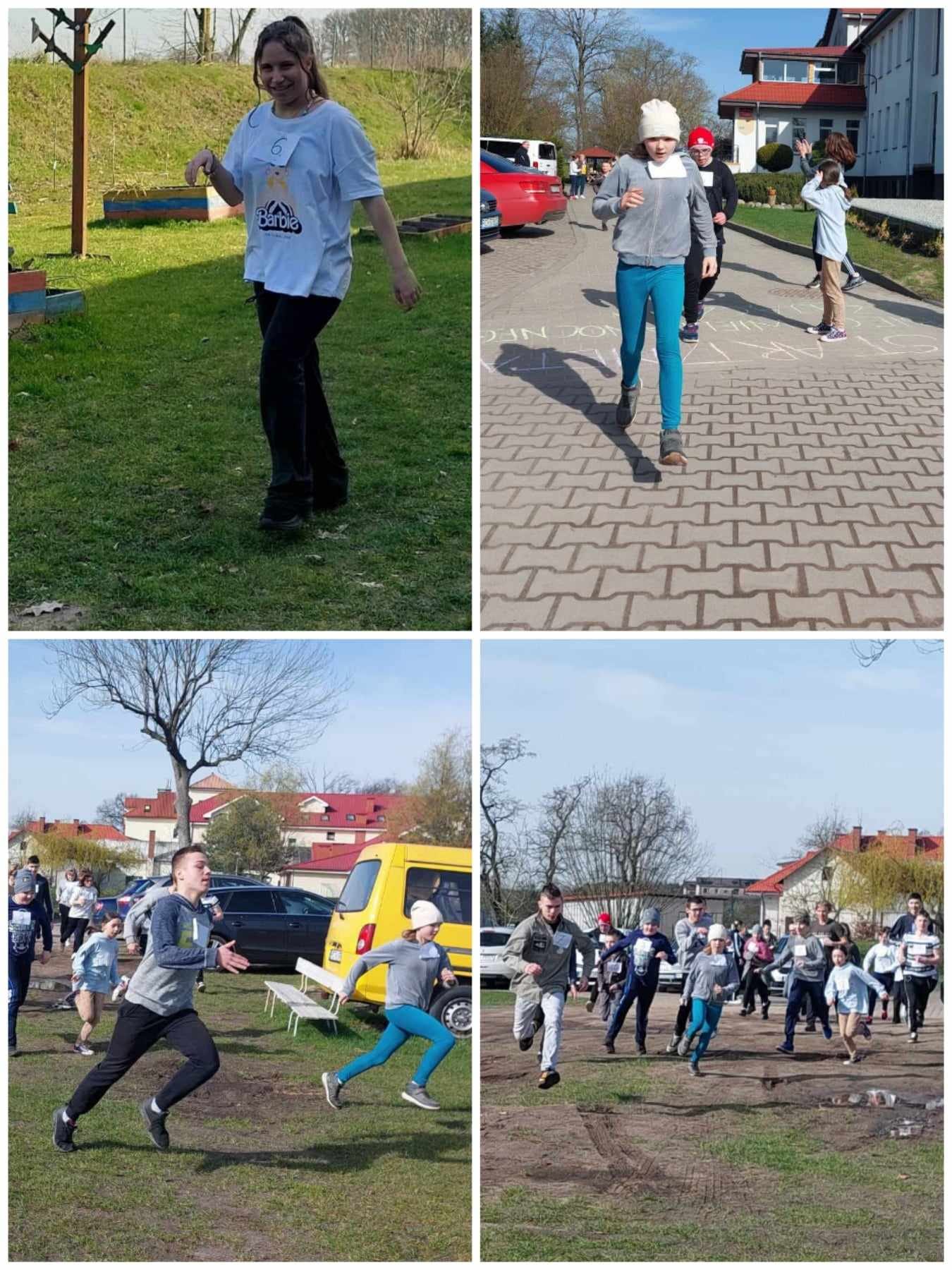 Dzisiaj w ramach promocji zdrowia odbył się Bieg Zajączka Wielkanocnego. Zadaniem biegaczy było pokonanie jak największej ilości pętli wokół szkoły w czasie nie dłuższym niż 30 minut. Długość jednej pętli wynosiła 200m. Po krótkiej, wspólnej rozgrzewce oraz przymocowaniu numerów startowych nastąpił start biegu. Pogoda biegaczom dopisywała, a cała społeczność szkolna głośno kibicowała. Najdłużej spośród dziewczynek zajączka goniła Patrycja Dembińska, która pokonała 15 pętli. Drugie miejsce zajęła Anna Starosta- 14 okrążeń, a trzecie: Karolina Graś, która szkołę okrążyła aż 14 razy ale w czasie ciut krótszym niż Ania. Zwycięzcą wśród chłopców został Dawid Wleklak, który przebiegł 17 pętli, tuż za nim uplasował się Kacper Boliński- 16 pętli, a trzecie miejsce wybiegał pokonawszy 15 pętli -Piotr Nowak. Na mecie na wszystkich uczestników czekała pyszna herbatka oraz słodki poczęstunek. Natomiast zwycięzcy zostali uhonorowani medalami, dyplomami i skromnymi niespodziankami. Wszystkim biegaczom serdecznie gratulujemy !