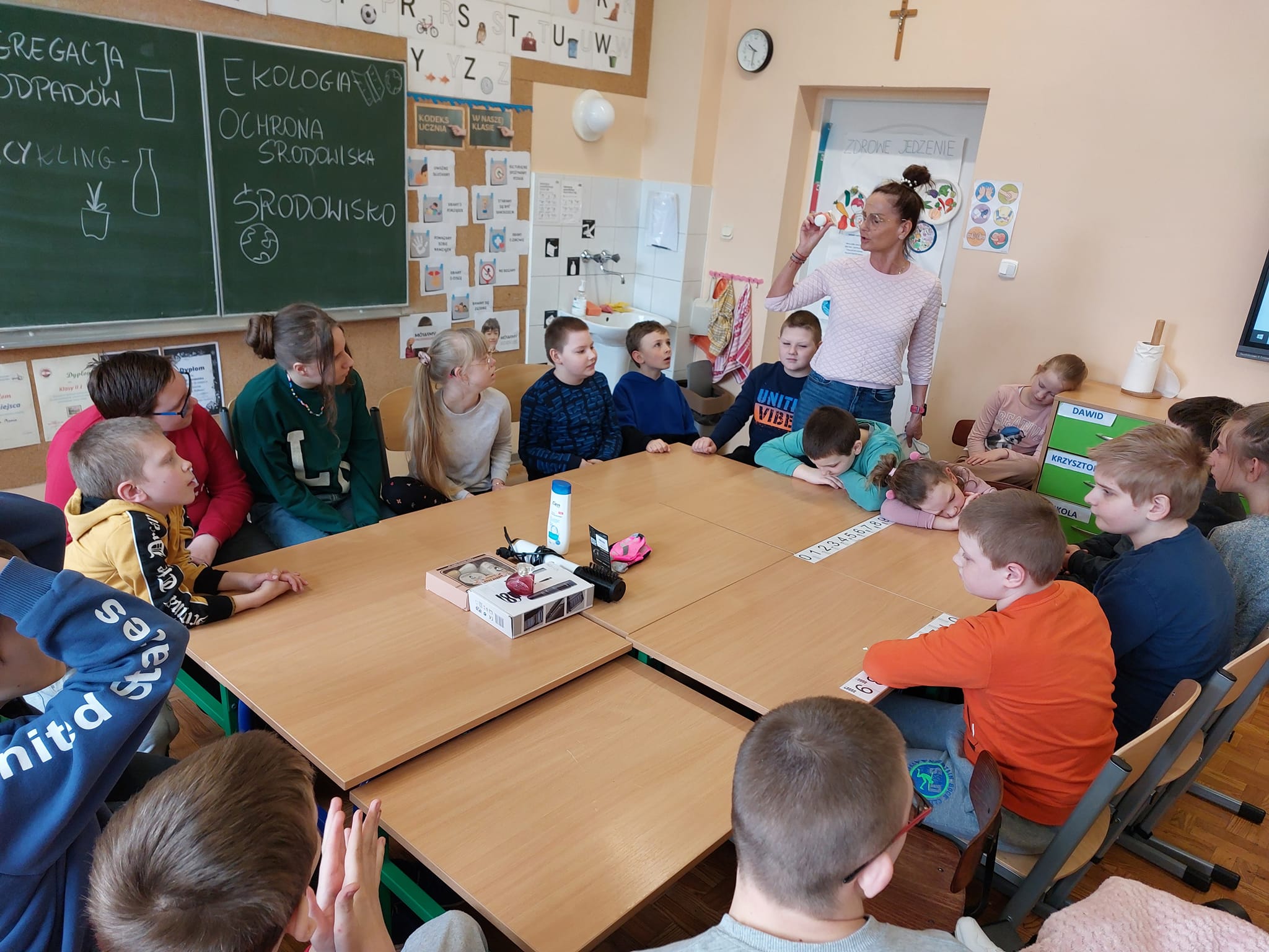 A w świetlicy szkolnej uczniowie dowiedzieli się jakie znaczenie ma woda dla organizmu człowieka i przyrody.