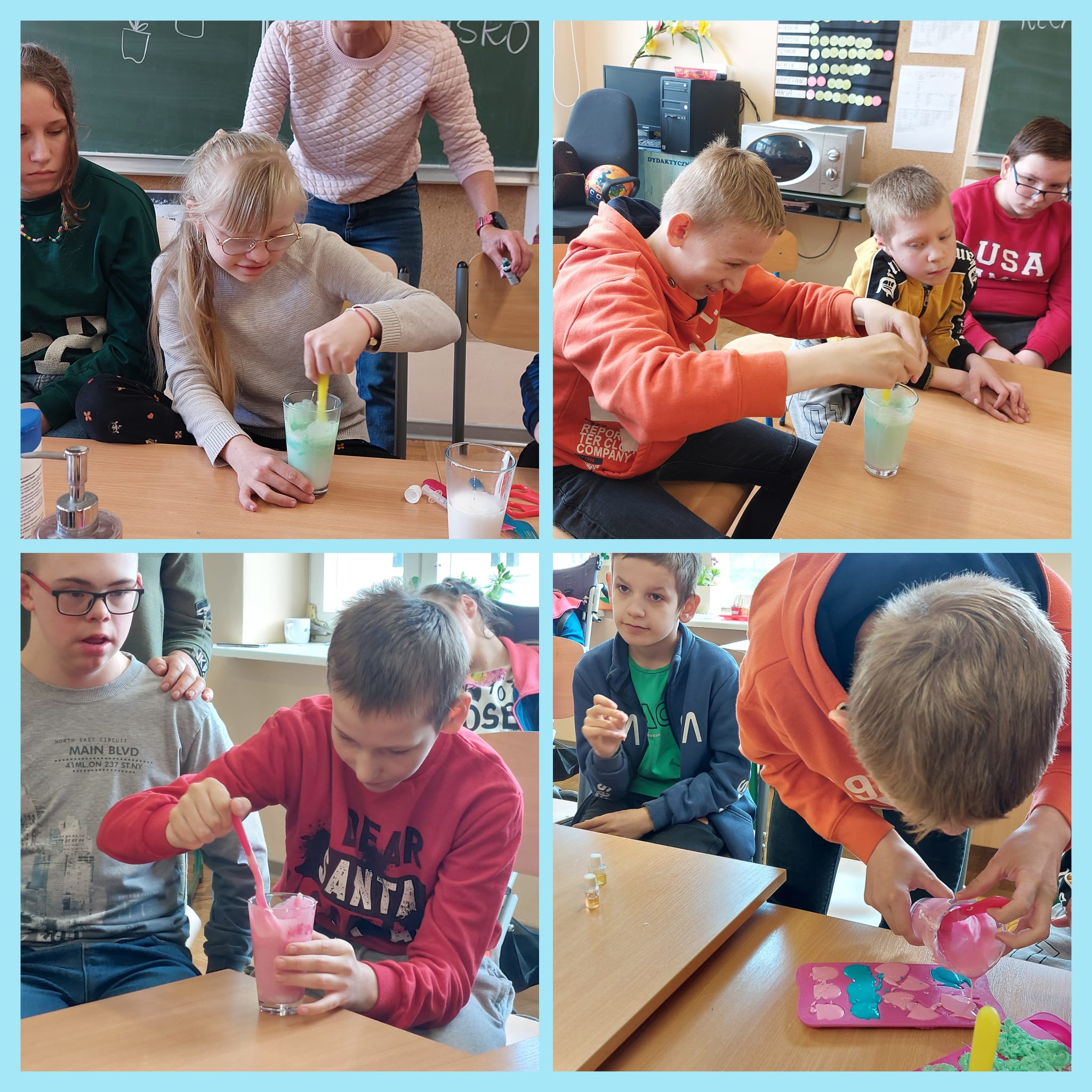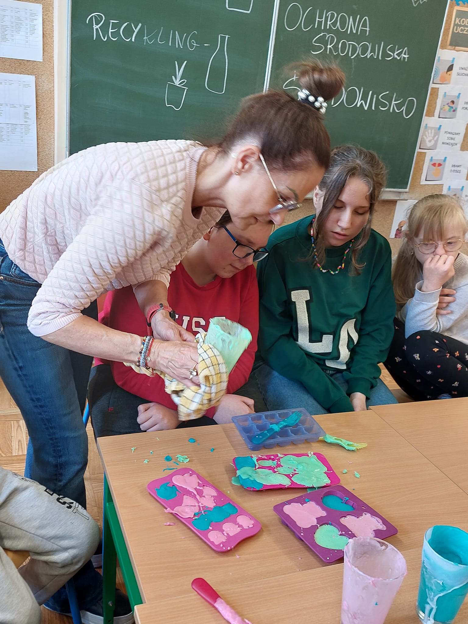 W drugim oddziale higienicznym pracowały maluchy pod kierunkiem pani Ani Glazer. Tutaj nie było smacznie lecz pachnąco, gdyż produkowaliśmy mydełka zapachowe.