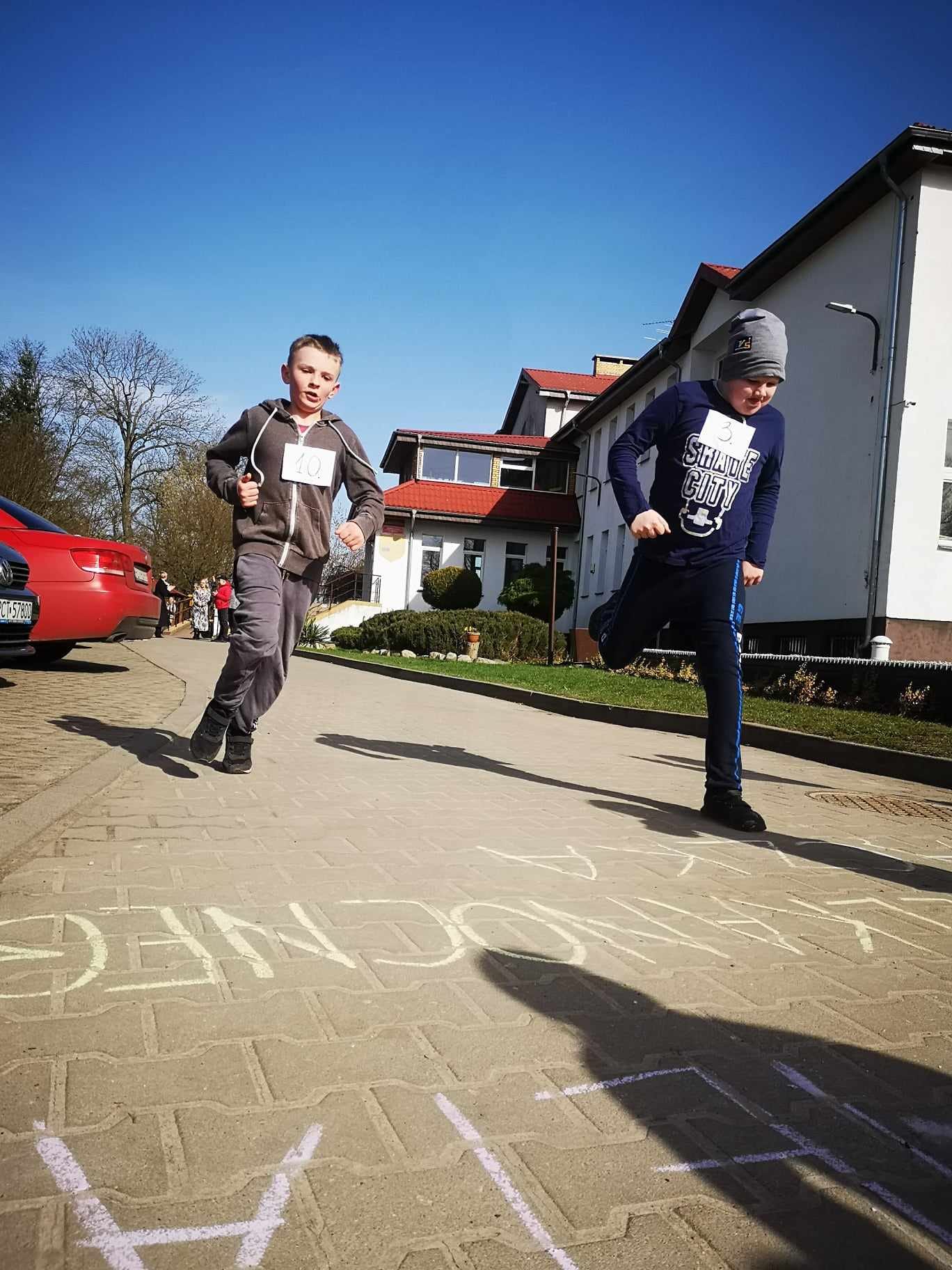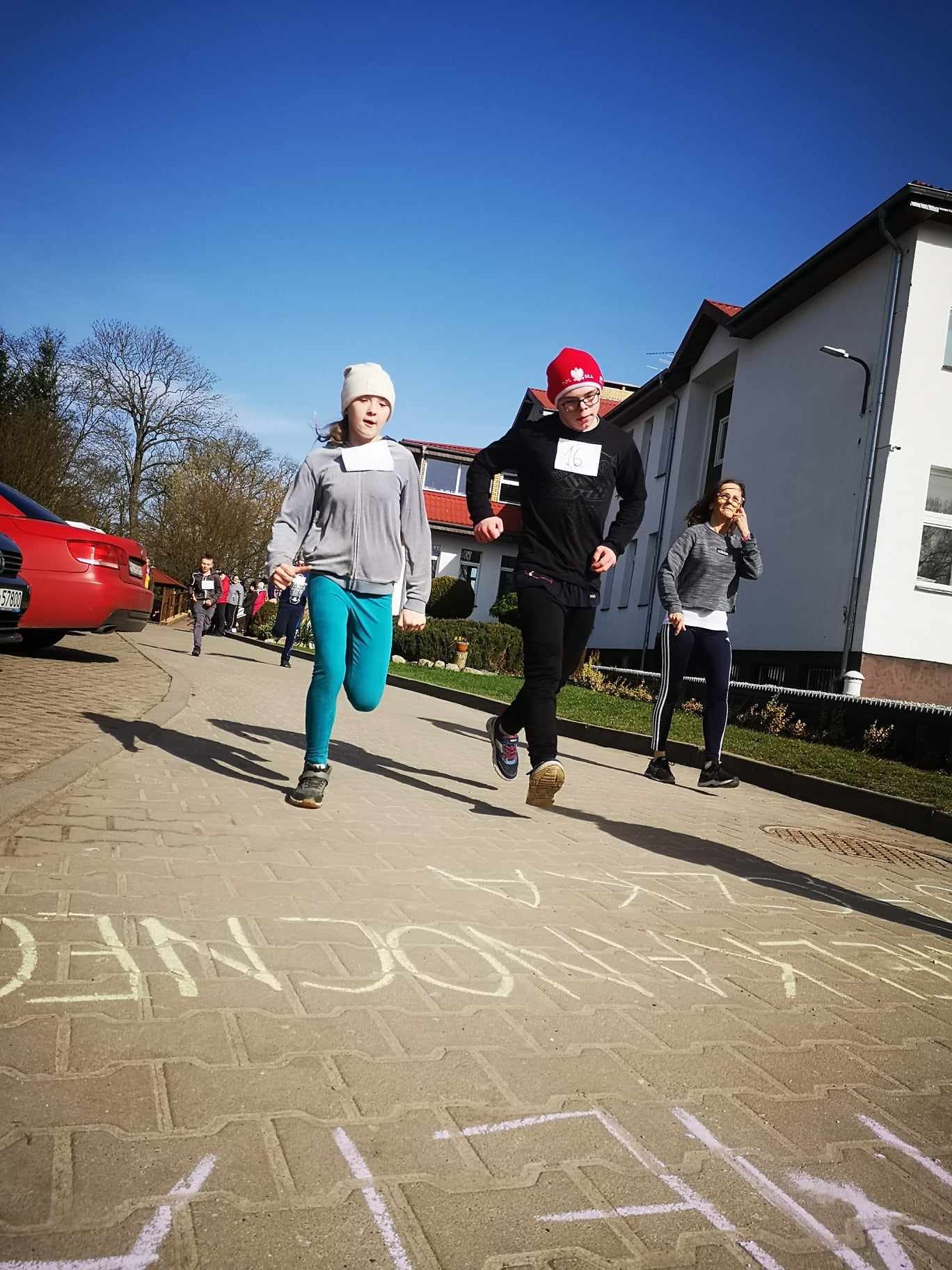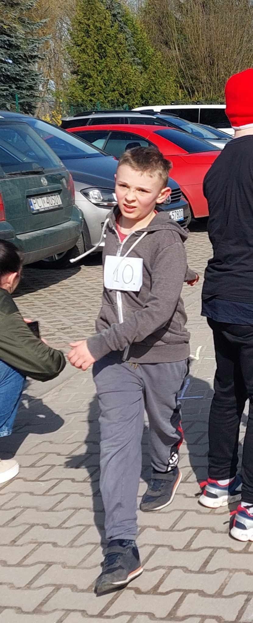 Zadaniem biegaczy było pokonanie jak ilość przekraczająca wszystkie szkoły w czasie nie przekraczającym 20 minut. Po krótkim, wspólnym rozgrzewce oraz podłączonym numerów startowych, który może uruchomić bieg. Wiosenna pogoda wszystkim dodawała skrzydło, a cała społeczność szkolna głośno kibicowała biegaczom. Najdłużej należące do dziewczynek zajączka goniła Patrycja, która była 8 główna. Drugie miejsce Julia - 7 okrążeń, a trzecia Marysia, która jest okrążyła także 7 razy, ale w czasie ciut wysyłam niż Julka. Zwycięzcą wśród członków został Patryk, zaraz za nim uplasował się Igor, a trzecie miejsce wybiegał Waldek. Wszyscy panowie pokonali 9 stopni, miejce na podium uplasowała przejście wbiegnięcia na metę. Po biegu na wszystkich uczestników, pyszna herbata oraz poczęstunek. Zwycięzcy otrzymali uhonorowani medalami, dyplomami i prostymi niespodziankami. uruchamiamy serdecznie gratulujemy!!!