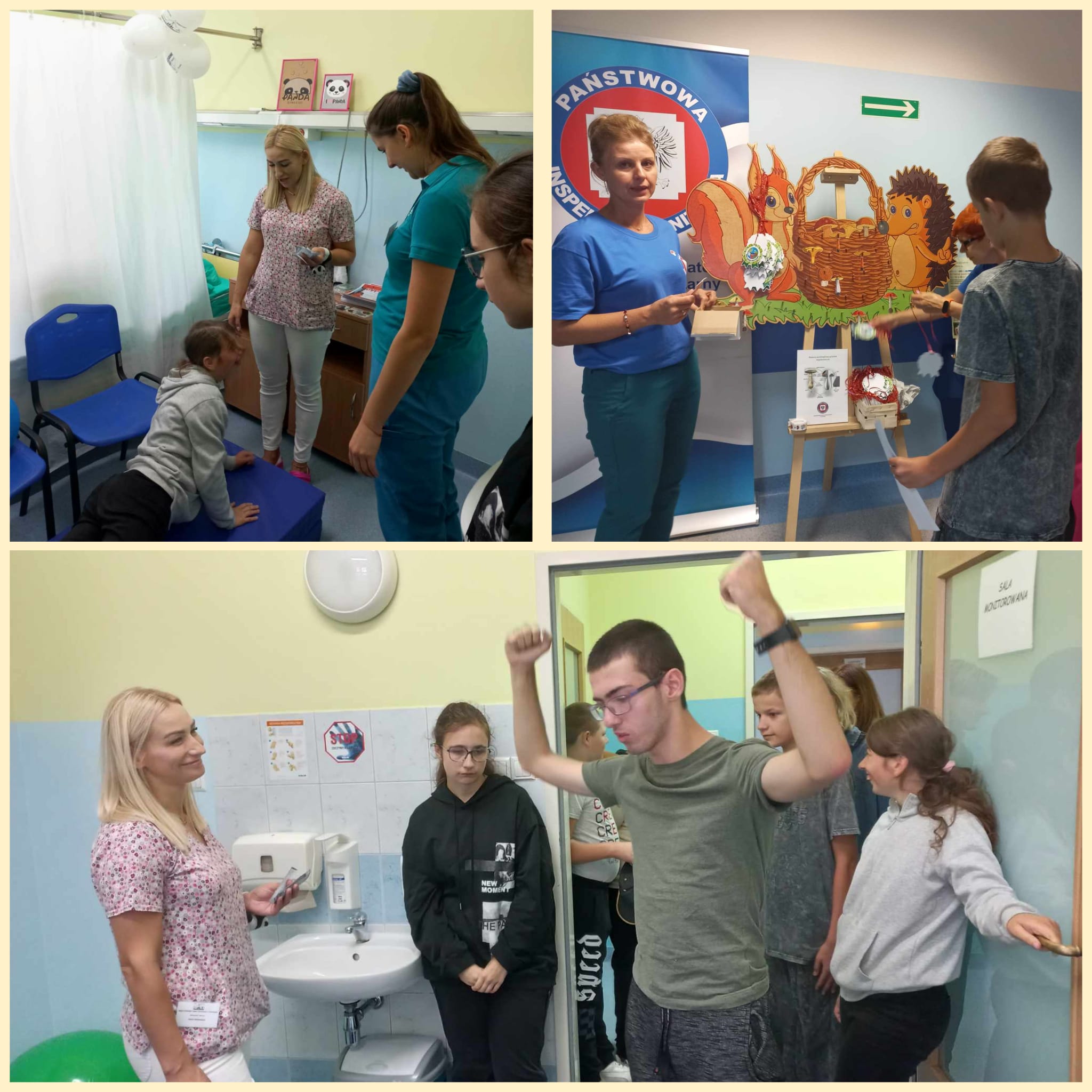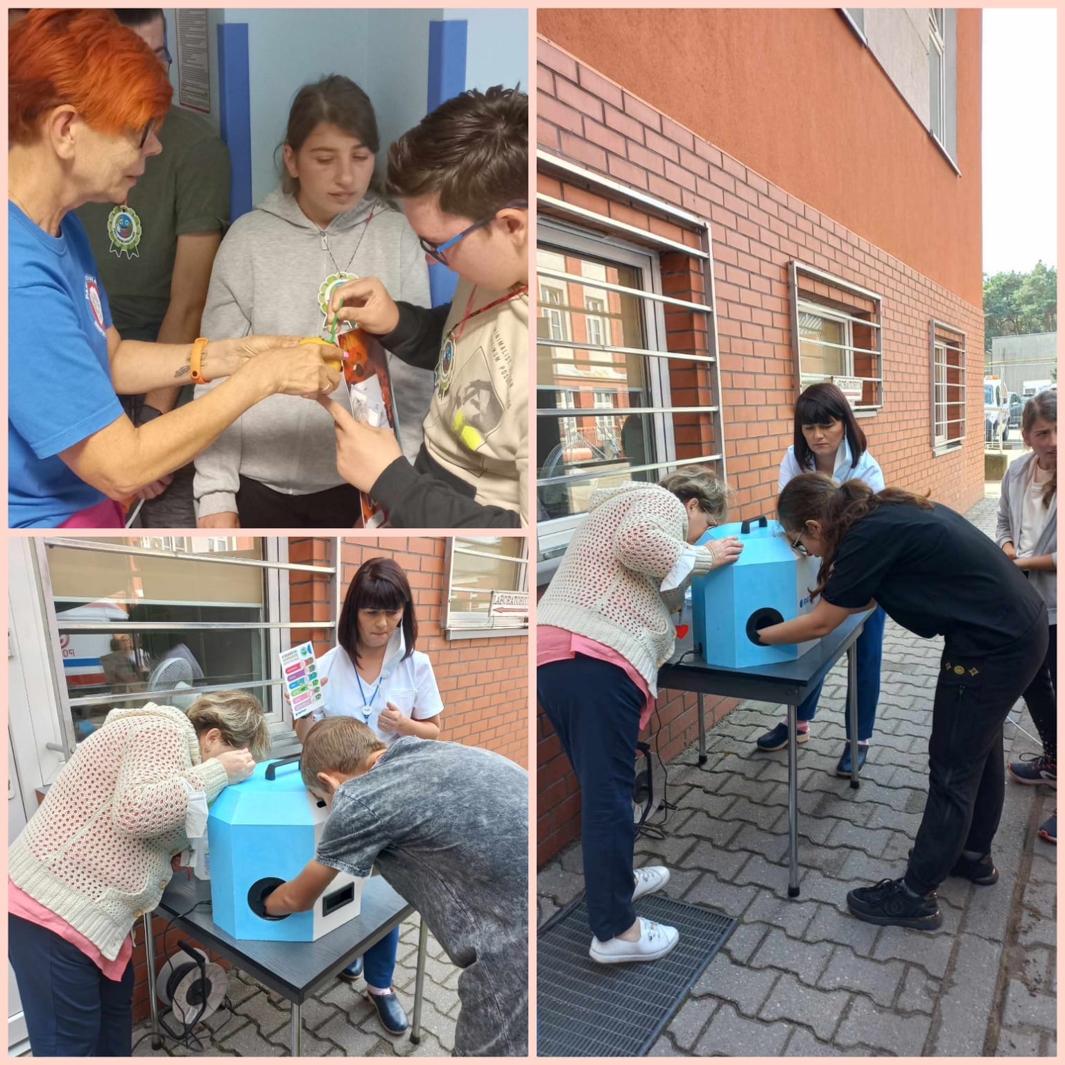 Uczniowie naszej Kornelówki wzięli udział w akcji pt. "ZBADAJ SIĘ - ŻYCIE MASZ JEDNO" zorganizowanej przez ZZOZ w Czarnkowie. Dla uczniów przygotowano bezpłatny pomiar czynności życiowych, masy ciała i wzrostu oraz konsultacje fizjoterapeuty. Panie z PISE w Czarnkowie przeprowadziły zajęcia edukacyjne pt. "Bezpieczna jesień w lesie", gdzie uczniowie rozpoznawali gatunki grzybów oraz nauczyli się jak bezpiecznie wyjąć kleszcza. Następnie dowiedzieli się jak prawidłowo myć ręce, zapoznali się z obsługą gaśnicy oraz wyposażeniem karetki. Na zakończenie otrzymali upominki i dyplomy. Dziękujemy serdecznie za możliwość uczestniczenia w tej akcji.
