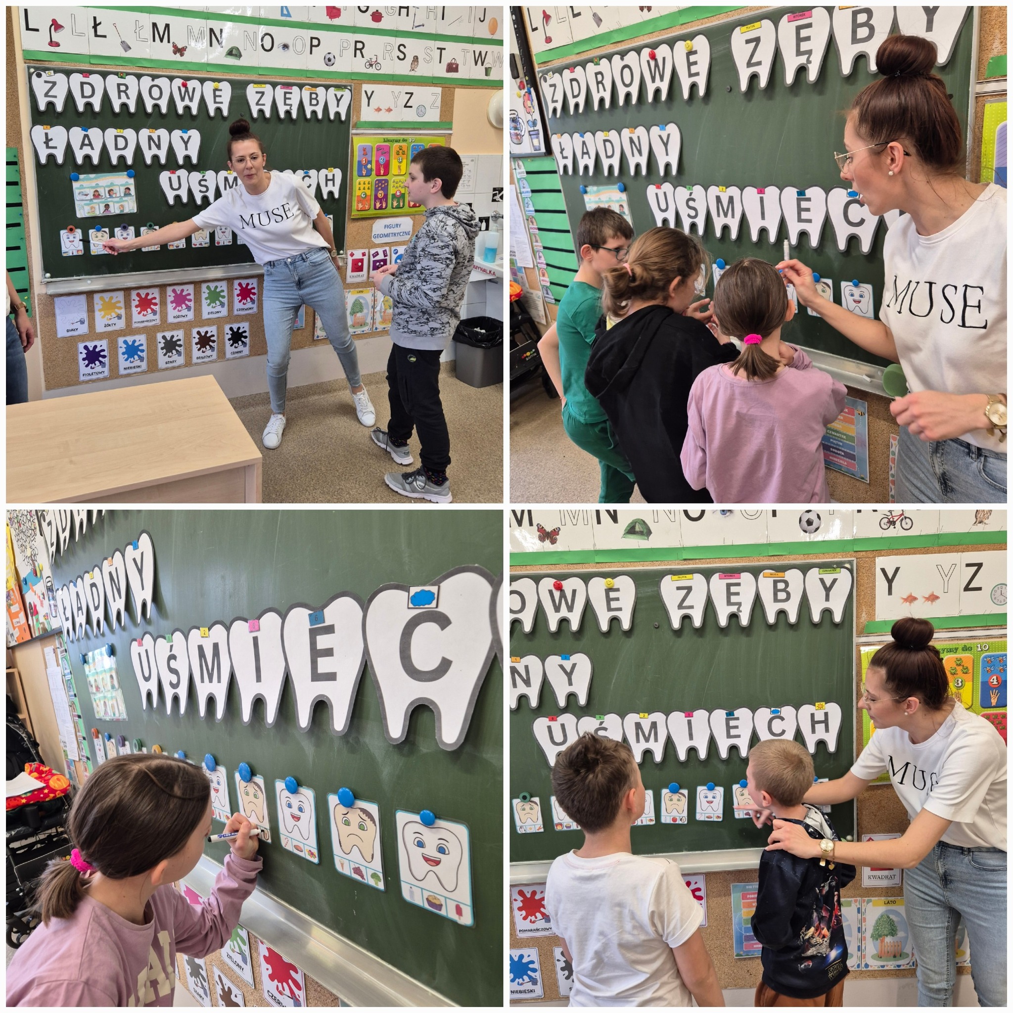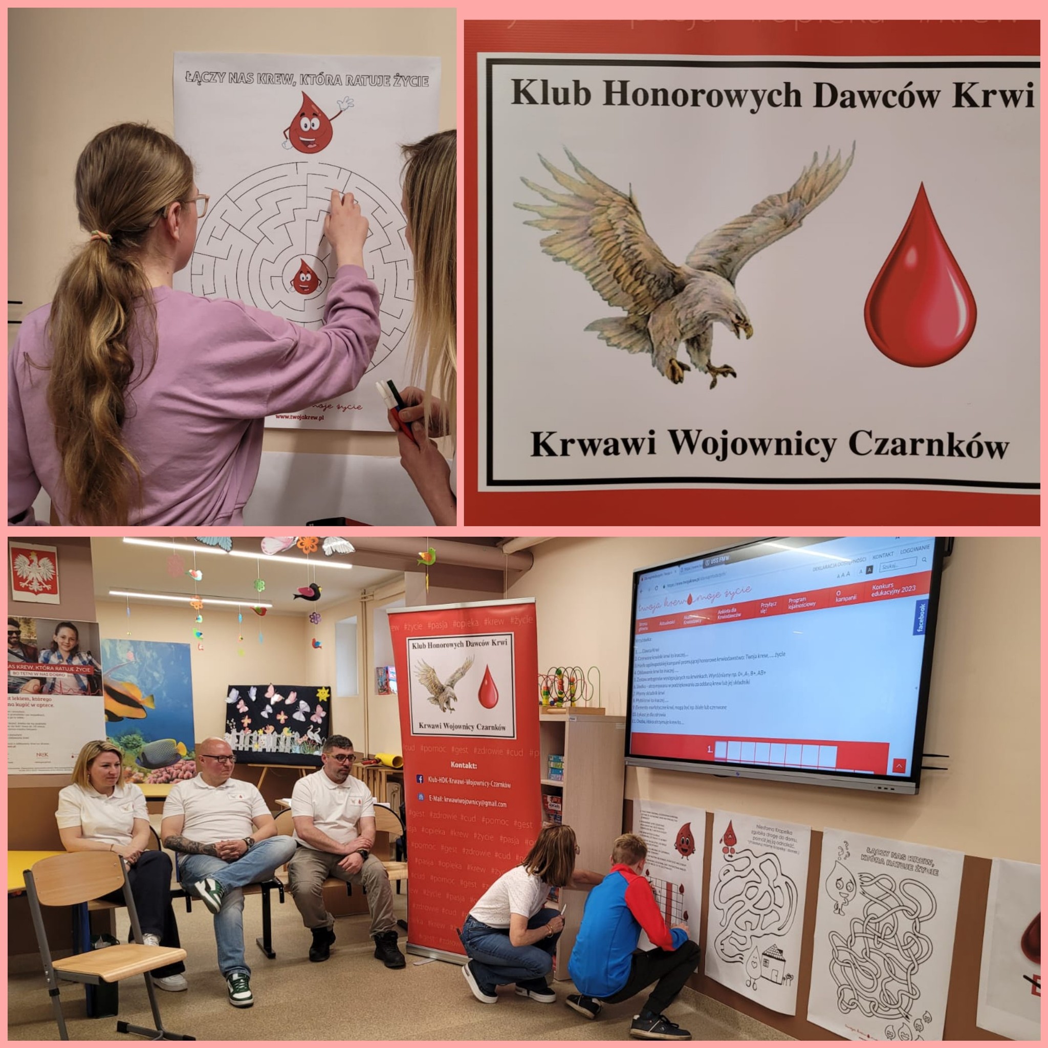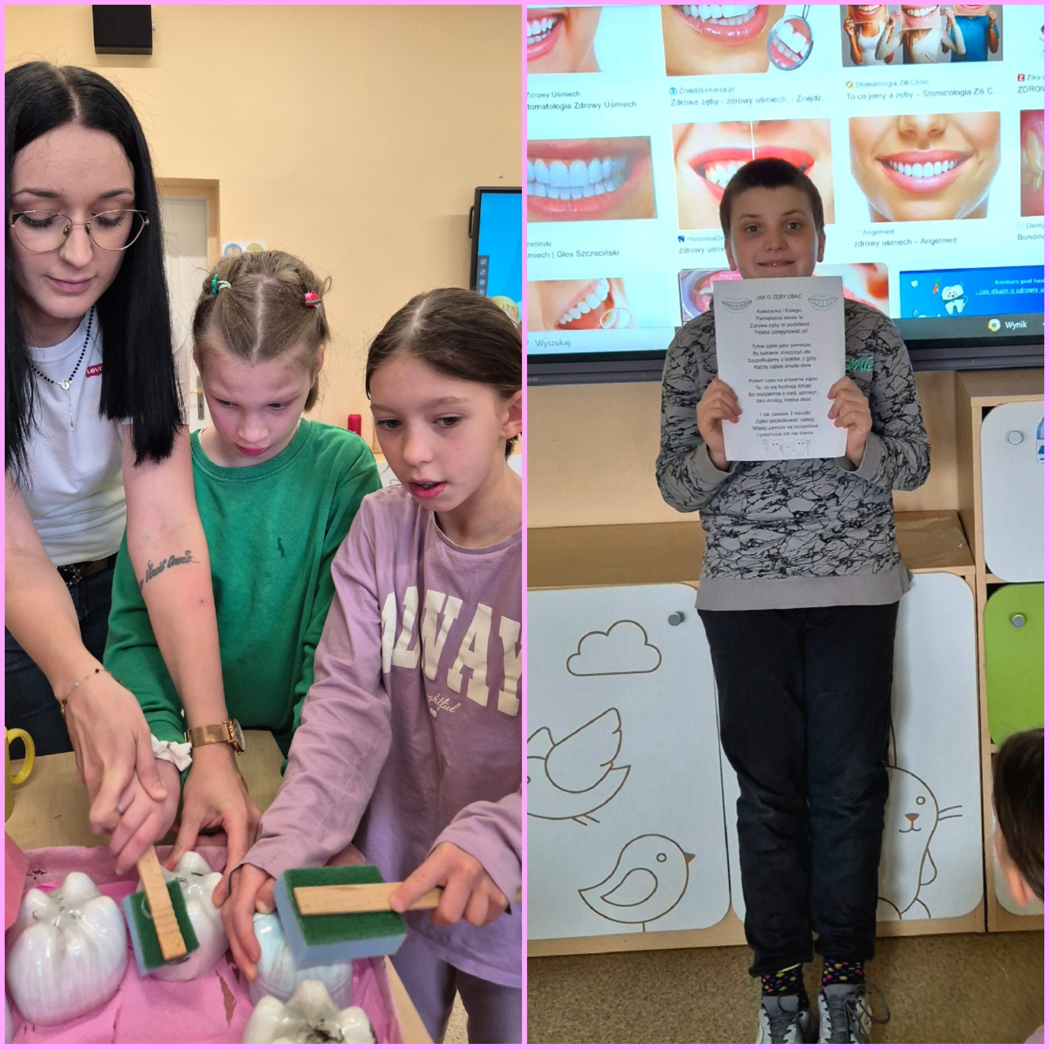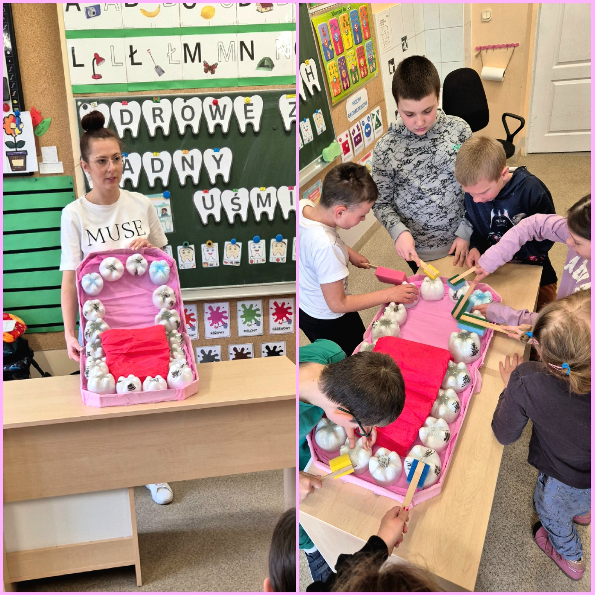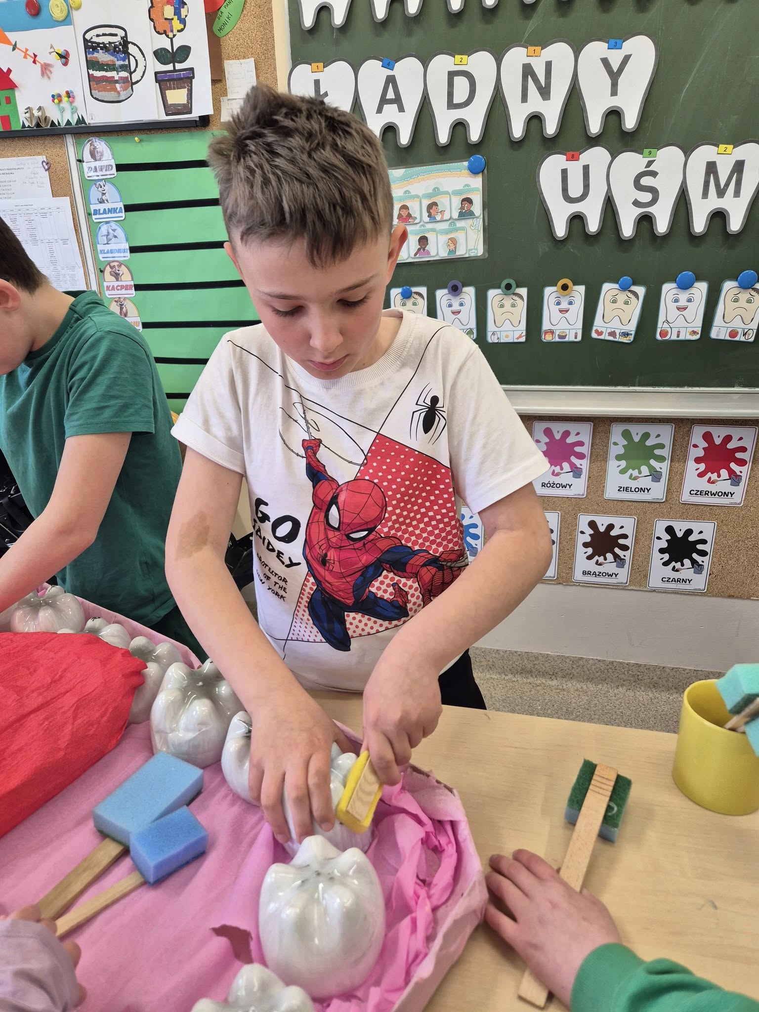 ,,Przez sztukę do zdrowia" pod takim hasłem przebiegał dzisiaj Dzień Zdrowia. Uświetnili go znamienici goście: artyści malarze Pan Bogusław Doba wraz z Panią Sue Lee - artystką z Korei, którzy prowadzili zajęcia w oddziale: "Barwy życia w naszych rękach". Dodatkową atrakcją dla naszych uczniów był ludowy strój koreański w jaki byli ubrani goście oraz możliwość malowania na koreańskich wachlarzach. Podczas zajęć w oddziale: "Kropla krwi ratuje życie" dominował oczywiście kolor czerwony. Tutaj gościli Przedstawiciele Klub HDK Krwawi Wojownicy Czarnków i opowiedzieli dlaczego krew jest bardzo ważna i kto może zostać honorowym dawcą krwi. Po dawce ciekawych informacji dostarczonych przez p. Agnieszkę i obejrzeniu krótkiej prezentacji na tablicy multimedialnej uczniowie rozwiązywali krzyżówki i rebusy z kroplą krwi w tle. Końcowym efektem tego spotkania było wykonanie w czterech grupach plakatów o tematyce krwiodawstwa i jego znaczenia. Wszyscy uczestnicy otrzymali od naszych gości odznaki Klubu Honorowego Dawcy Krwi „Krwawi Wojownicy” Na kolejnym oddziale odbyły się zajęcia pod hasłem „Zdrowe zęby, ładny uśmiech”. Przygotowano ciekawe zadania oraz omówione zostały zasady dbania o higienę jamy ustnej i zębów. Dzieci dowiedziały się, jak prawidłowo szczotkować zęby oraz jakich produktów warto unikać, a które są korzystne dla zębów. Wszystko po to, by każdy mógł cieszyć się pięknym i zdrowym uśmiechem. Serdecznie dziękujemy naszym gościom za uświetnienie obchodów Dnia Zdrowia oraz poświęcony czas i przekazanie wiedzy naszym uczniom.