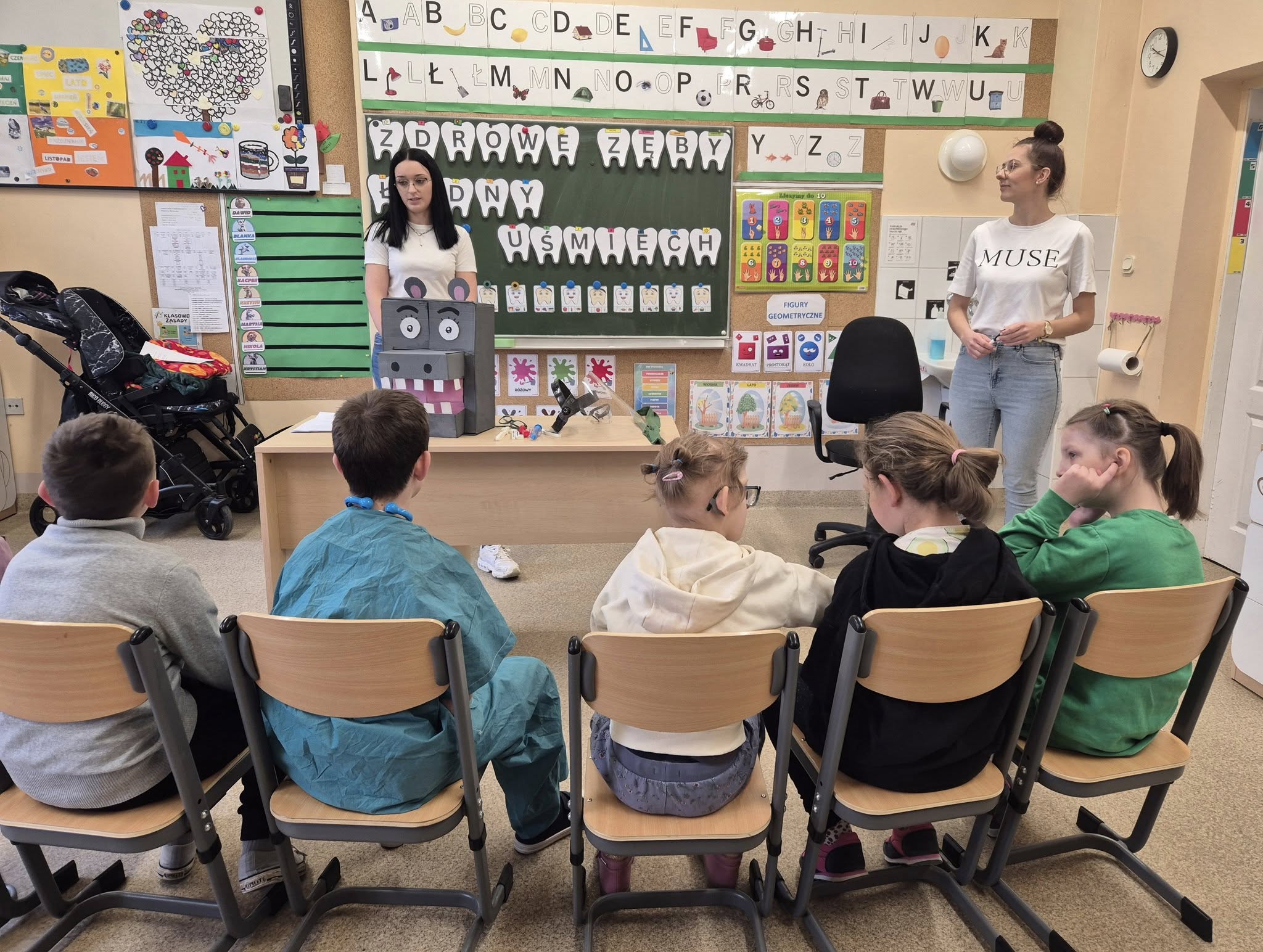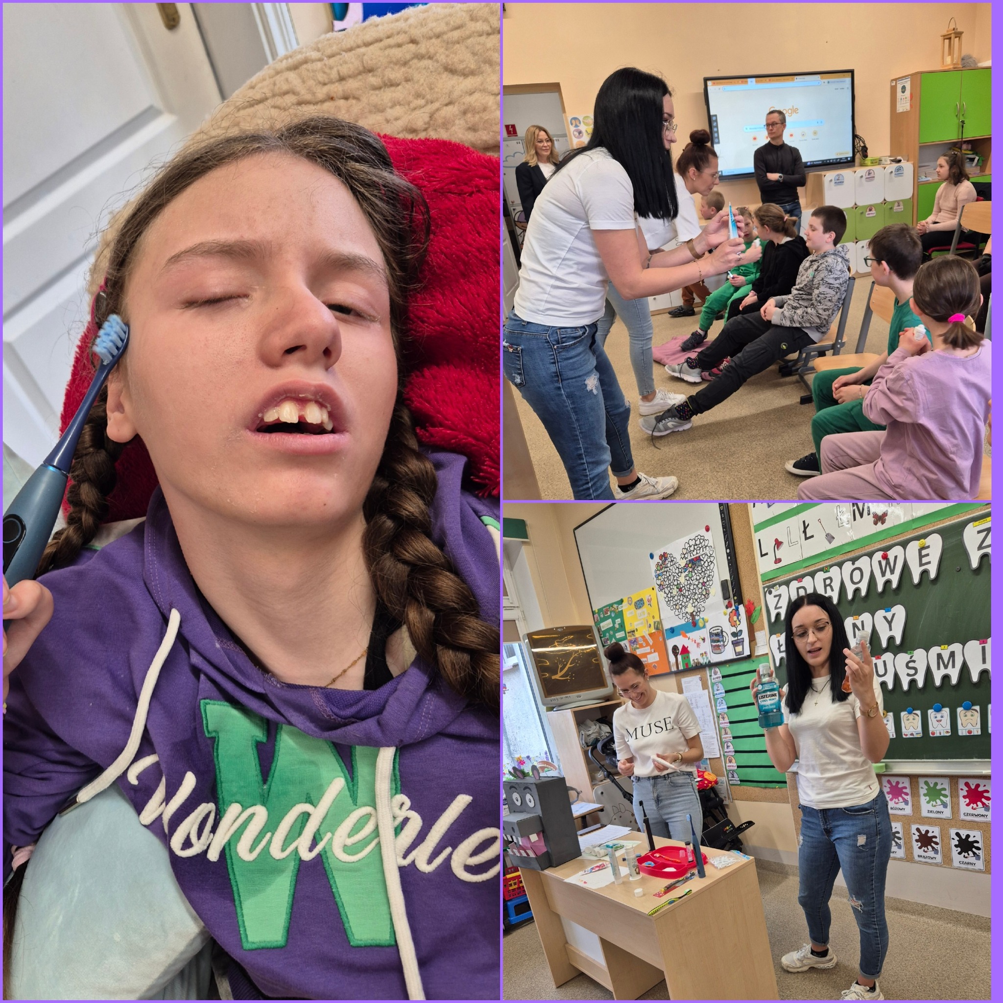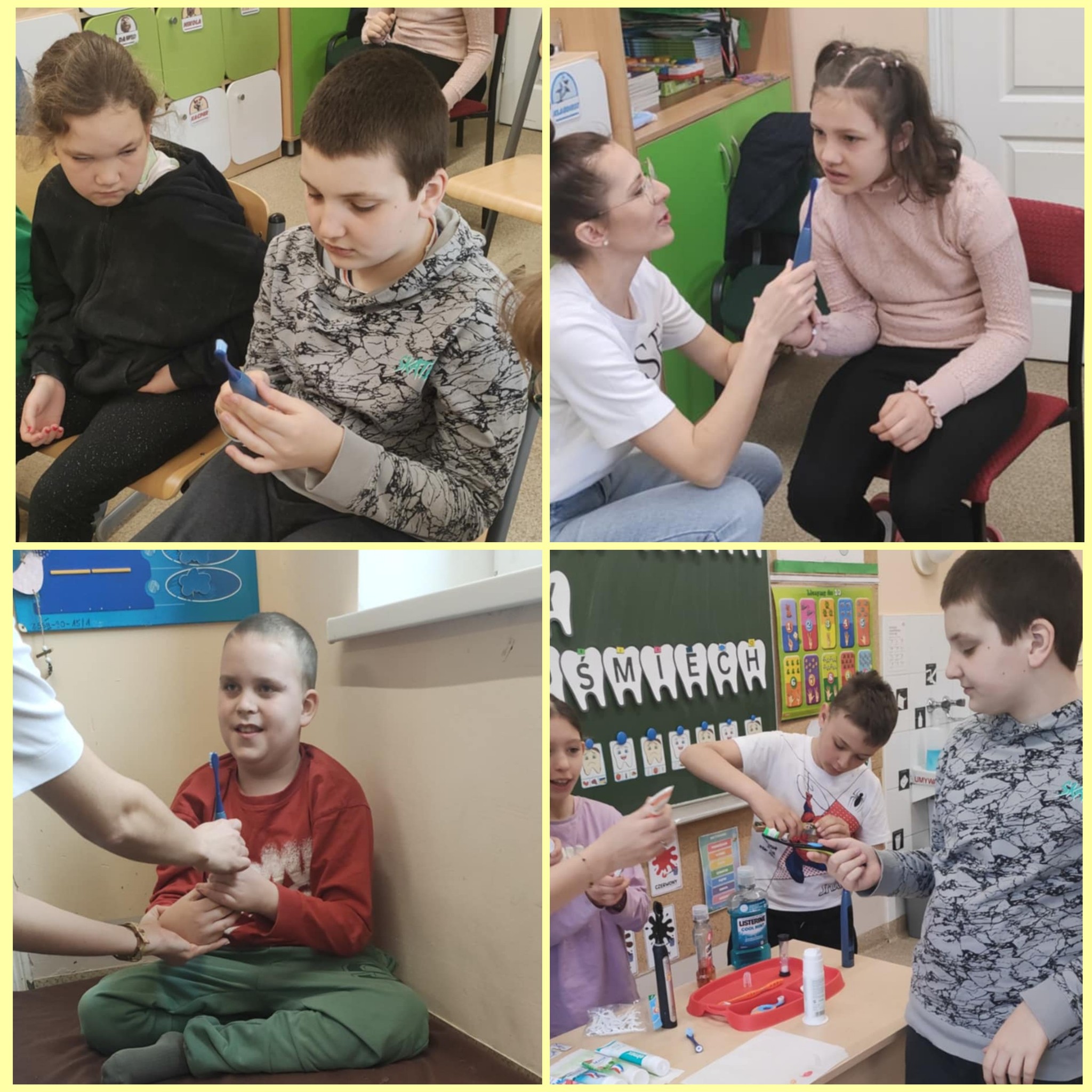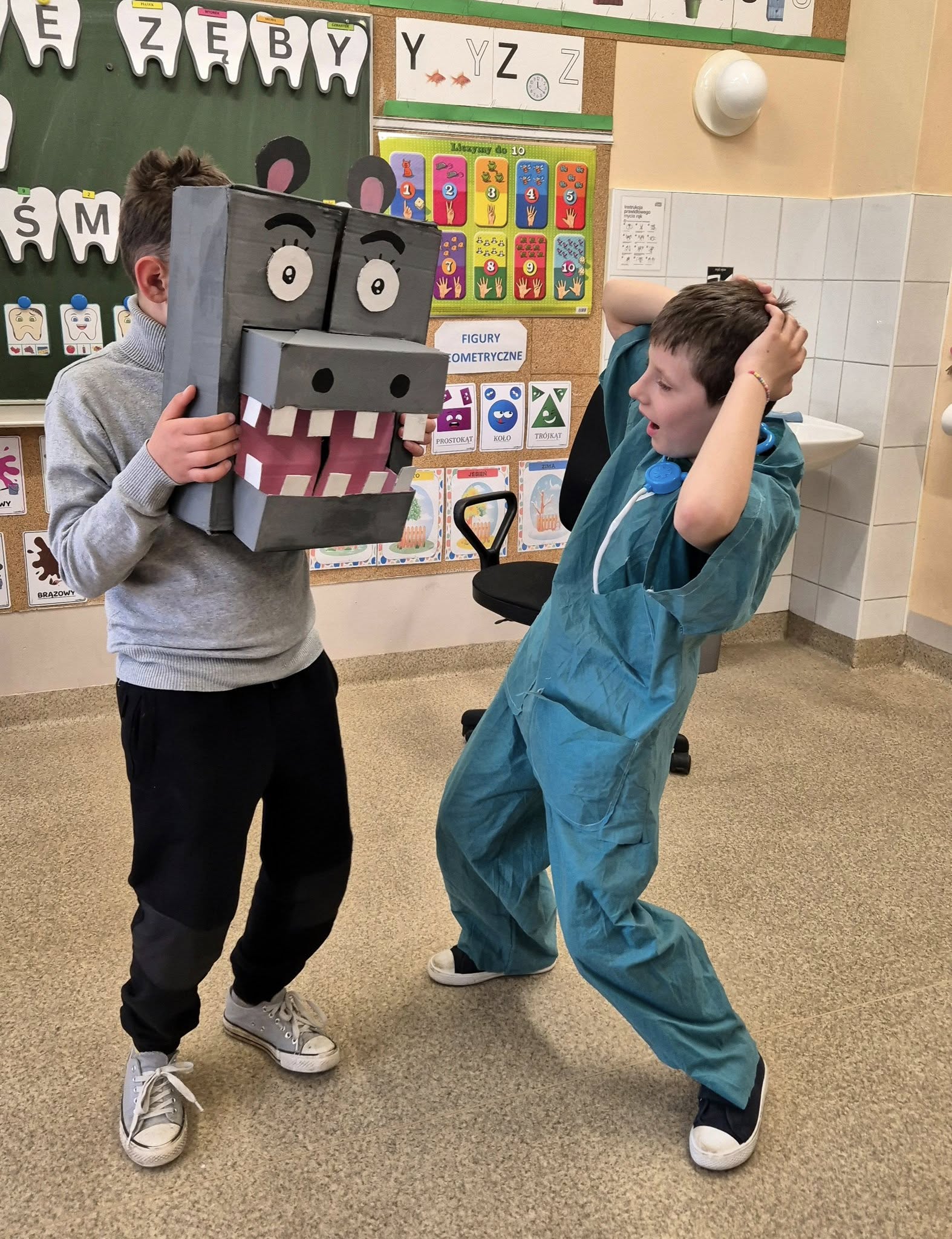 ,,Przez sztukę do zdrowia" pod takim hasłem przebiegał dzisiaj Dzień Zdrowia. Uświetnili go znamienici goście: artyści malarze Pan Bogusław Doba wraz z Panią Sue Lee - artystką z Korei, którzy prowadzili zajęcia w oddziale: "Barwy życia w naszych rękach". Dodatkową atrakcją dla naszych uczniów był ludowy strój koreański w jaki byli ubrani goście oraz możliwość malowania na koreańskich wachlarzach. Podczas zajęć w oddziale: "Kropla krwi ratuje życie" dominował oczywiście kolor czerwony. Tutaj gościli Przedstawiciele Klub HDK Krwawi Wojownicy Czarnków i opowiedzieli dlaczego krew jest bardzo ważna i kto może zostać honorowym dawcą krwi. Po dawce ciekawych informacji dostarczonych przez p. Agnieszkę i obejrzeniu krótkiej prezentacji na tablicy multimedialnej uczniowie rozwiązywali krzyżówki i rebusy z kroplą krwi w tle. Końcowym efektem tego spotkania było wykonanie w czterech grupach plakatów o tematyce krwiodawstwa i jego znaczenia. Wszyscy uczestnicy otrzymali od naszych gości odznaki Klubu Honorowego Dawcy Krwi „Krwawi Wojownicy” Na kolejnym oddziale odbyły się zajęcia pod hasłem „Zdrowe zęby, ładny uśmiech”. Przygotowano ciekawe zadania oraz omówione zostały zasady dbania o higienę jamy ustnej i zębów. Dzieci dowiedziały się, jak prawidłowo szczotkować zęby oraz jakich produktów warto unikać, a które są korzystne dla zębów. Wszystko po to, by każdy mógł cieszyć się pięknym i zdrowym uśmiechem. Serdecznie dziękujemy naszym gościom za uświetnienie obchodów Dnia Zdrowia oraz poświęcony czas i przekazanie wiedzy naszym uczniom.