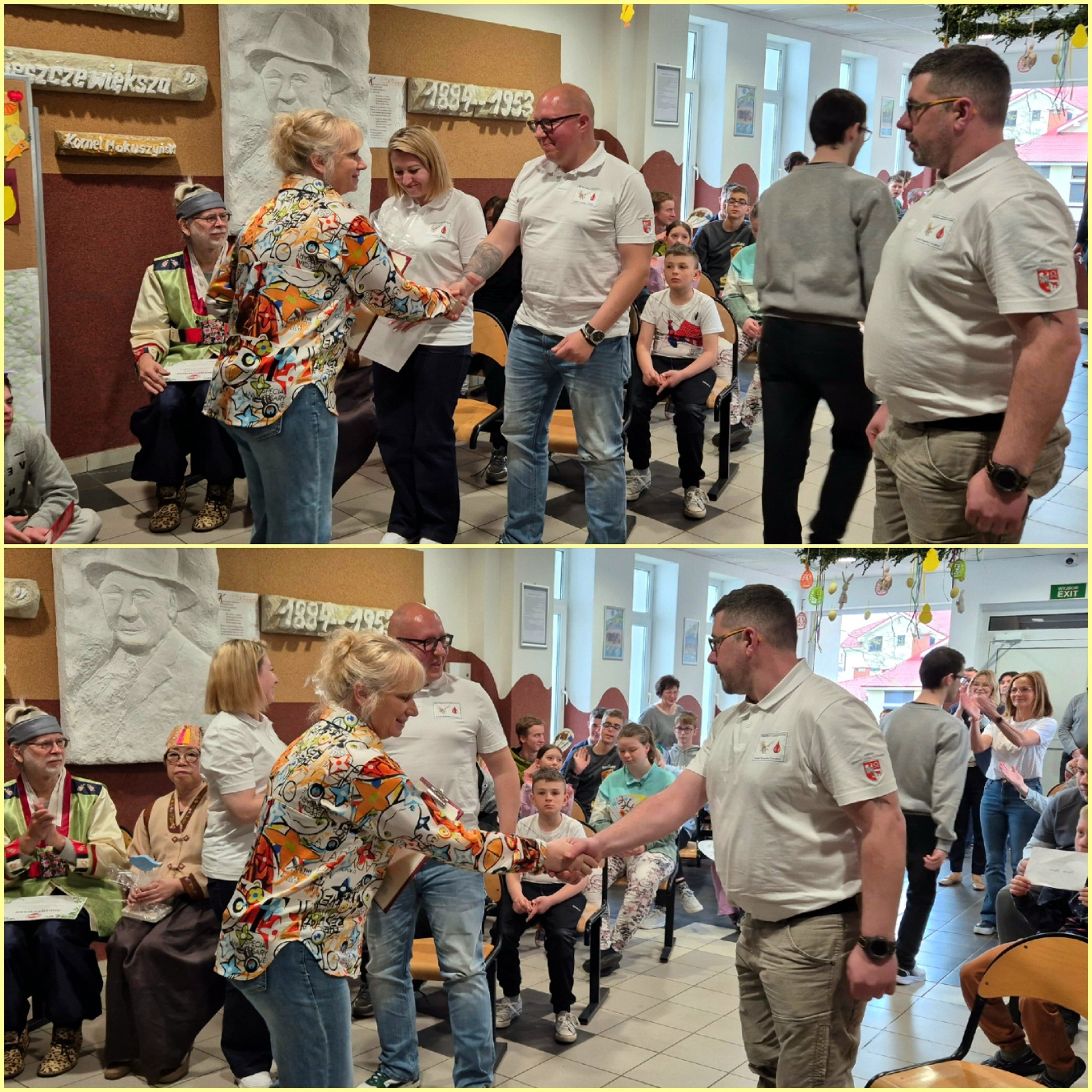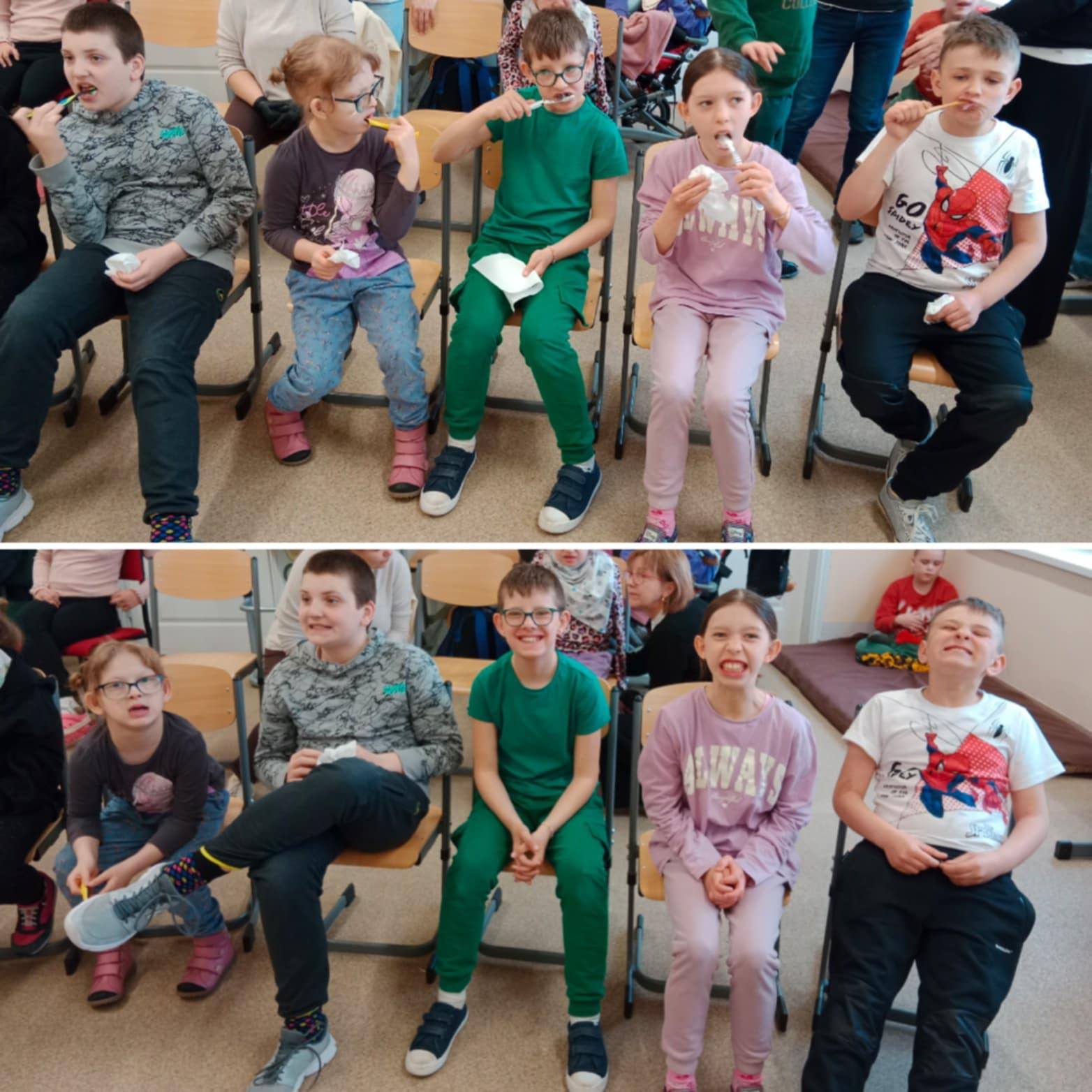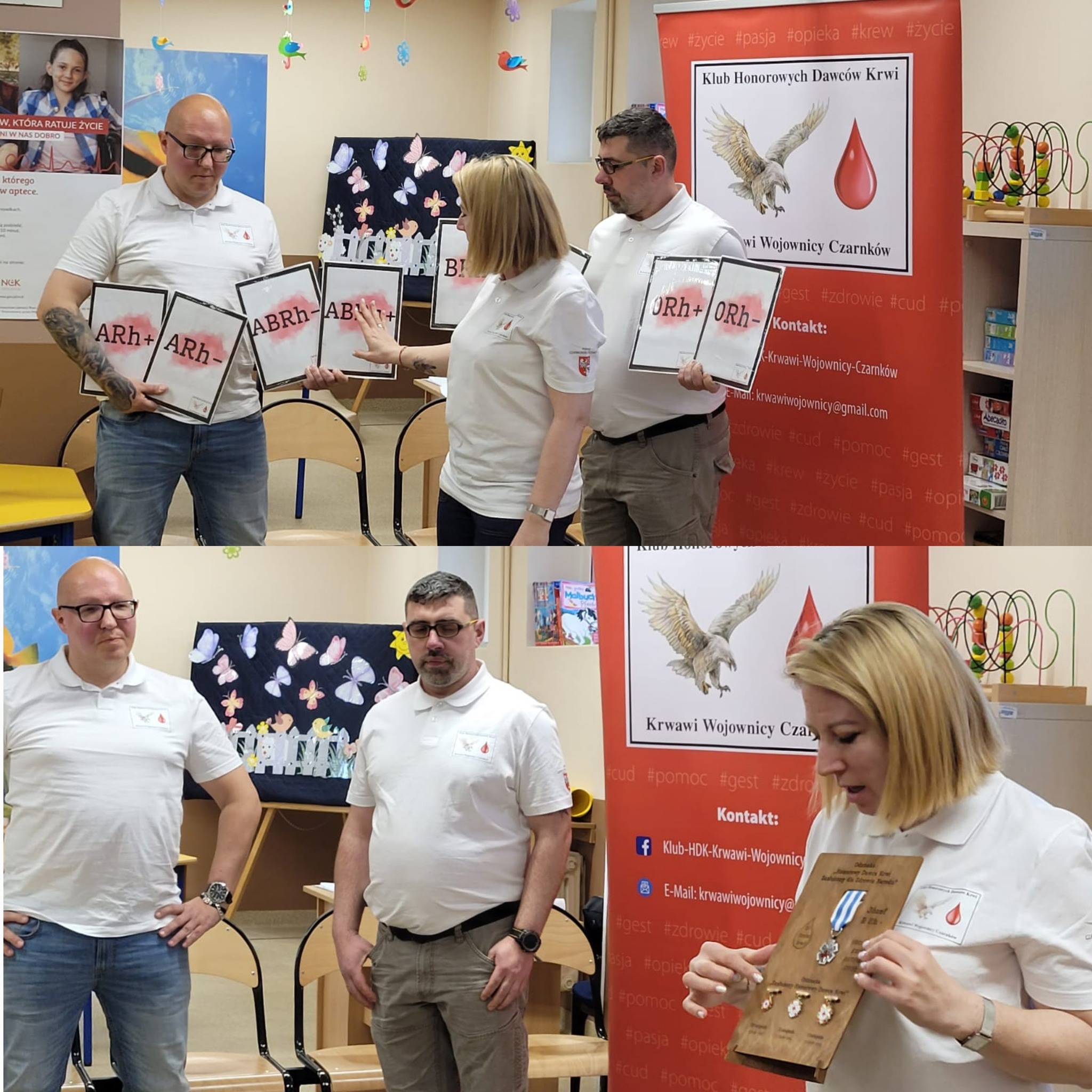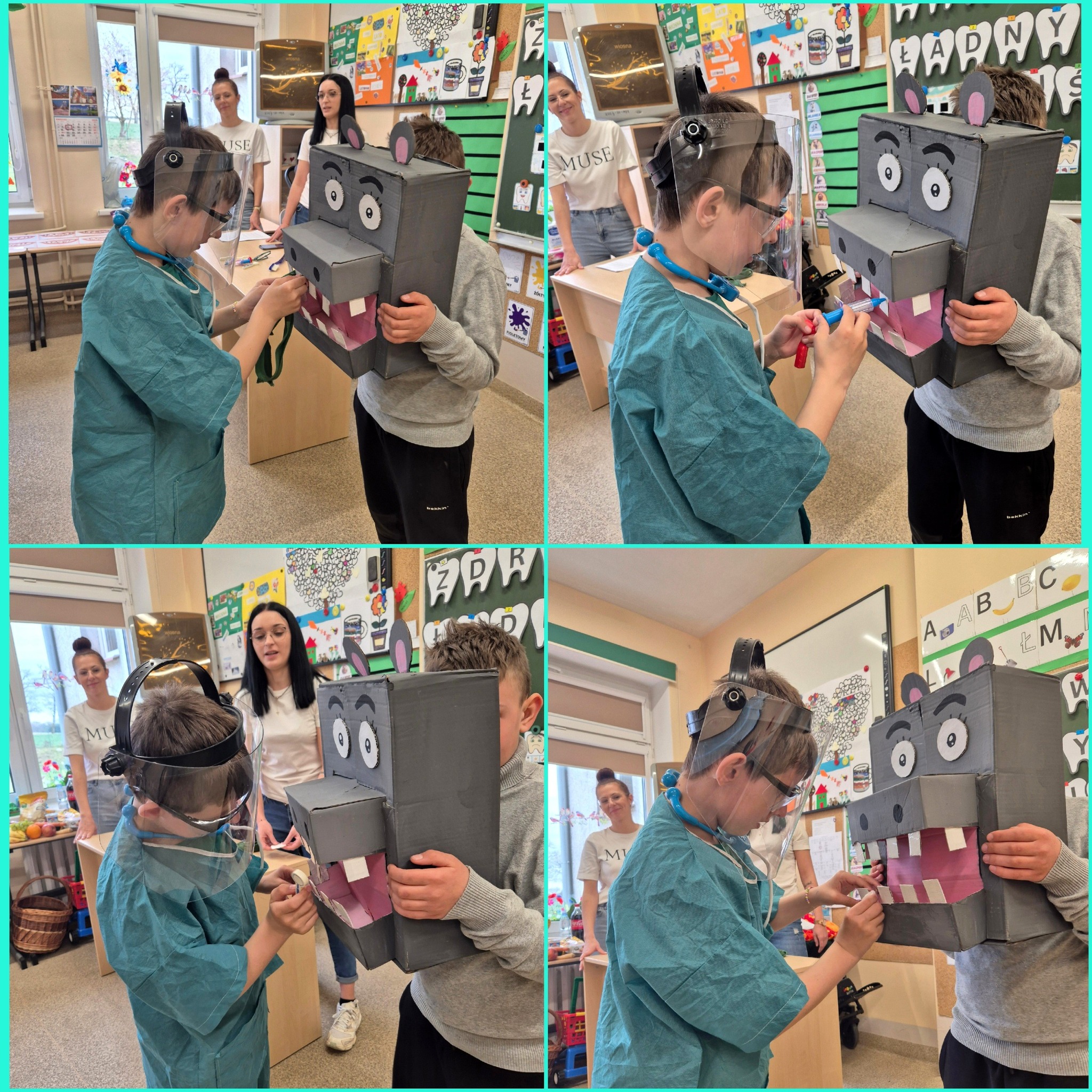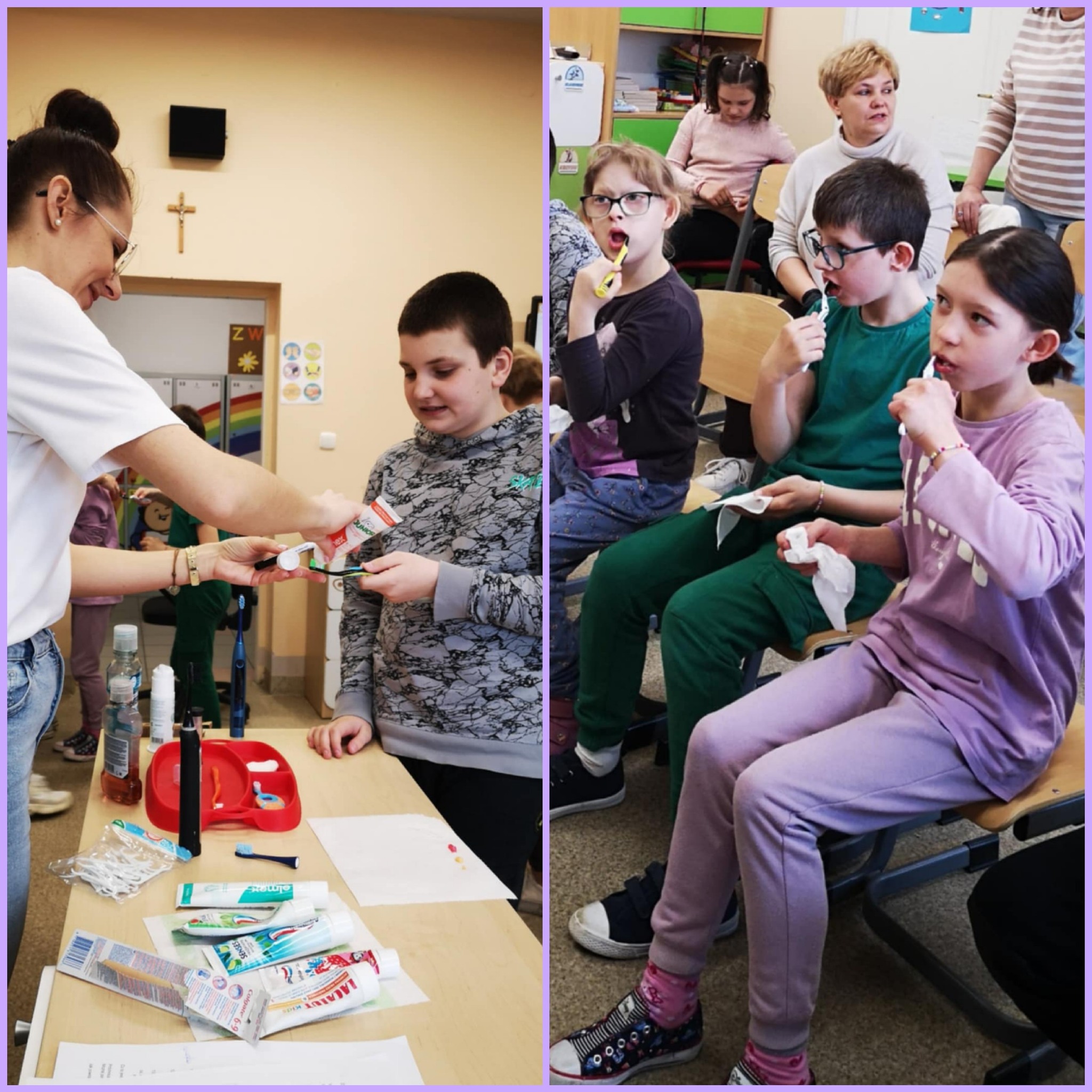 ,,Przez sztukę do zdrowia" pod takim hasłem przebiegał dzisiaj Dzień Zdrowia. Uświetnili go znamienici goście: artyści malarze Pan Bogusław Doba wraz z Panią Sue Lee - artystką z Korei, którzy prowadzili zajęcia w oddziale: "Barwy życia w naszych rękach". Dodatkową atrakcją dla naszych uczniów był ludowy strój koreański w jaki byli ubrani goście oraz możliwość malowania na koreańskich wachlarzach. Podczas zajęć w oddziale: "Kropla krwi ratuje życie" dominował oczywiście kolor czerwony. Tutaj gościli Przedstawiciele Klub HDK Krwawi Wojownicy Czarnków i opowiedzieli dlaczego krew jest bardzo ważna i kto może zostać honorowym dawcą krwi. Po dawce ciekawych informacji dostarczonych przez p. Agnieszkę i obejrzeniu krótkiej prezentacji na tablicy multimedialnej uczniowie rozwiązywali krzyżówki i rebusy z kroplą krwi w tle. Końcowym efektem tego spotkania było wykonanie w czterech grupach plakatów o tematyce krwiodawstwa i jego znaczenia. Wszyscy uczestnicy otrzymali od naszych gości odznaki Klubu Honorowego Dawcy Krwi „Krwawi Wojownicy” Na kolejnym oddziale odbyły się zajęcia pod hasłem „Zdrowe zęby, ładny uśmiech”. Przygotowano ciekawe zadania oraz omówione zostały zasady dbania o higienę jamy ustnej i zębów. Dzieci dowiedziały się, jak prawidłowo szczotkować zęby oraz jakich produktów warto unikać, a które są korzystne dla zębów. Wszystko po to, by każdy mógł cieszyć się pięknym i zdrowym uśmiechem. Serdecznie dziękujemy naszym gościom za uświetnienie obchodów Dnia Zdrowia oraz poświęcony czas i przekazanie wiedzy naszym uczniom.