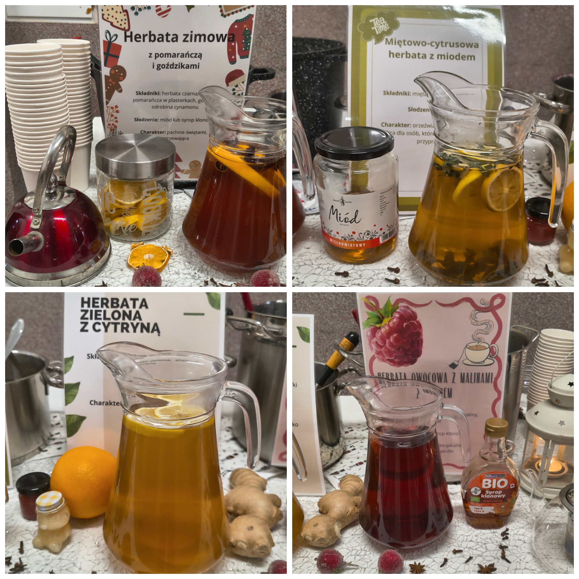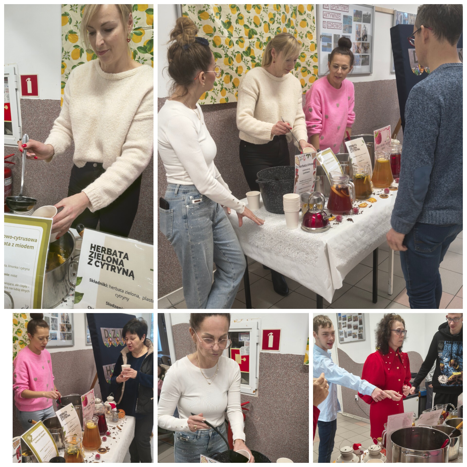Herbaciana długa przerwa w naszej szkole. Uczniowie mieli okazję spróbować pysznych i zdrowych herbat, słodzonych naturalnie — miodem lub syropem klonowym. Aromatyczne, zimowe przyprawy oraz świąteczne piosenki stworzyły ciepłą, radosną atmosferę. Wydarzenie zostało zorganizowane przez Zespół do spraw Promocji Zdrowia.