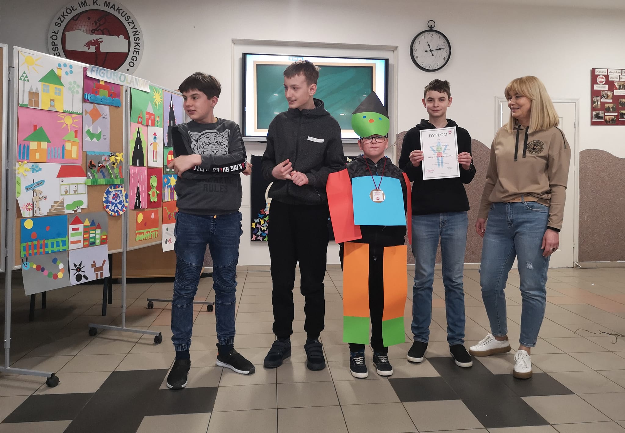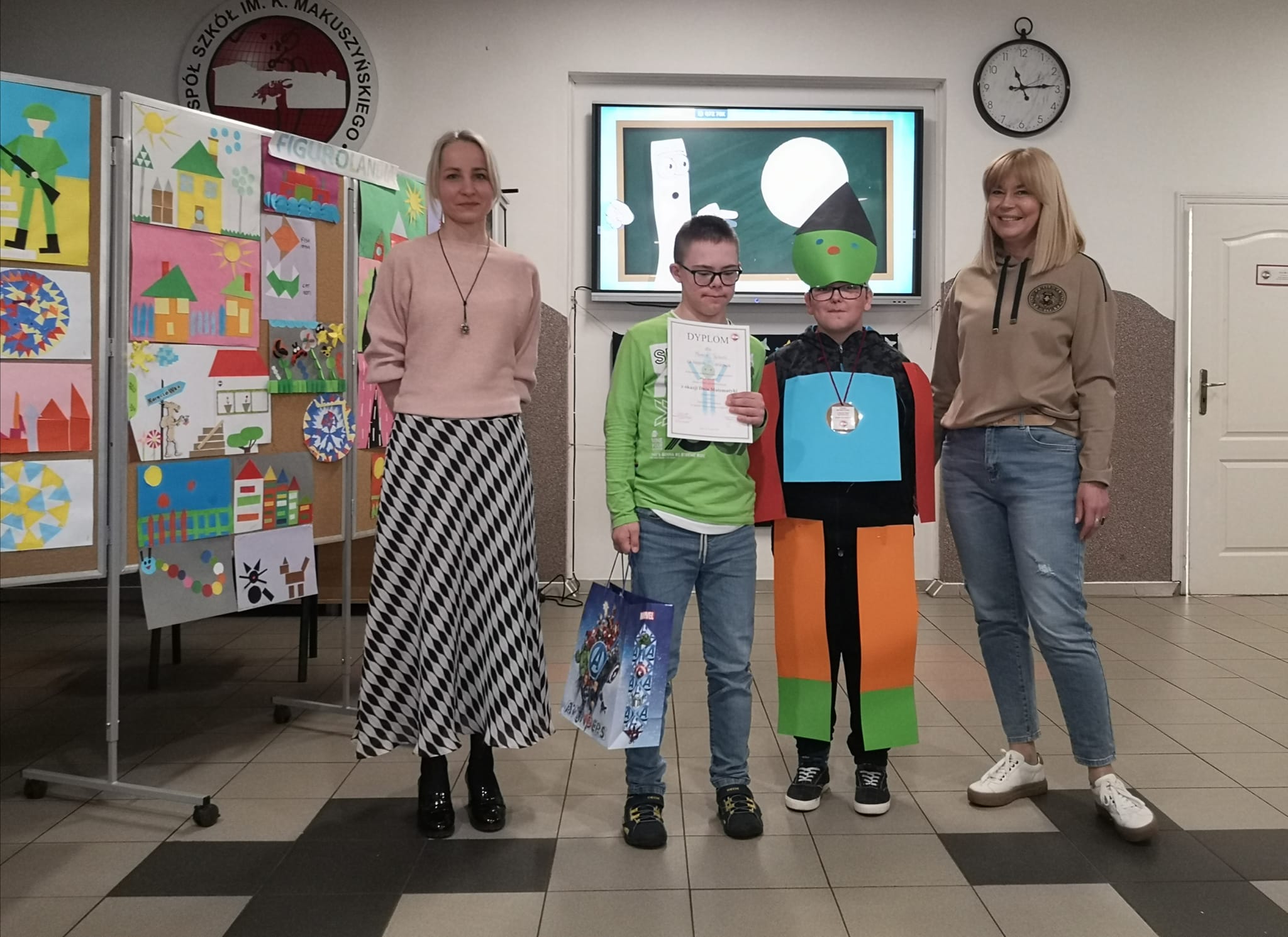 Na zakończenie został rozstrzygnięty konkurs matematyczno - plastyczny w dwóch kategoriach. Pierwsza młodsi uczniowie temat: "Figuraki"