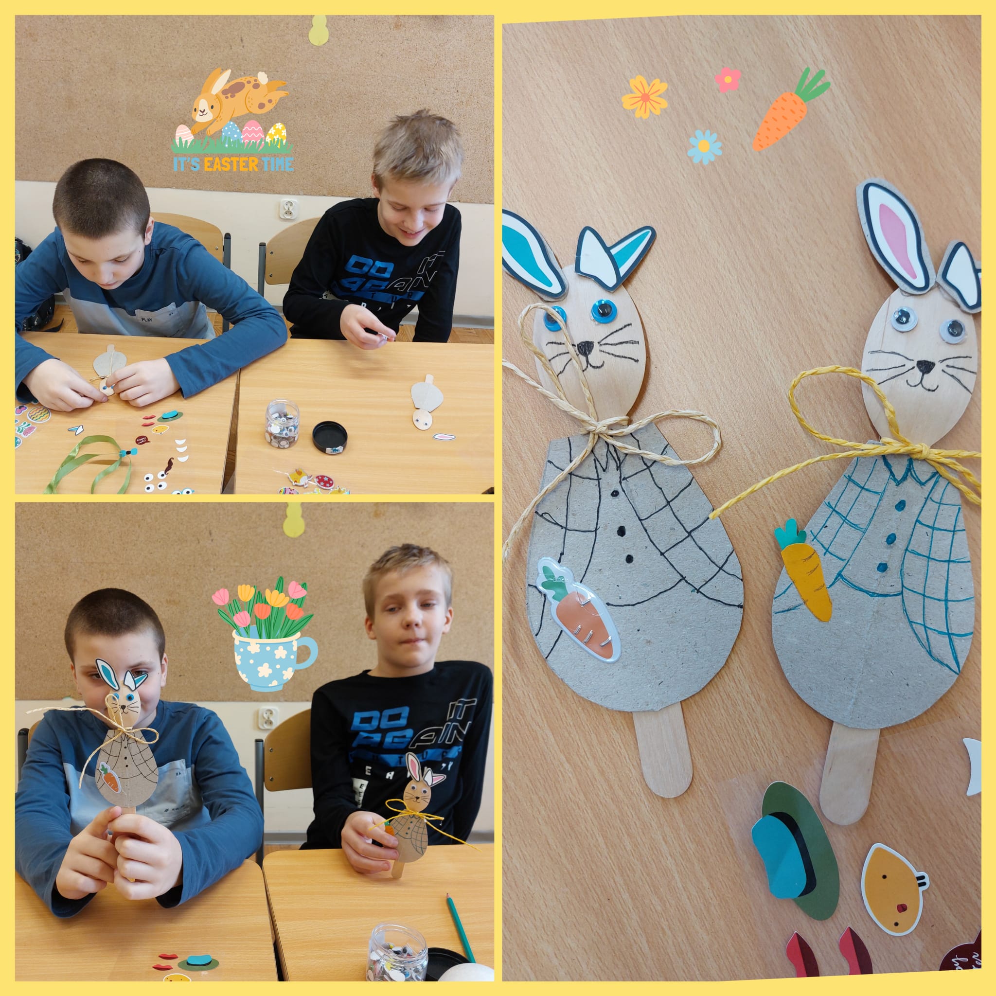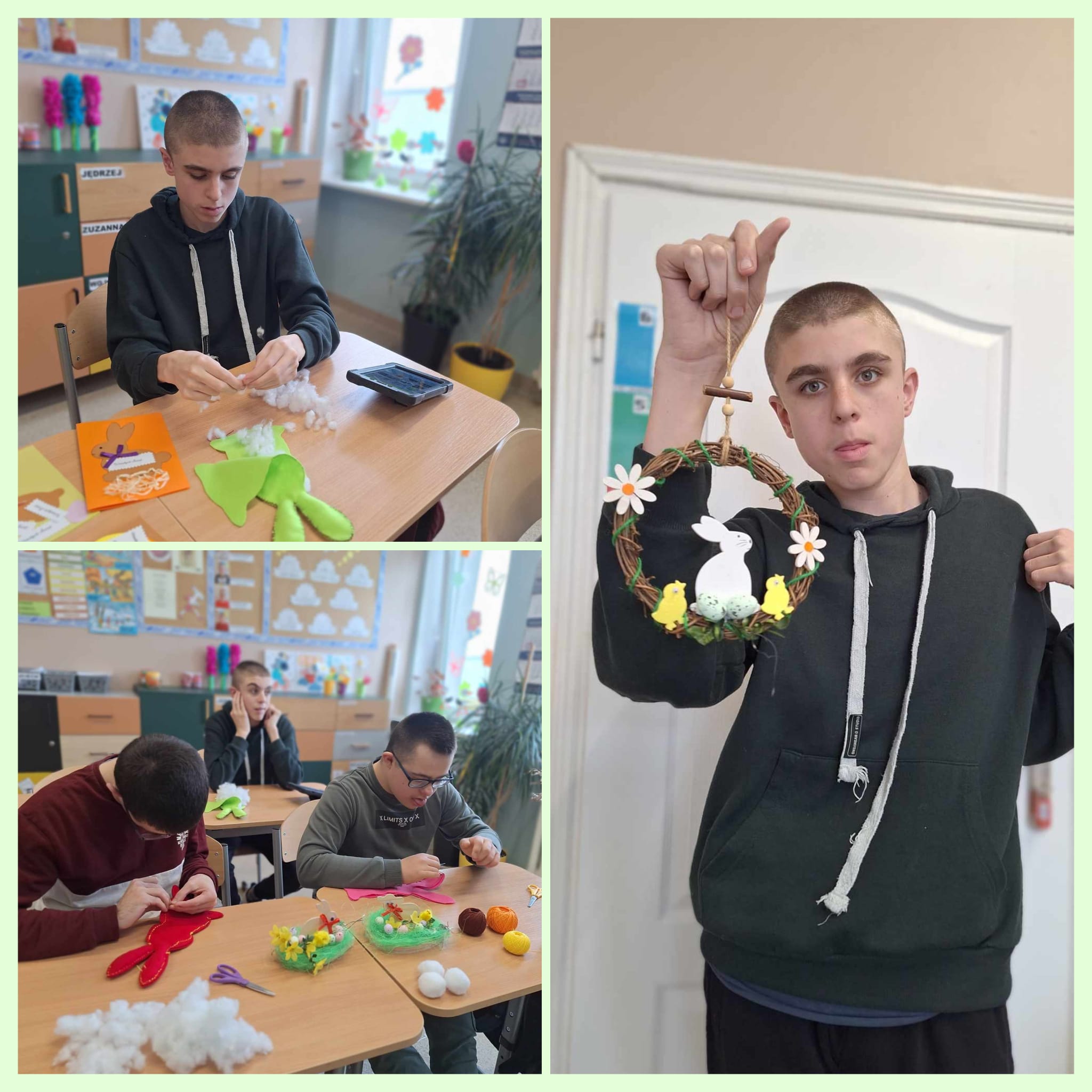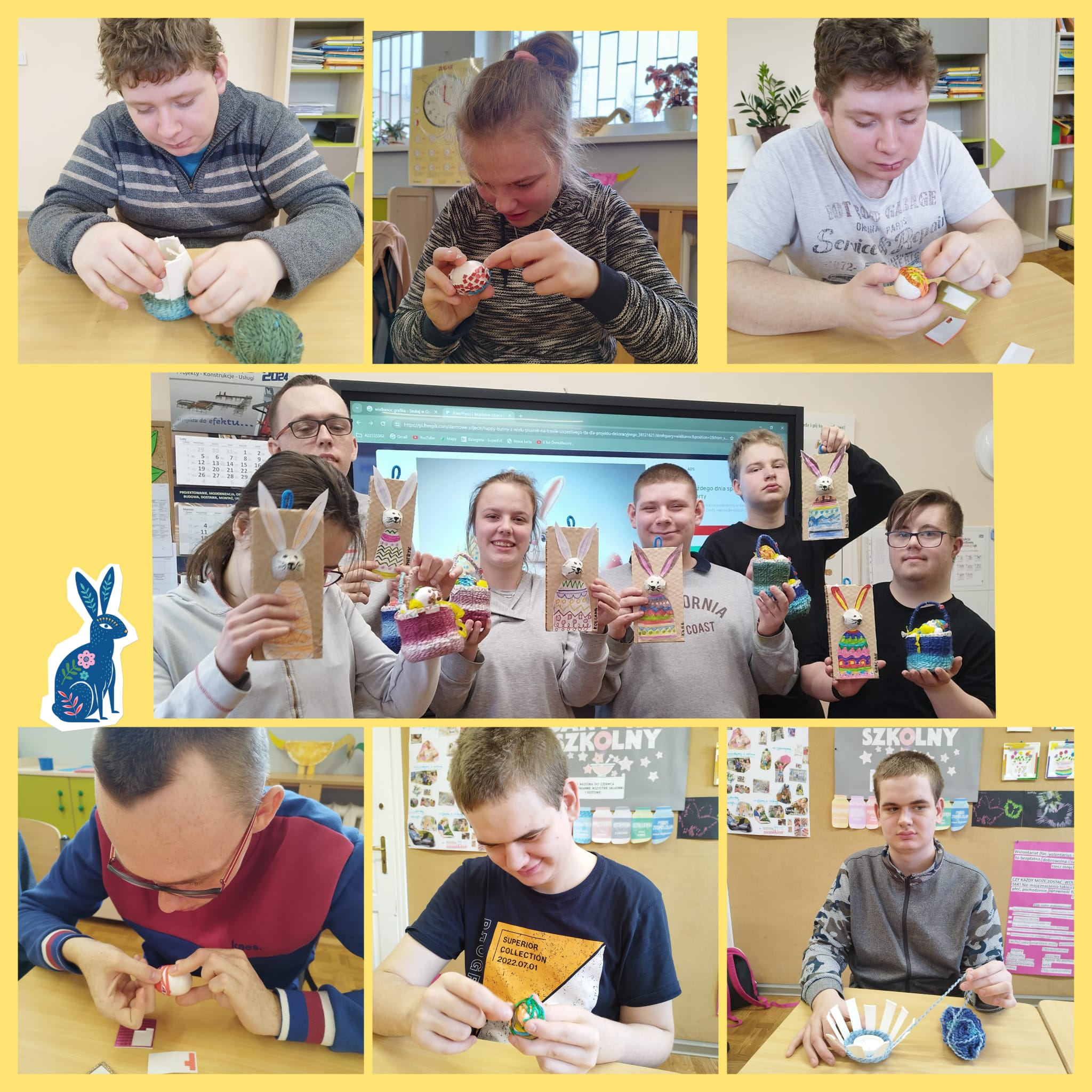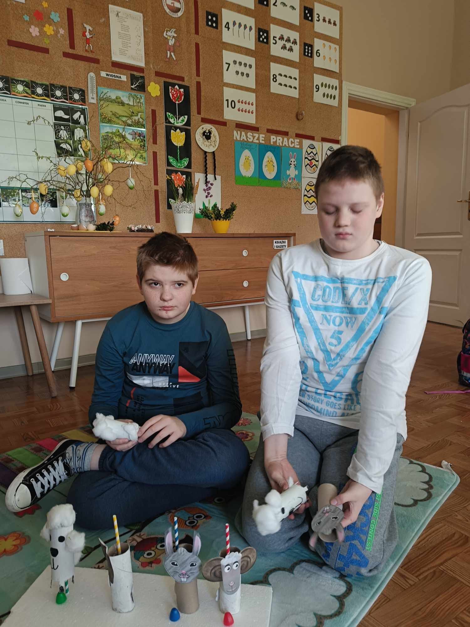 Podczas każdych świąt nasi rodzice czekają na dekoracje, które wykonujemy na zajęciach w szkole. Teraz już możemy powiedzieć, że jesteśmy gotowi na Wielkanoc. Mamy koszyczek, kurki, zajączka, baranka i kolorowe jajka.