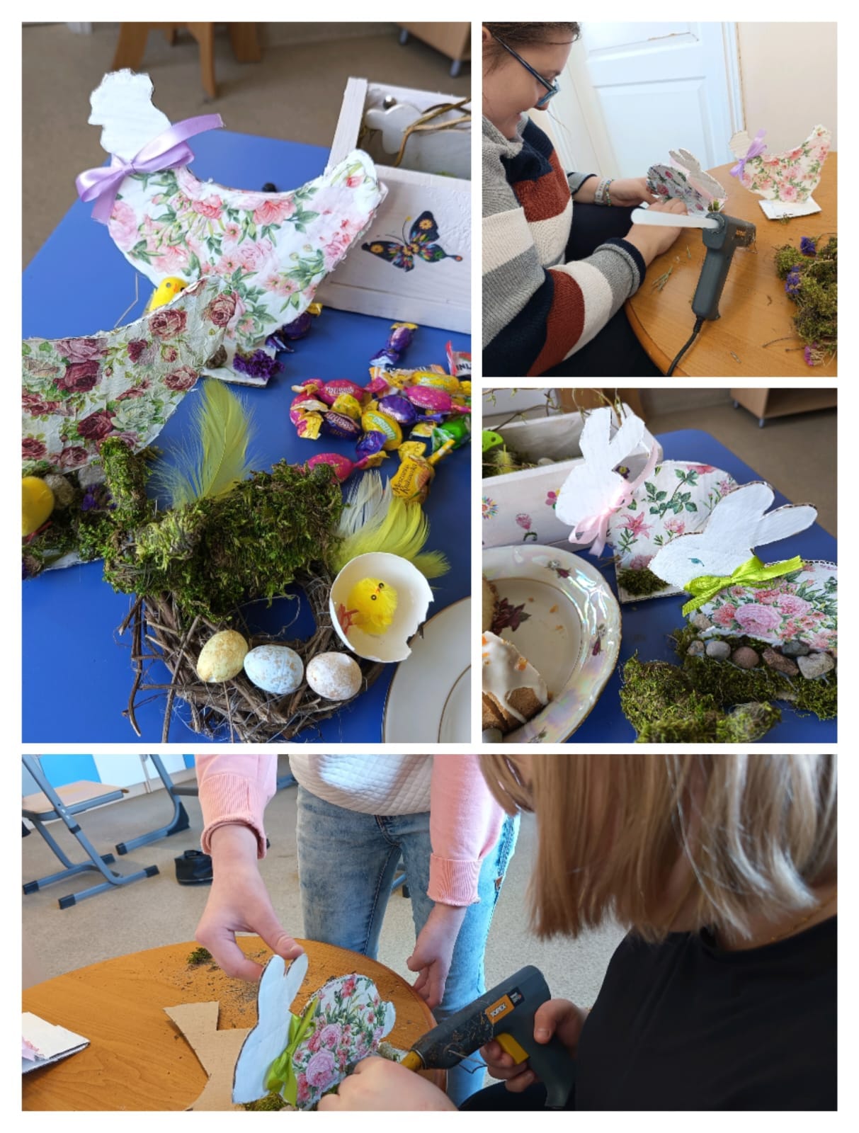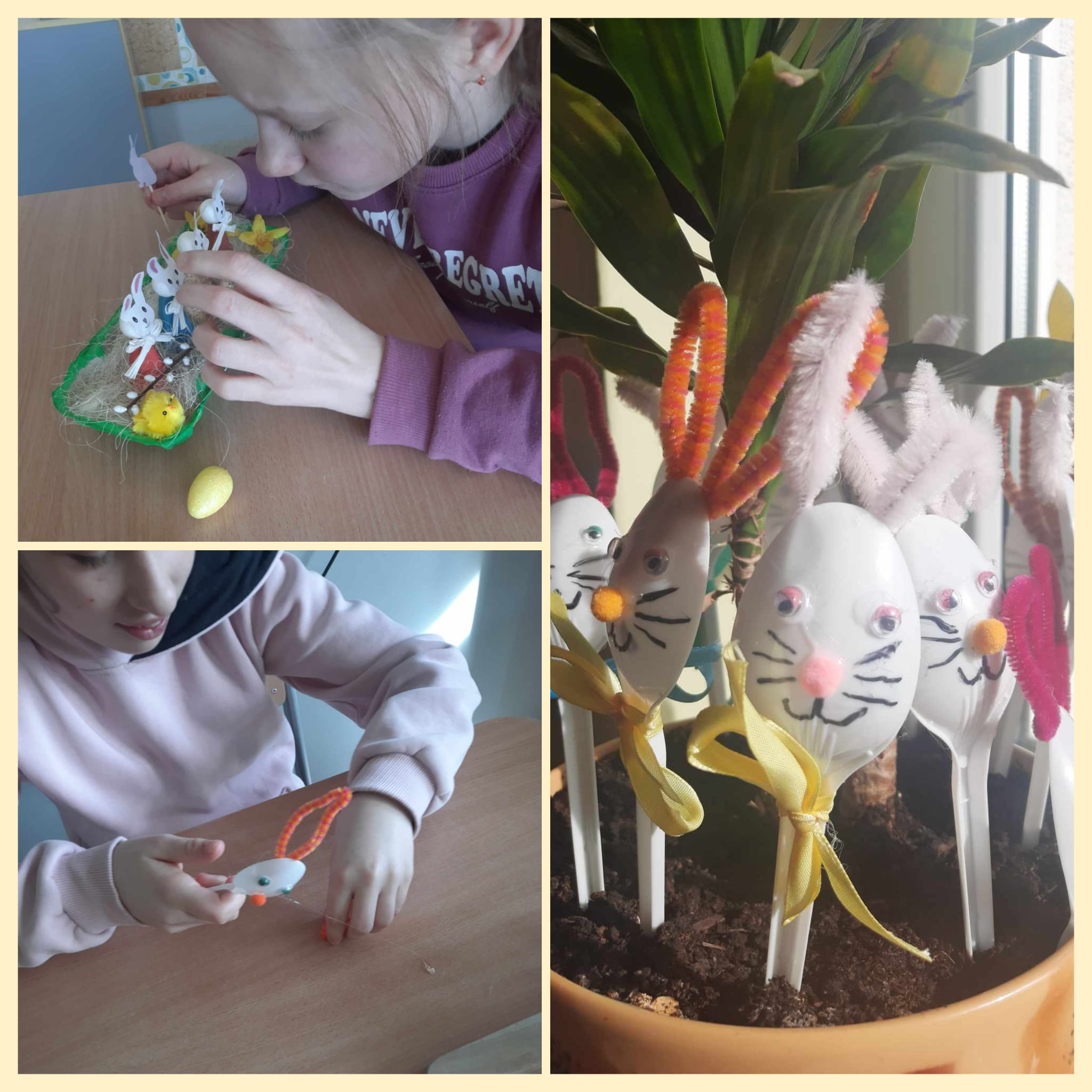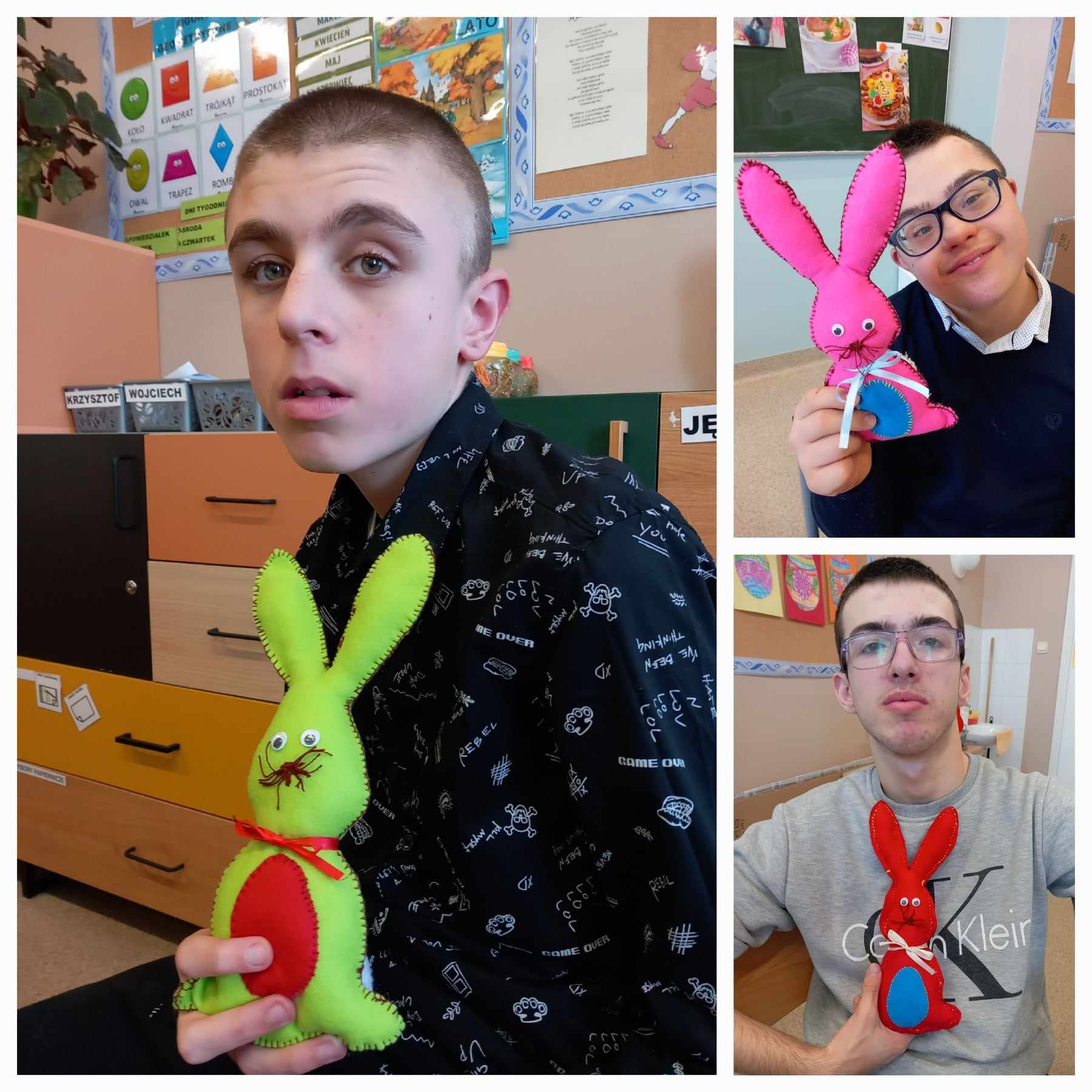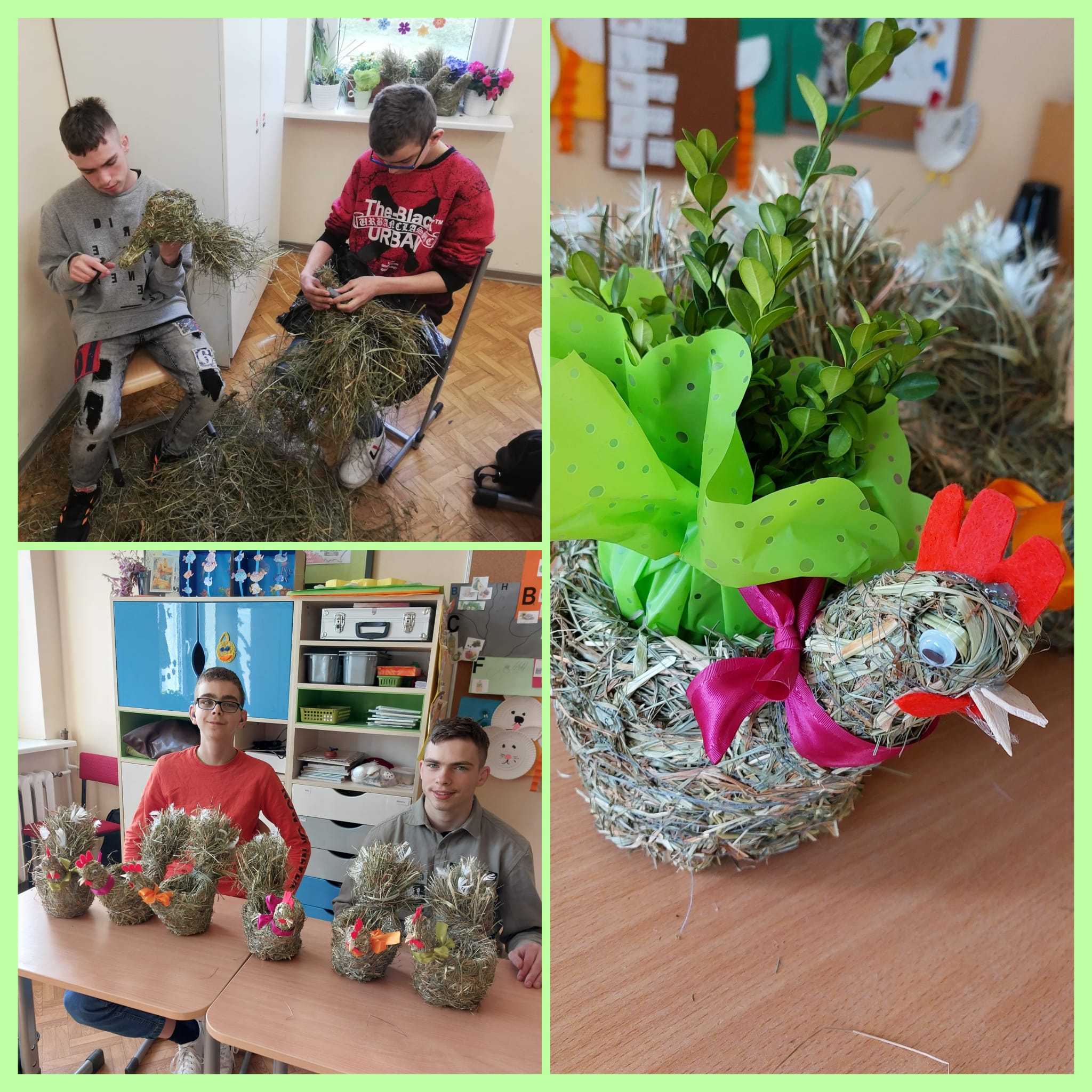 Podczas każdych świąt nasi rodzice czekają na dekoracje, które wykonujemy na zajęciach w szkole. Teraz już możemy powiedzieć, że jesteśmy gotowi na Wielkanoc. Mamy koszyczek, kurki, zajączka, baranka i kolorowe jajka.