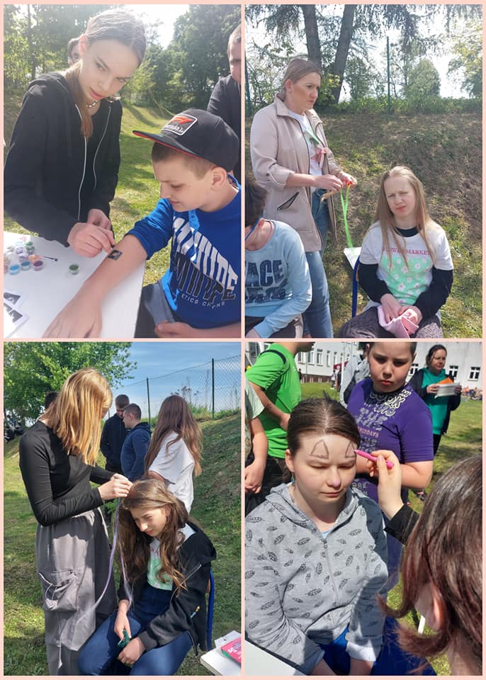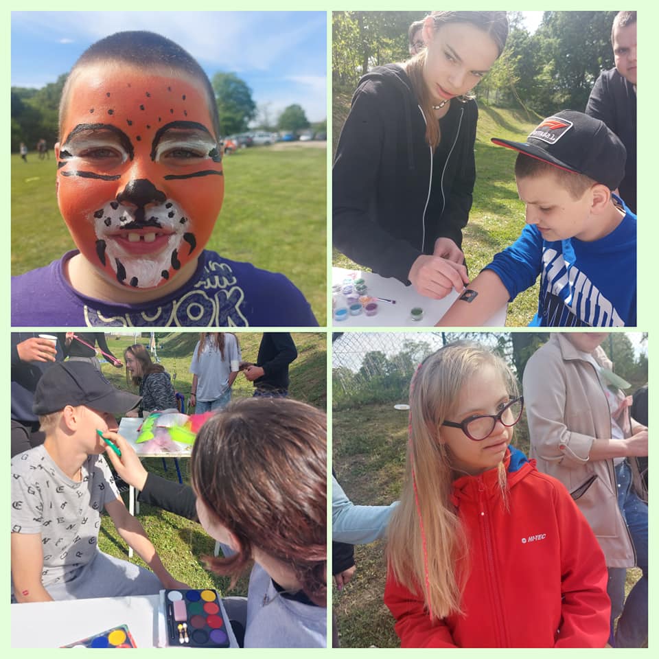 Piękna pogoda, piękny dzień i moc wrażeń. Za nami II Piknik Integracyjny współorganizowany ze Szkoła Podstawowa im. Mistrzów Sportu w Sarbii. Było mnóstwo atrakcji i dobrej zabawy. Na początek taniec integracyjny oraz zadania zręcznościowe, plastyczne i muzyczne w kolorowych grupach, później czas na regenerację sił -zdrowo, warzywnie i kolorowo. Na koniec już tylko relax i rekreacja - zumba, joga rozgrywki piłkarskie. Całą imprezę uatrakcyjniali uczniowie z Sarbii, zaplatając kolorowe warkoczyki, malując twarze i wykonując błyszczące tatuaże. Naszym przyjaciołom z Sarbii dziękujemy za wspaniałą, wspólną zabawę, świętowanie z Wami Dnia Godności Osób z Niepełnosprawnością Intelektualną to czysta przyjemność.