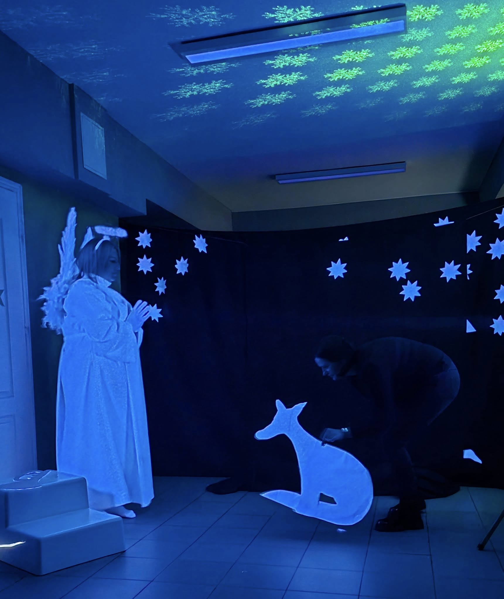 W lichej stajence nie było nikogo, oprócz wołka i osiołka. To oni pierwsi przywitali zbiedzonych podróżnych. W naszej szkole mieliśmy okazję im towarzyszyć wsłuchując się w opowiadanie muzyczne Wołek i osiołek.