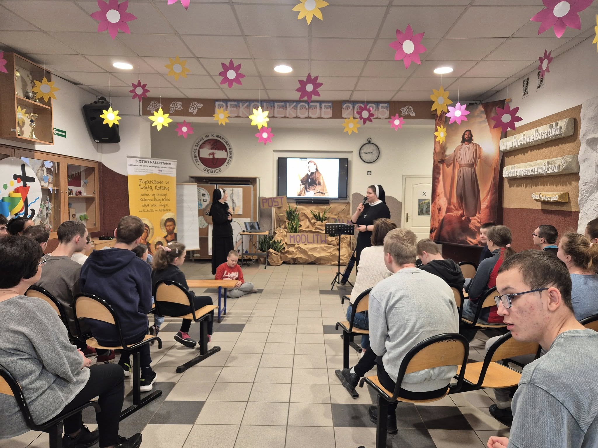 W naszej Kornelówce od 31marca do 2 kwietnia mieliśmy, "Boże lekcje" jak powiedział nasz uczeń Damian. Rekolekcje głosiły Siostry Nazaretanki s. Lidia i s. Marianna pod opieką ks. Proboszcza Sławomira Wasiela. Kolejny raz mogliśmy pogłębić naszą wiarę, zrozumieć wartości moralne oraz zintegrować społeczność szkolną wokół wspólnych wartości. W ramach przygotowań do rekolekcji uczniowie wraz z nauczycielami wykonali plakaty z logo Roku Jubileuszowego, papierowe - spersonalizowane cegiełki z których wykonali symboliczny fundament wiary. Najstarsi uczniowie przedstawili dwie scenki biblijne o Synu Marnotrawnym oraz o nawróceniu Zacheusza. Serdecznie dziękujemy siostrom za ubogacenie tych dni poprzez modlitwę, śpiew, aktywne konferencje oraz nabożeństwo Drogi Krzyżowej. Księdzu Proboszczowi dziękujemy za opiekę duchową oraz wygłoszone słowo Boże podczas Eucharystii.