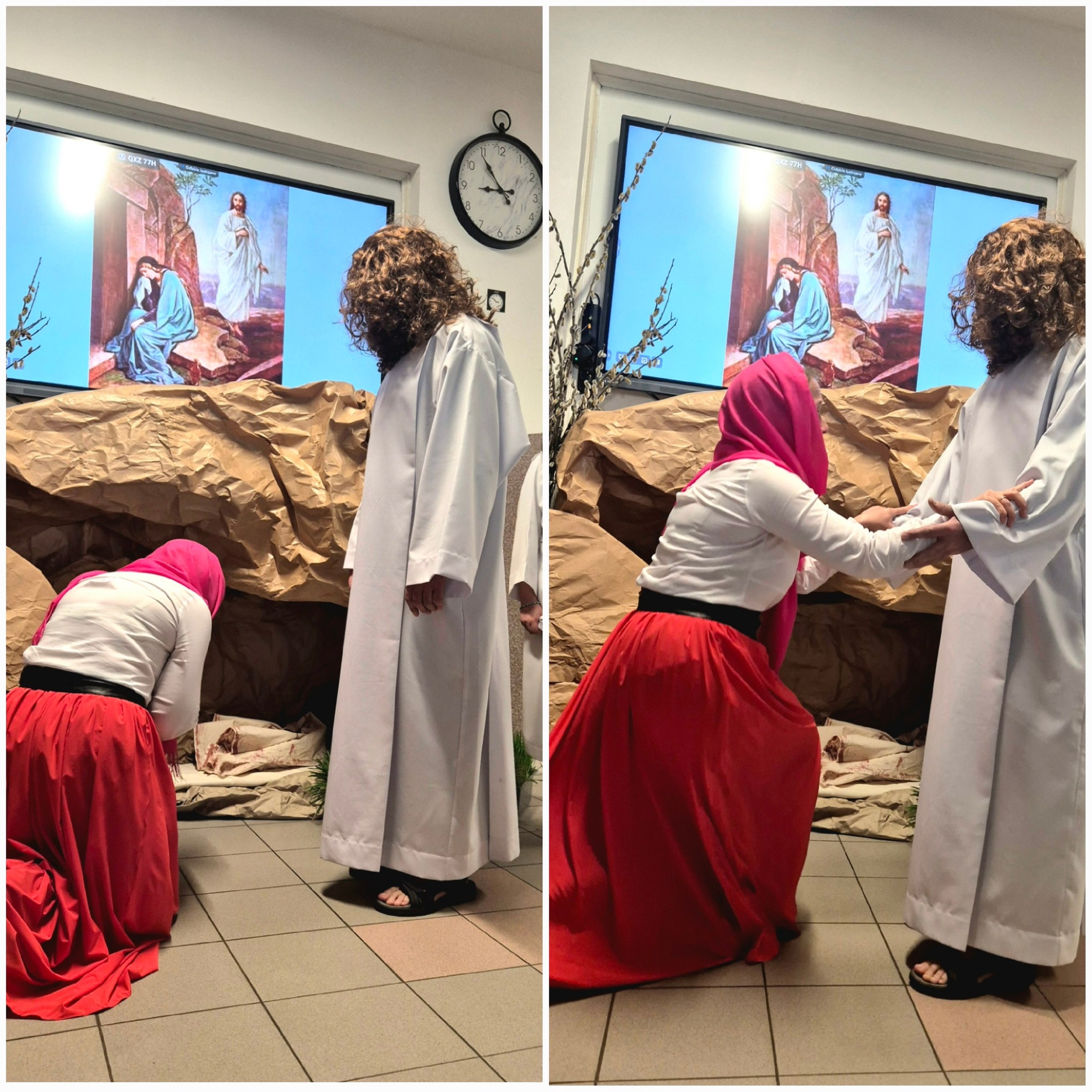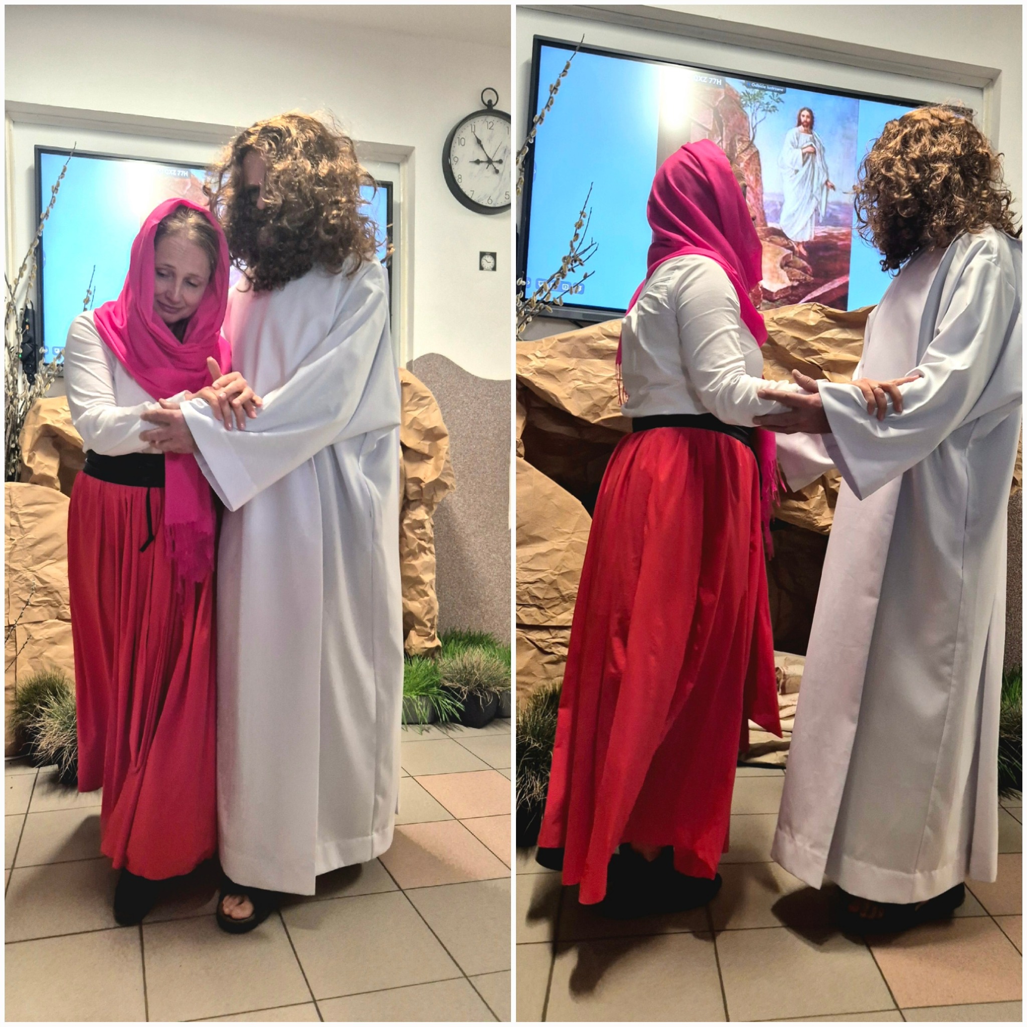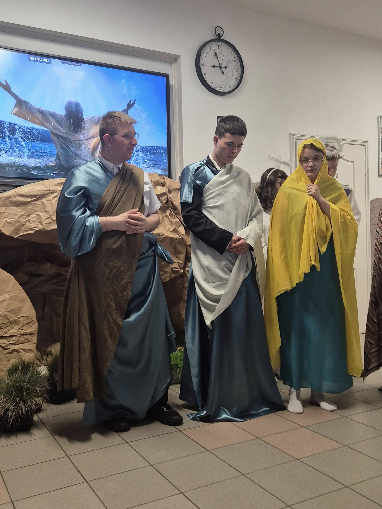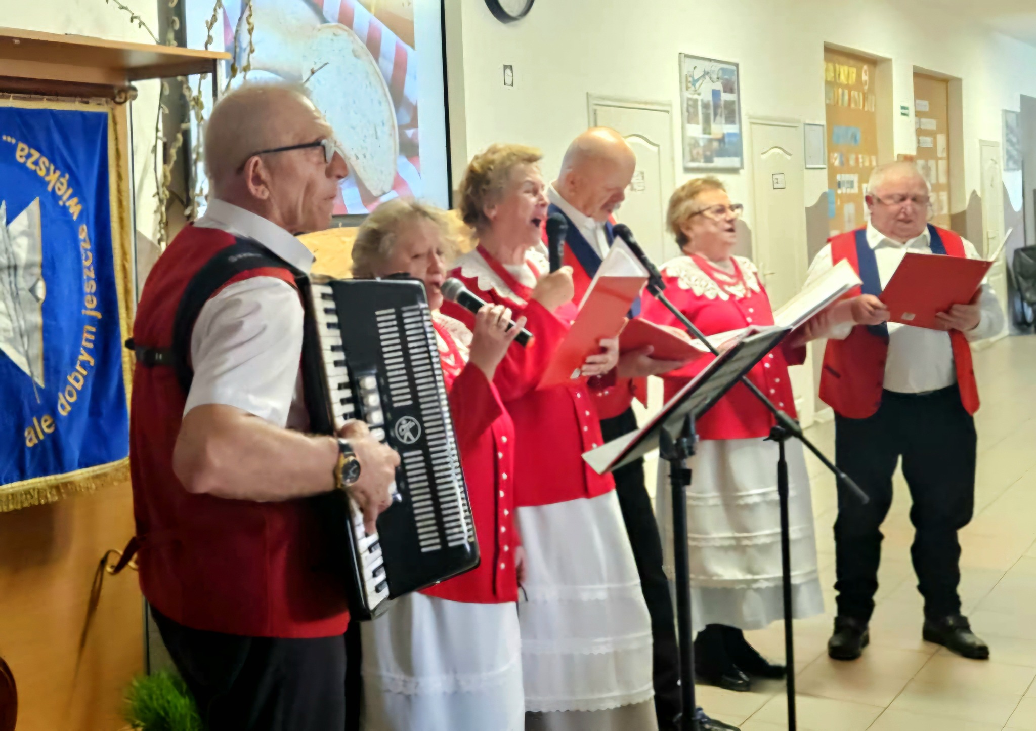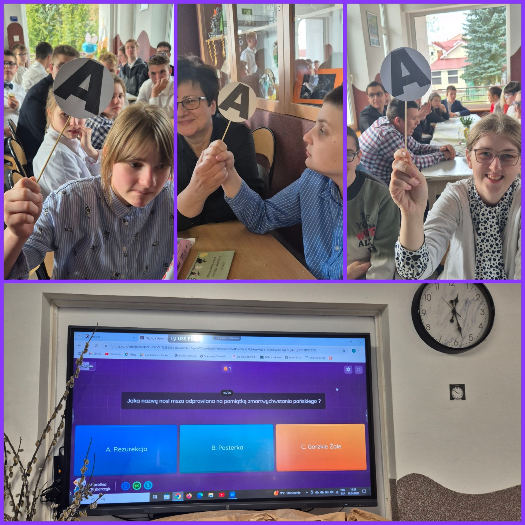 Mieliśmy okazję razem celebrować szkolne obchody świąt Wielkiej Nocy. Była to lekcja poświęcona wydarzeniu Zmartwychwstania Pańskiego, tradycji świątecznych pokarmów oraz ludowych obrzędów. Nasi uczniowie aktorsko zagrali wybrane sceny Ewangelii. Mieliśmy okazję skosztować żuru przygotowanego przez oddziały szkoły przysposabiającej do pracy, nie zabrakło również baranka, jaj, bab, chleba oraz białej kiełbaski. Ucztą dla naszych zmysłów był gościnny występ zespołu ludowego "LUBASZANKI", którego wykonawcy zaprezentowali pieśni religijne, ludowe i biesiadne przy wspaniałym akompaniamencie akordeonu. Całość zwieńczył quiz wiedzy podsumowujący to, co zapamiętaliśmy z dzisiejszego śniadania. Dziękujemy za obecność ks. proboszczowi Sławomirowi Wasieli, oraz Wszystkim, którzy zakupili kalendarze Kornelówka 2025 - dochód z ich sprzedaży sfinansował całe dzisiejsze przedsięwzięcie.