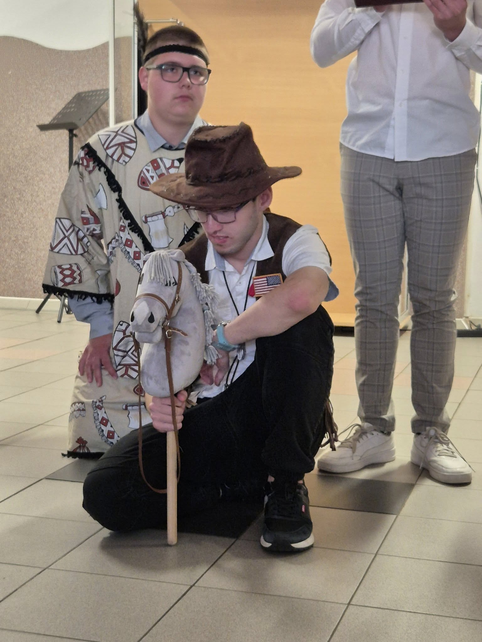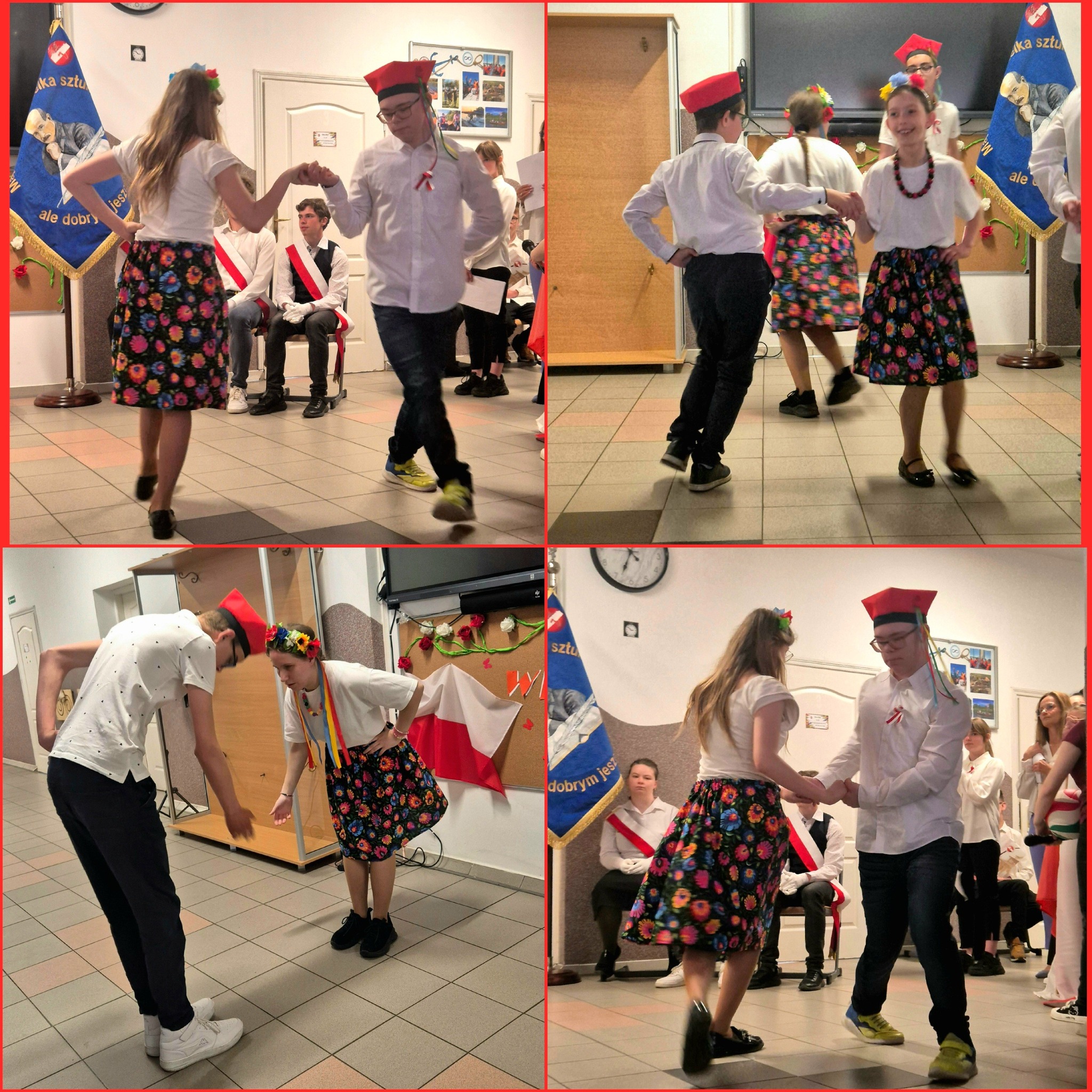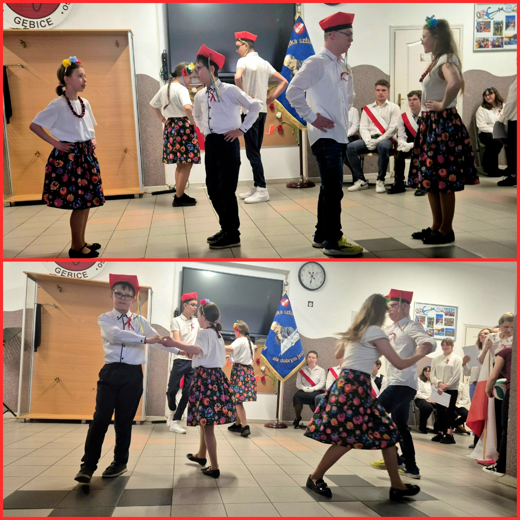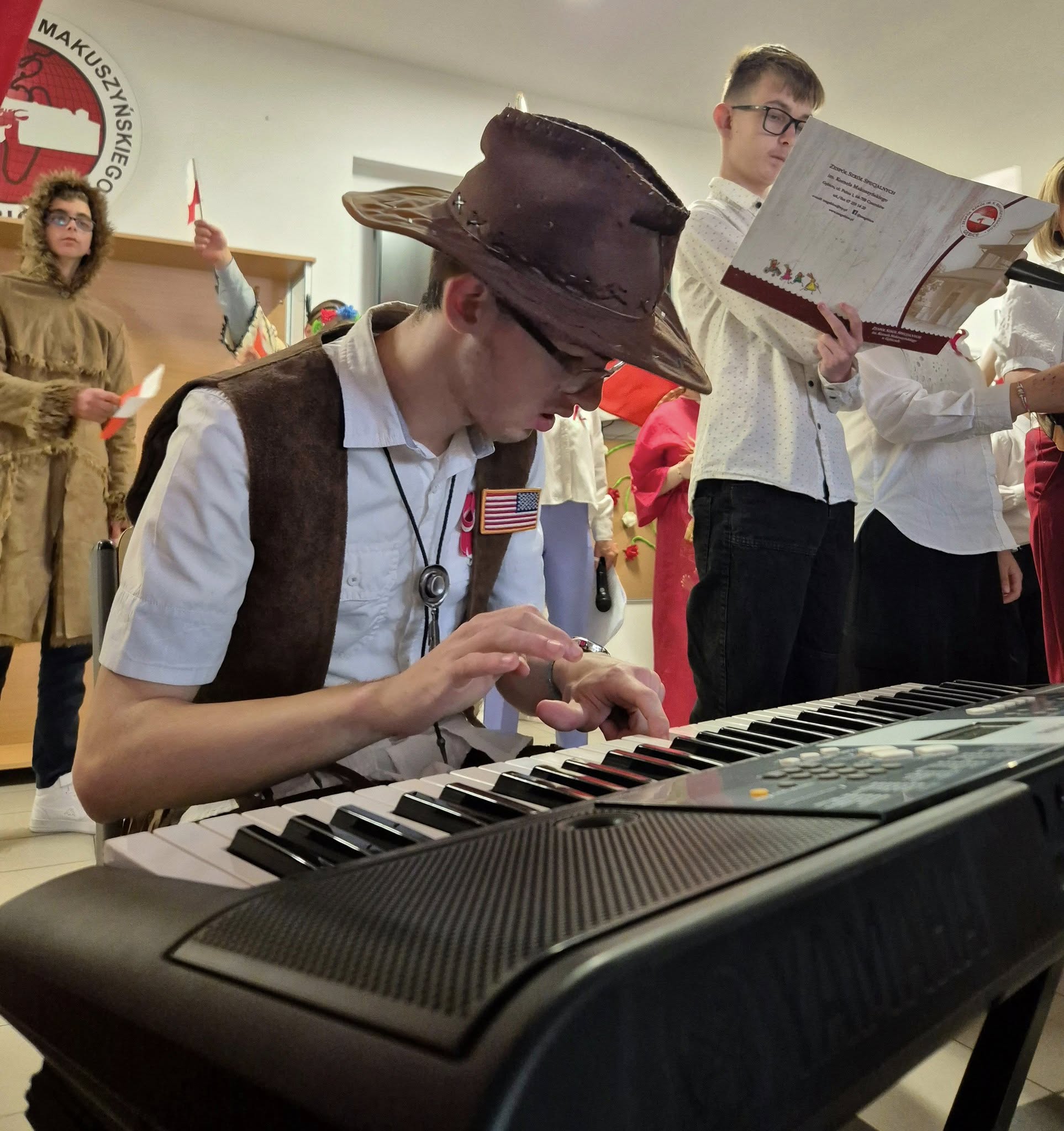 W przeddzień uroczystości majowych w naszej szkole odbyła się wyjątkowa akademia, która zgromadziła całą społeczność szkolną. Uroczystość rozpoczęła się od wprowadzenia pocztu sztandarowego i wspólnego zaśpiewania hymnu. Zaraz po tym na scenę wbiegły bliźniaczki, które poprowadziły pierwszą część apelu i przybliżyły nam znaczenie Majowych Świąt Narodowych. Były wiersze, polka oraz tańce. W kolejnej części programu uczniowie, przebrani za obcokrajowców, opowiadali o znaczeniu Konstytucji 3 Maja. Na scenie pojawiły się postacie takie jak kowboj, Eskimos, Indianin oraz Chinka i Masajka, co wzbudziło duże zainteresowanie i uśmiechy na twarzach publiczności. Uczniowie przypomnieli zebranym tradycje świąt majowych, podkreślając, jak ważne są dla naszej historii i tożsamości narodowej. Na zakończenie uroczystości wspólnie wykonano „Majową Jutrzenkę”. Był to piękny finał, który połączył wszystkich we wspólnym świętowaniu.