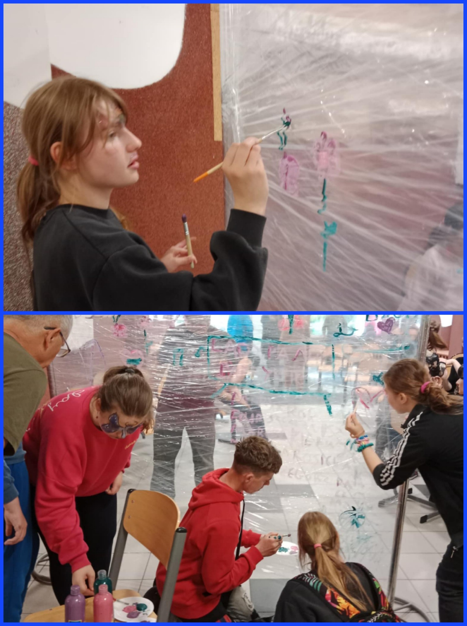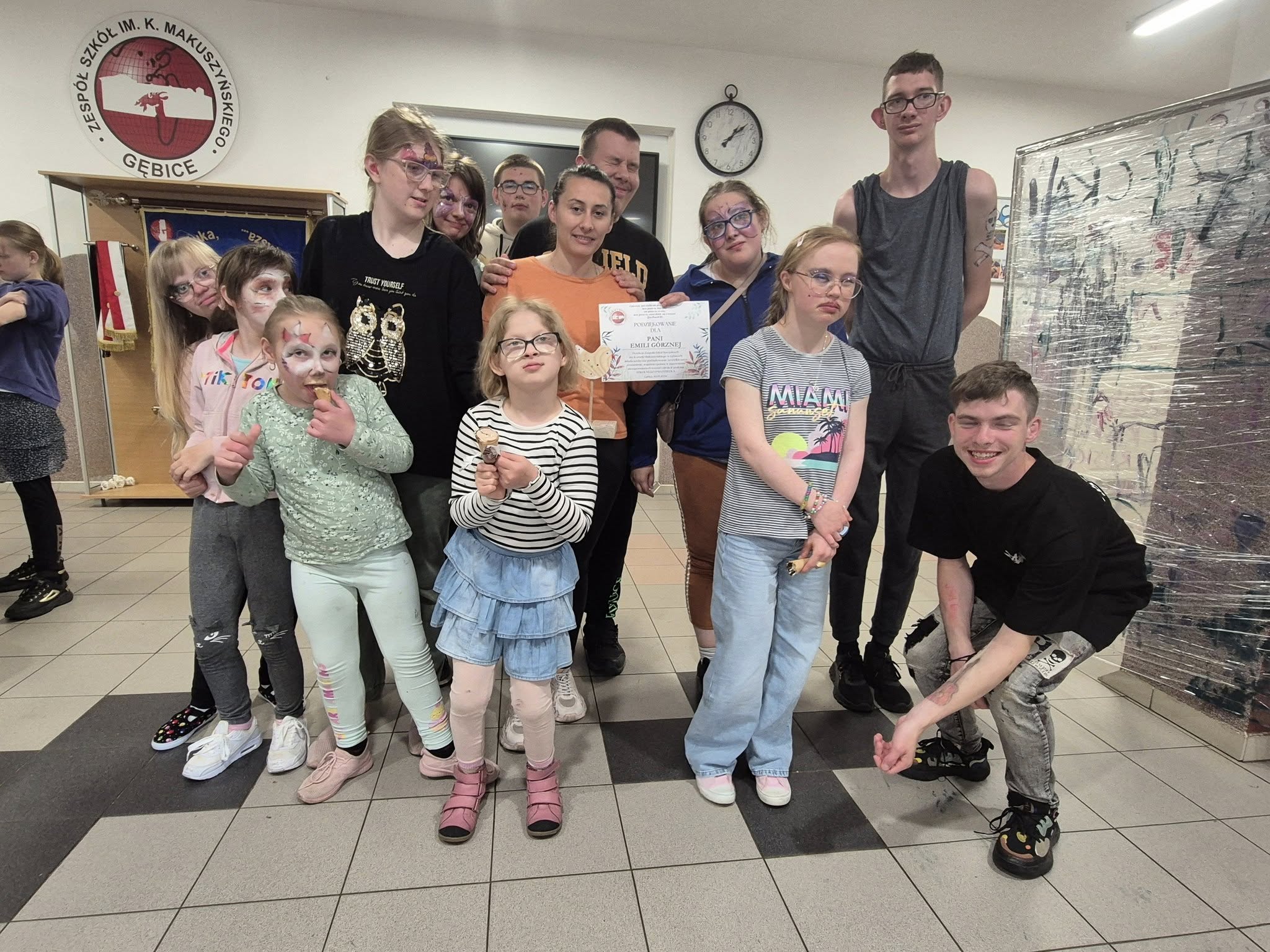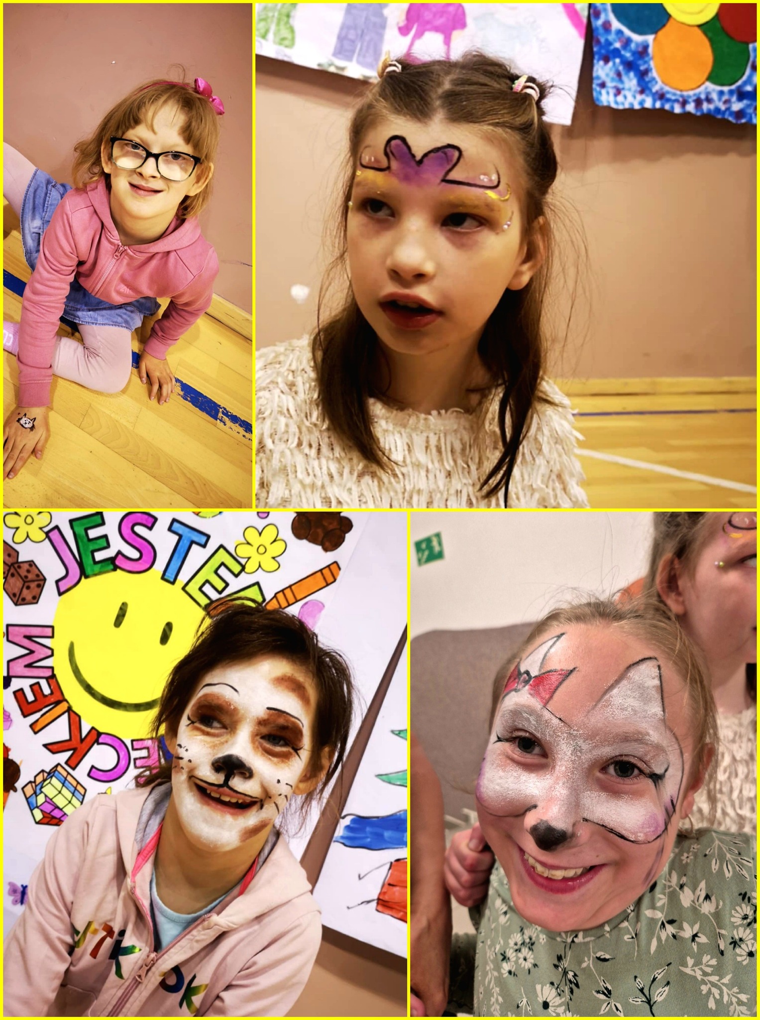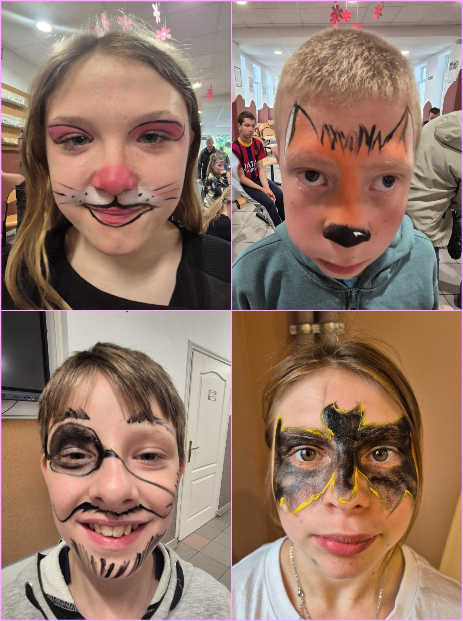 Odwiedziła nas również pani Emilia Górzna z Biblioteki Publicznej w Gębicach, która malowała dzieciom twarze w bajkowe wzory – kolorowe buzie wywołały uśmiech nie tylko na twarzach uczniów, ale i dorosłych.