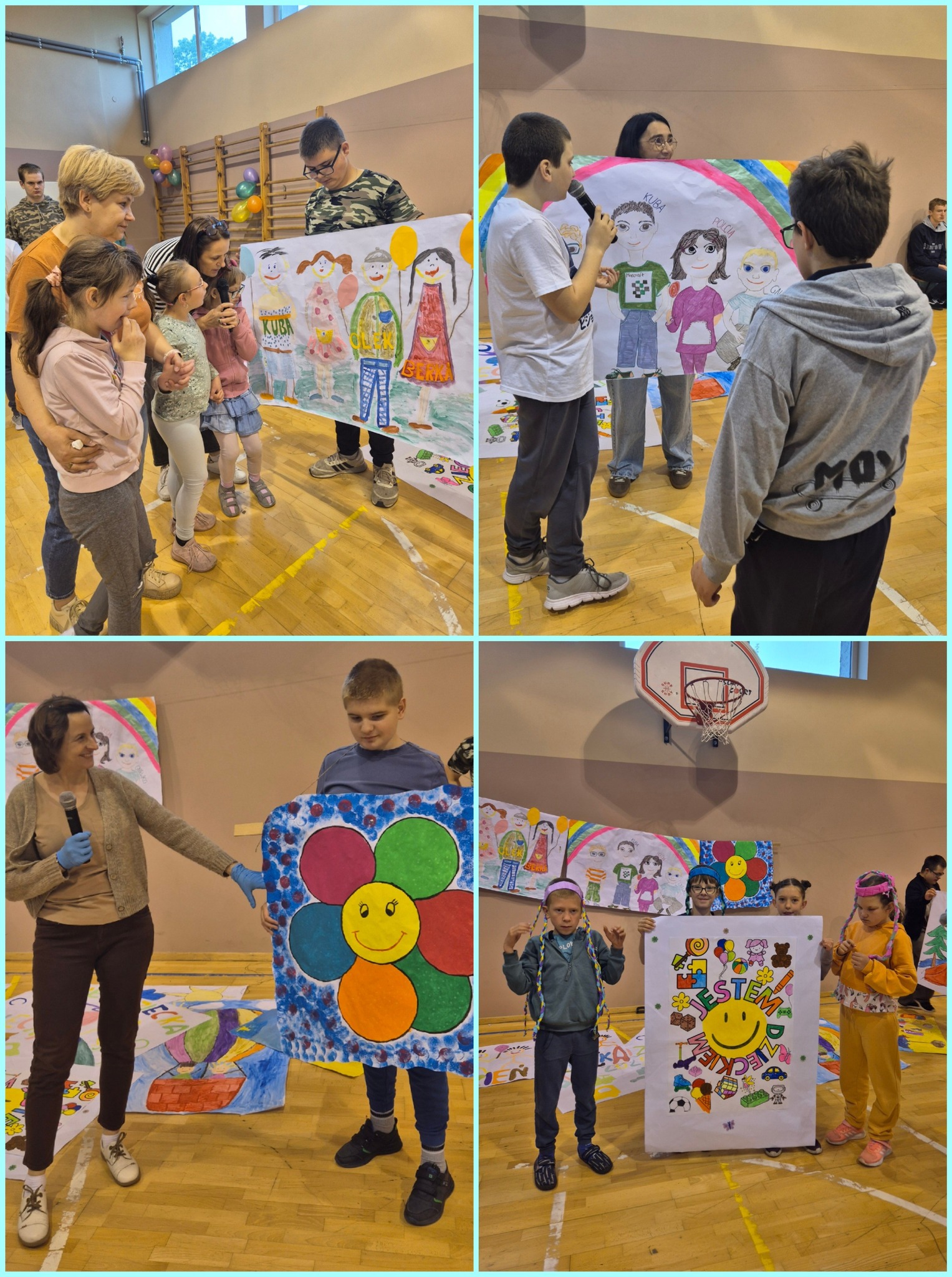 Dzień był pełen uśmiechu, muzyki, tańca i kolorów. Dzieci zaprezentowały swoje klasowe plakaty o wymarzonym Dniu Dziecka, zatańczyły wspólnie zumbę, wzięły udział w wesołych zabawach i stworzyły barwne malunki na folii. Wielką frajdą była wizyta strażaków, którzy pokazali nam sprzęt, opowiedzieli o swojej pracy i przeprowadzili krótką, praktyczną lekcję pierwszej pomocy.