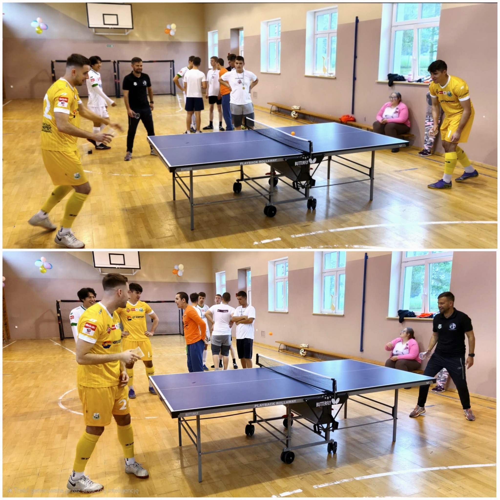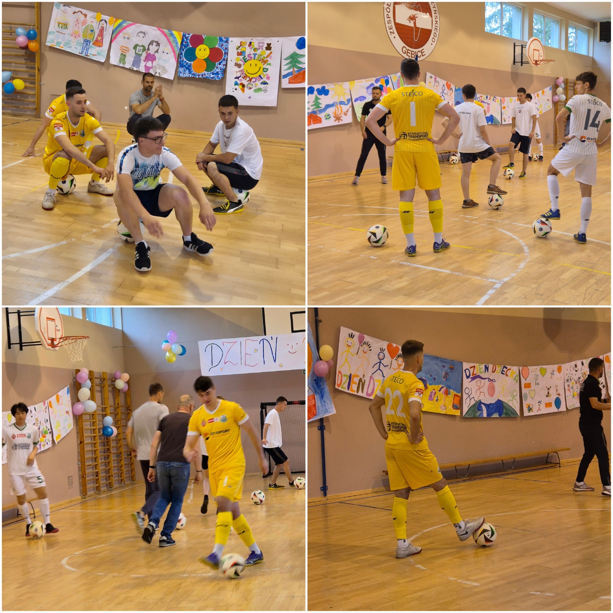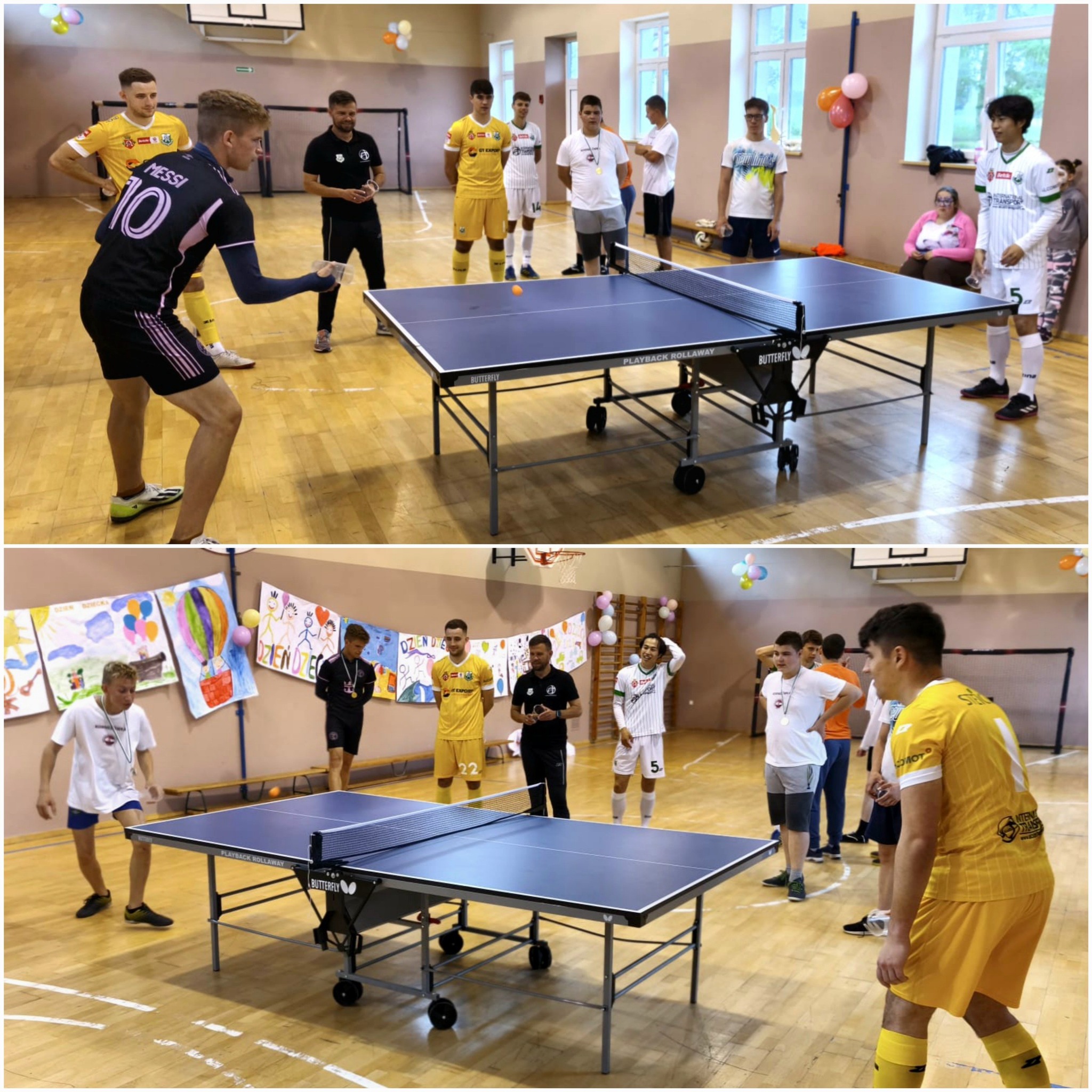 Nie zabrakło także sportowych emocji – nasi uczniowie spotkali się z zawodnikami MKS Noteć Czarnków oraz trenerem Adamem Drozdowiczem. Razem zagrali mecz piłkarski, a piłkarze mieli okazję spróbować swoich sił w naszym autorskim „tenisie kubkowym”! Wspólna gra i śmiech połączyły wszystkich – to było prawdziwe święto ruchu i integracji!