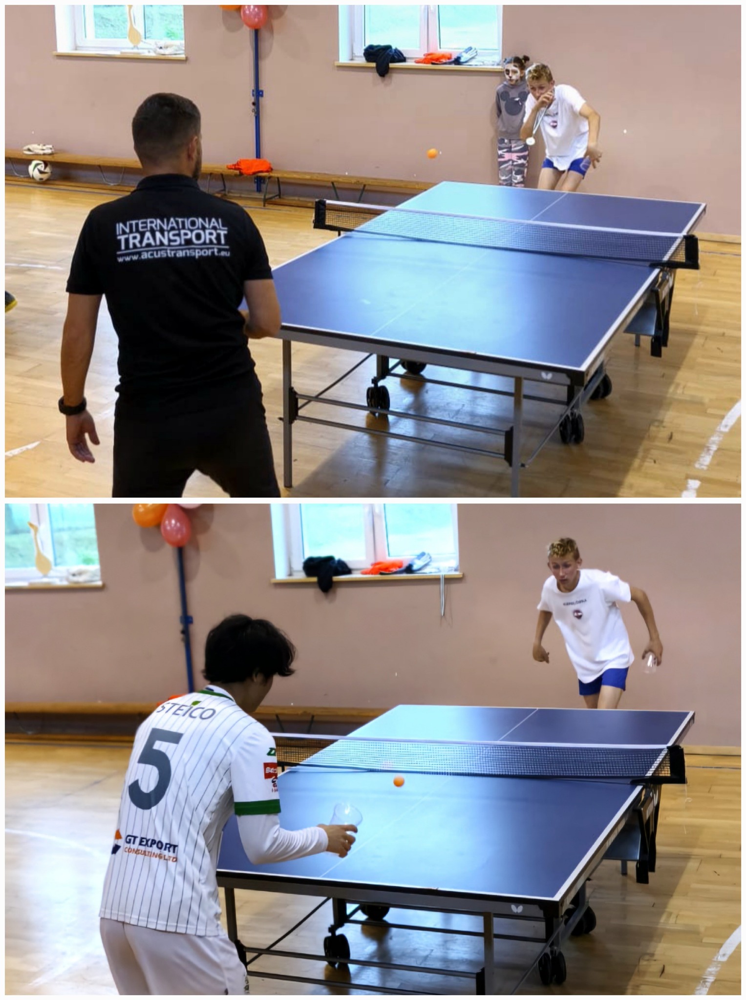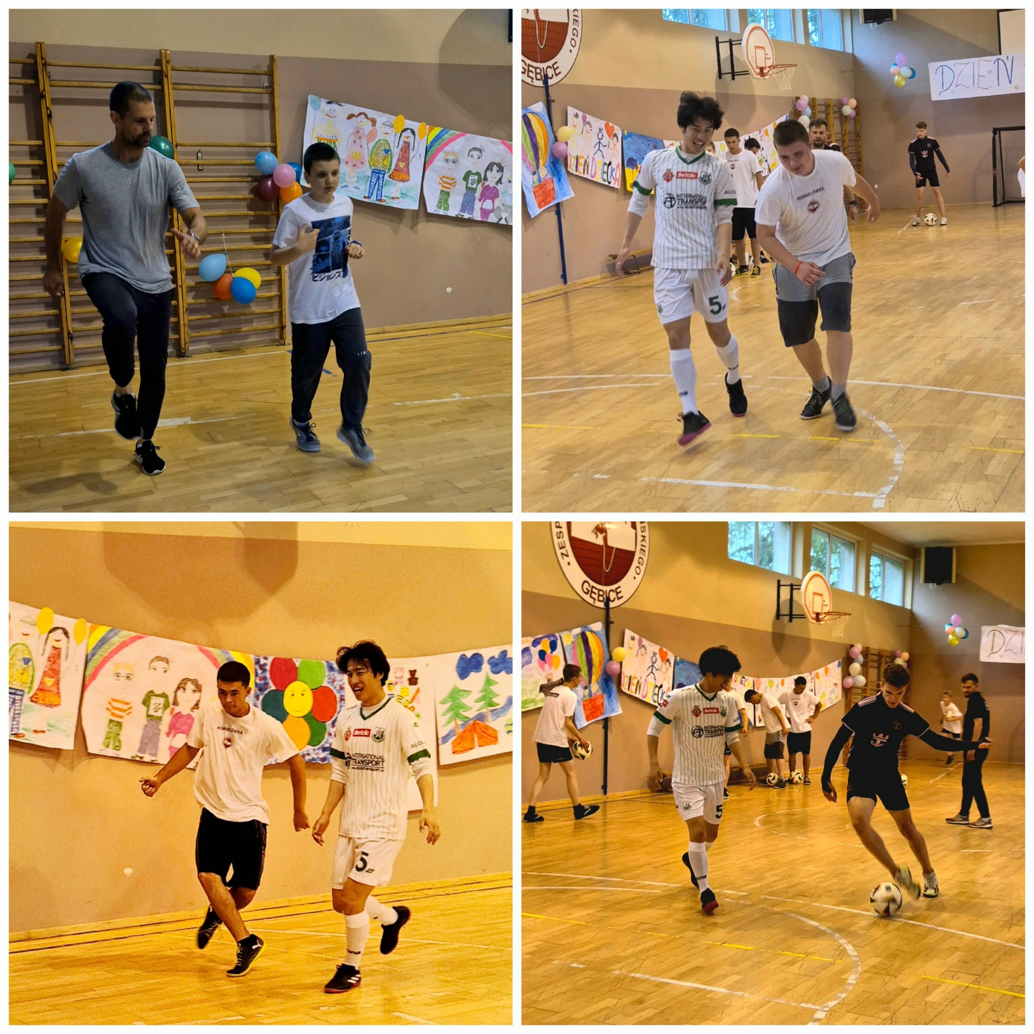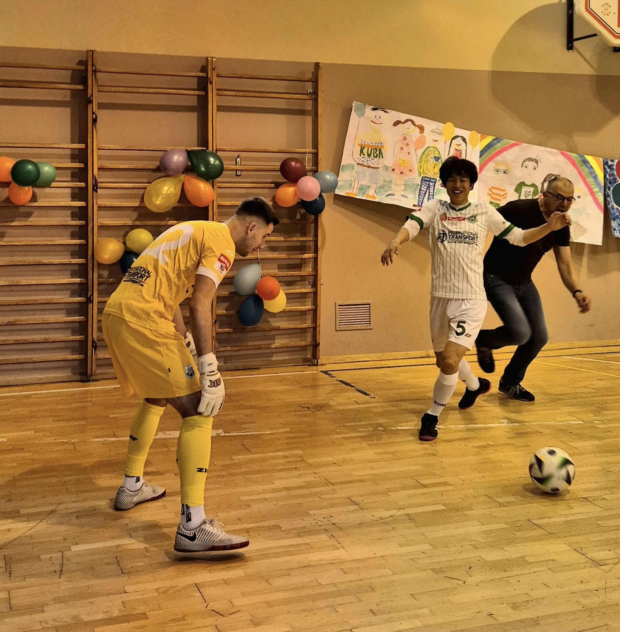Nie zabrakło także sportowych emocji – nasi uczniowie spotkali się z zawodnikami MKS Noteć Czarnków oraz trenerem Adamem Drozdowiczem. Razem zagrali mecz piłkarski, a piłkarze mieli okazję spróbować swoich sił w naszym autorskim „tenisie kubkowym”! Wspólna gra i śmiech połączyły wszystkich – to było prawdziwe święto ruchu i integracji!