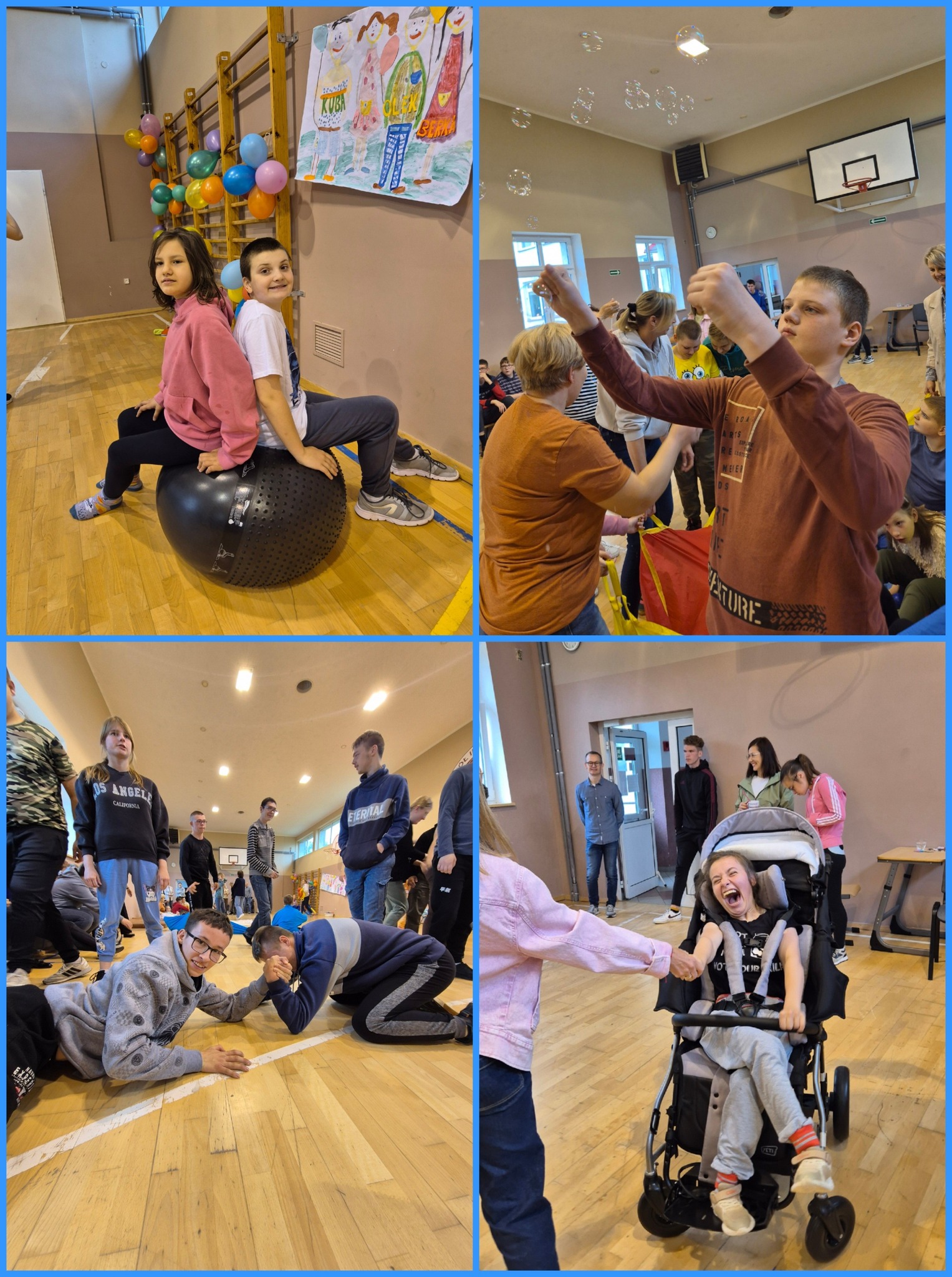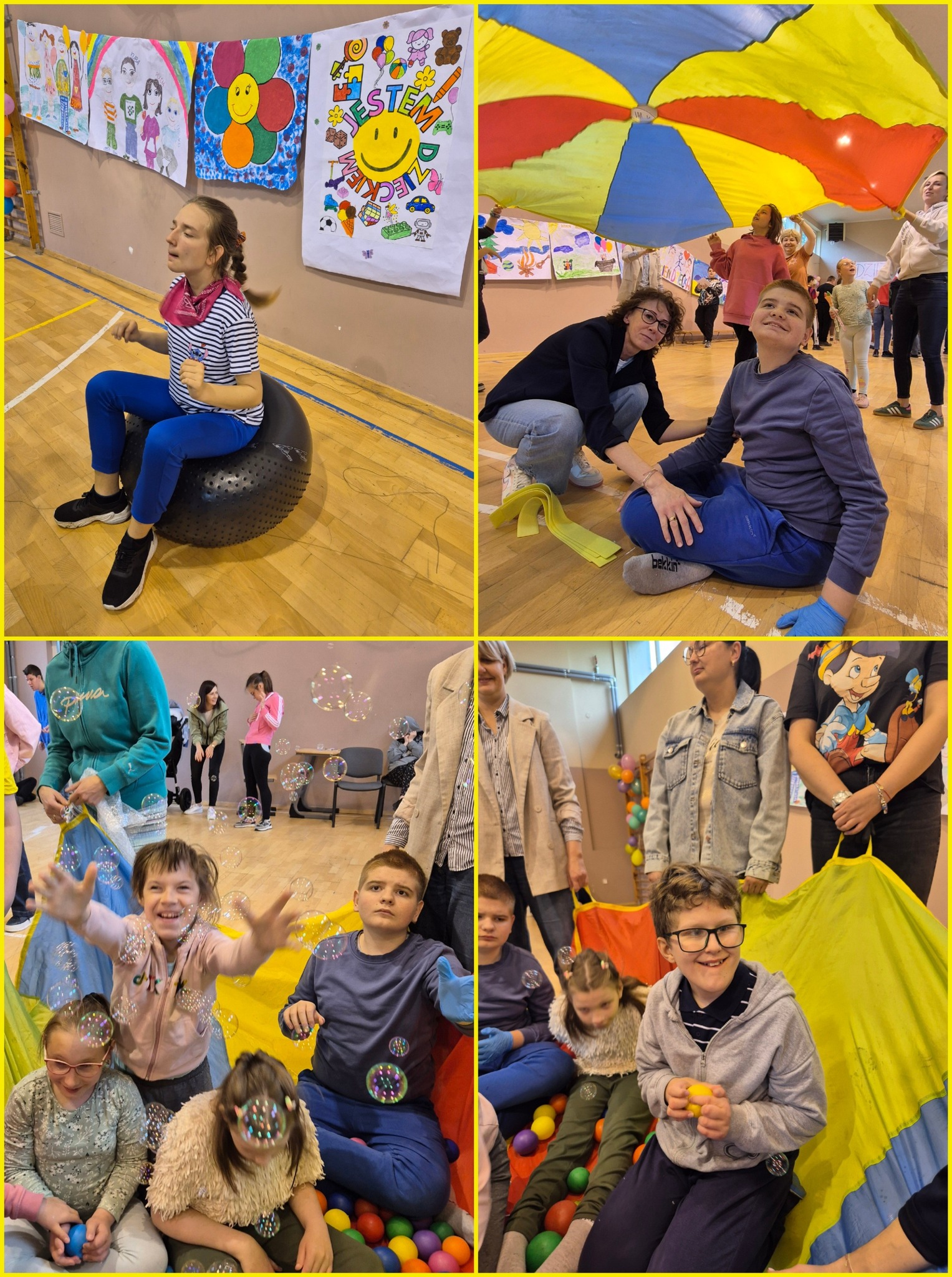 W piątek świętowaliśmy w naszej szkole Dzień Dziecka! Choć pogoda nie pozwoliła na zabawę na świeżym powietrzu i przenieśliśmy wszystkie atrakcje do budynku szkoły to nie straciliśmy ani grama radości!