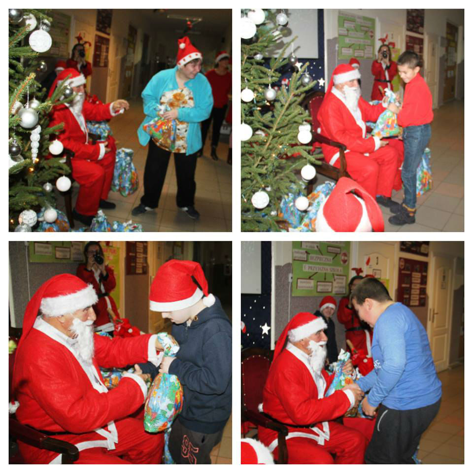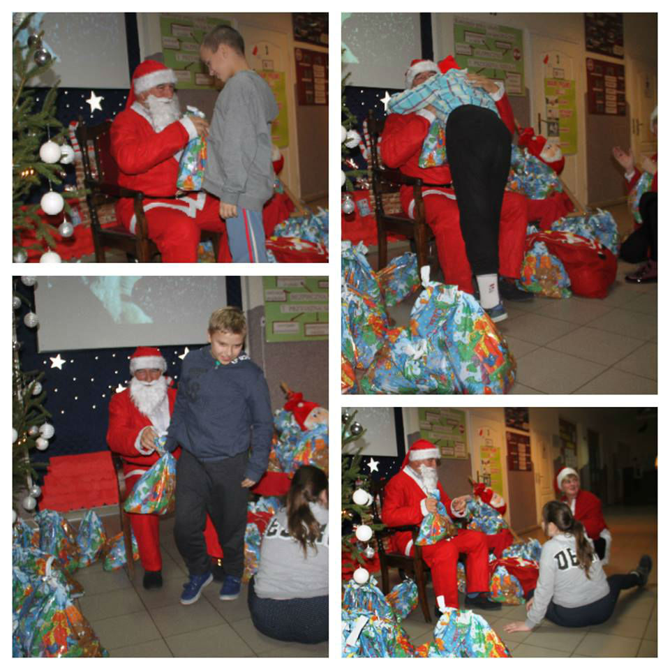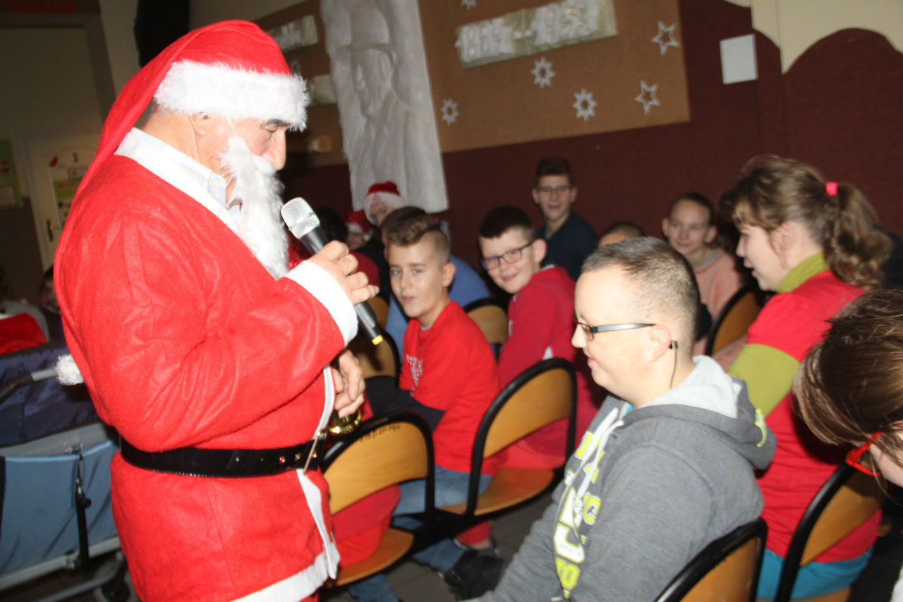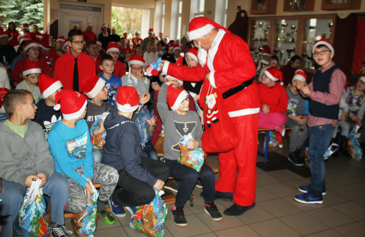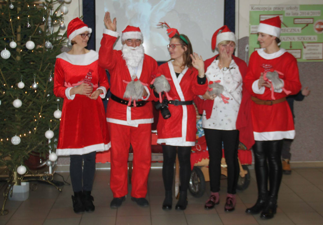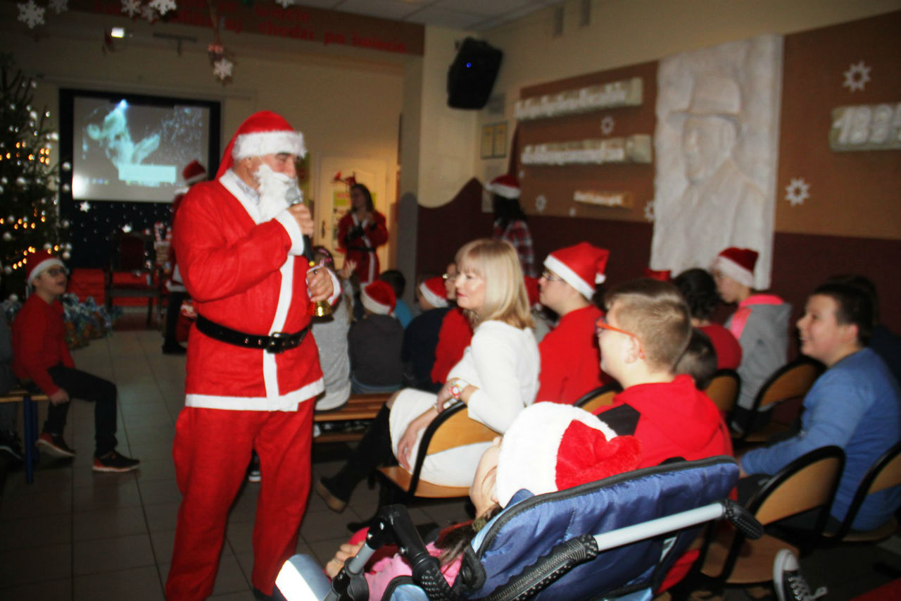 Od samego rana w szkole panowało wielkie poruszenie. Na korytarzach i w klasach zrobiło się czerwono od mikołajkowych czapeczek. Mimo że co roku odwiedza nas Święty Mikołaj, to towarzyszące emocje są zawsze bardzo duże. Tegoroczny Mikołaj nas zaskoczył. Znalazł sposób, jak poradzić sobie z brakiem śniegu i przybył na niecodziennym, jak dla Mikołaja, pojeździe. Wielkie było zdziwienie uczniów, kiedy usłyszeli na szkolnym podwórku warkot motocykla i siedzącą na nim czerwoną postać. Po pełnym emocji przywitaniu nastąpił moment obdarowywania prezentami, które większość uczniów przyjmowała z wypiekami na twarzy i nieskrywaną radością. Co niektórzy obiecali, że będą już grzeczni – Mikołaj ma wielką moc. Grono nauczycielskie okazało zadowolenie z przybycia Mikołaja, śpiewając w wielogłosie piosenkę „Kochany Panie Mikołaju".