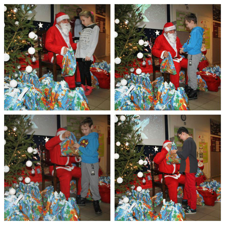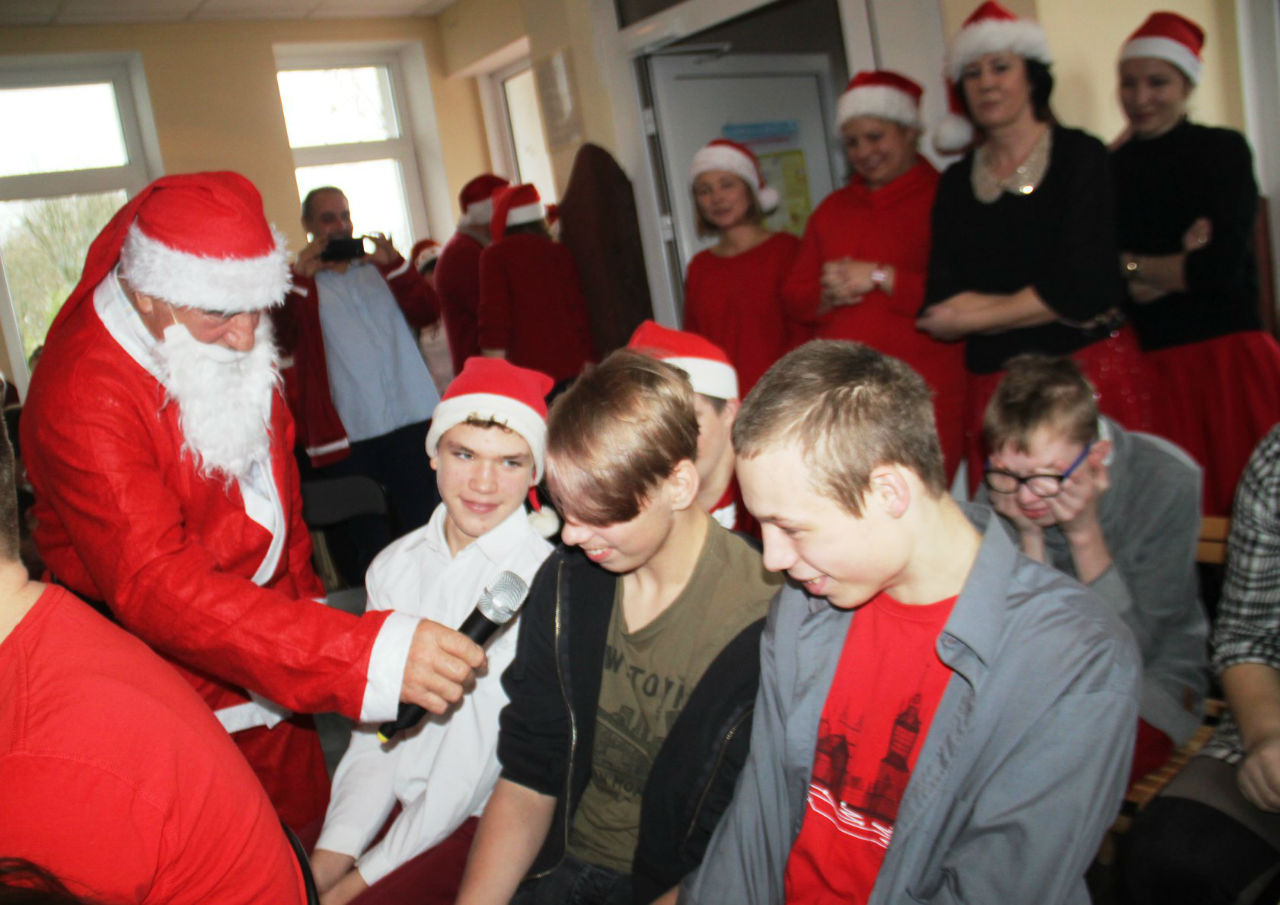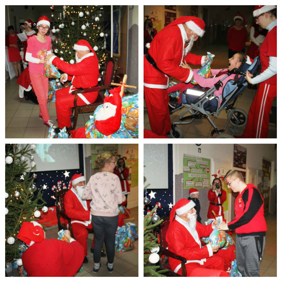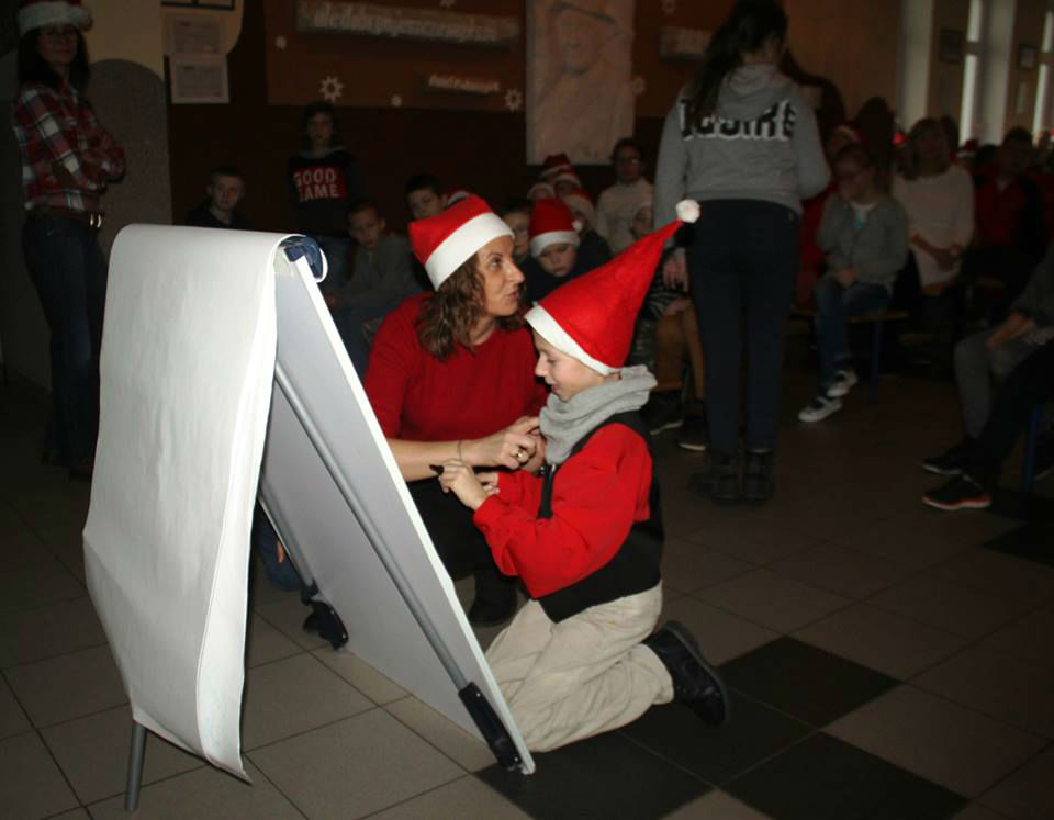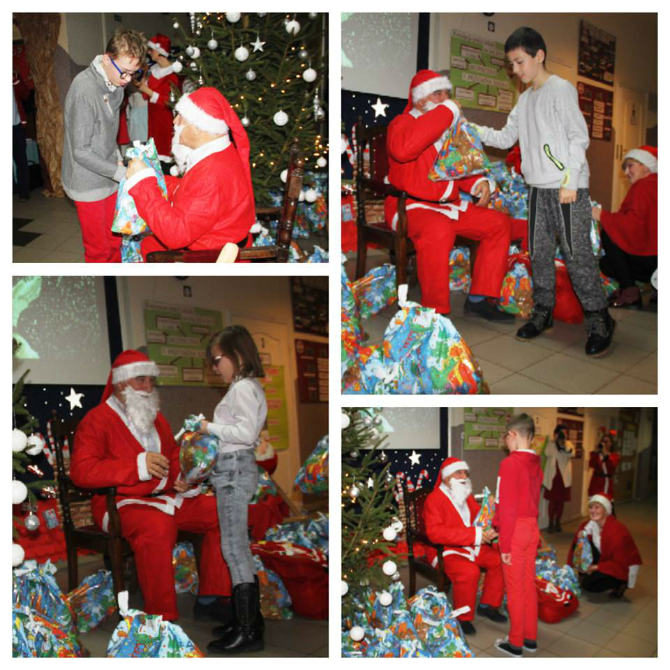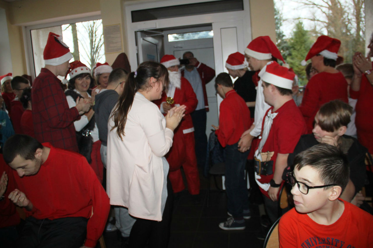 Od samego rana w szkole panowało wielkie poruszenie. Na korytarzach i w klasach zrobiło się czerwono od mikołajkowych czapeczek. Mimo że co roku odwiedza nas Święty Mikołaj, to towarzyszące emocje są zawsze bardzo duże. Tegoroczny Mikołaj nas zaskoczył. Znalazł sposób, jak poradzić sobie z brakiem śniegu i przybył na niecodziennym, jak dla Mikołaja, pojeździe. Wielkie było zdziwienie uczniów, kiedy usłyszeli na szkolnym podwórku warkot motocykla i siedzącą na nim czerwoną postać. Po pełnym emocji przywitaniu nastąpił moment obdarowywania prezentami, które większość uczniów przyjmowała z wypiekami na twarzy i nieskrywaną radością. Co niektórzy obiecali, że będą już grzeczni – Mikołaj ma wielką moc. Grono nauczycielskie okazało zadowolenie z przybycia Mikołaja, śpiewając w wielogłosie piosenkę „Kochany Panie Mikołaju".